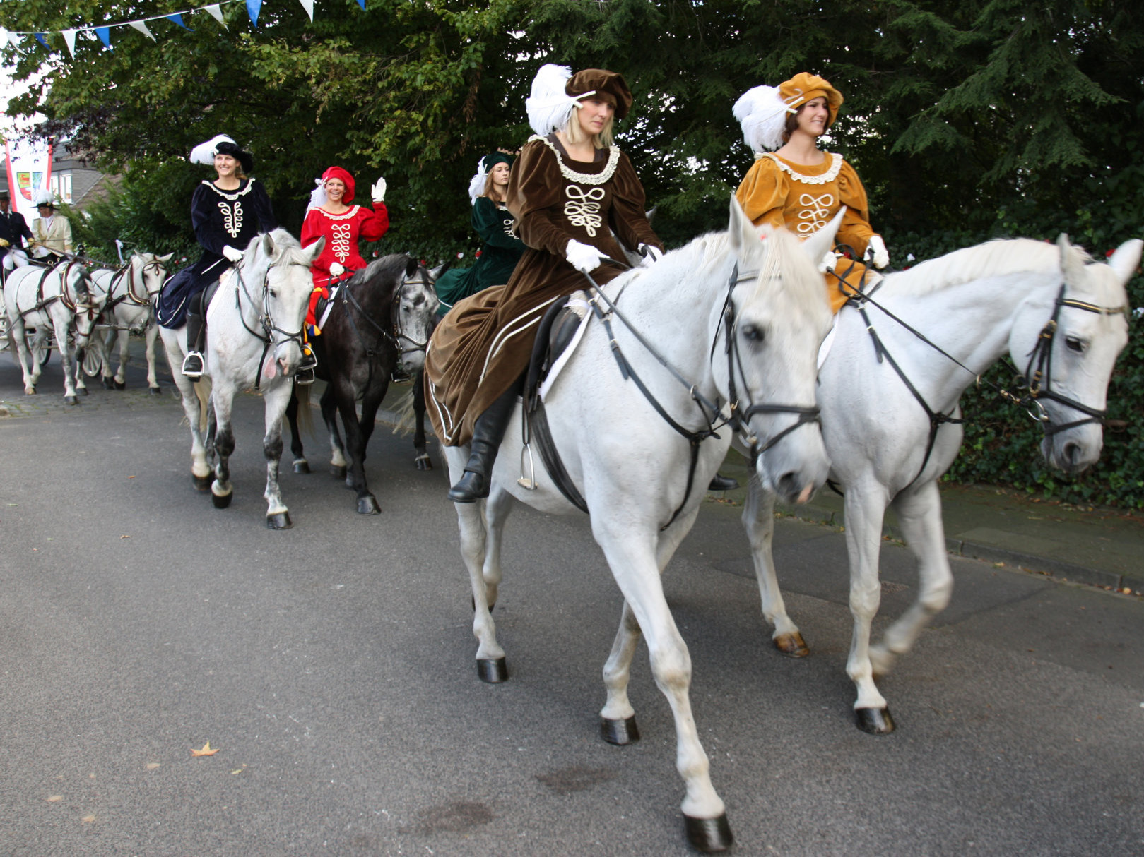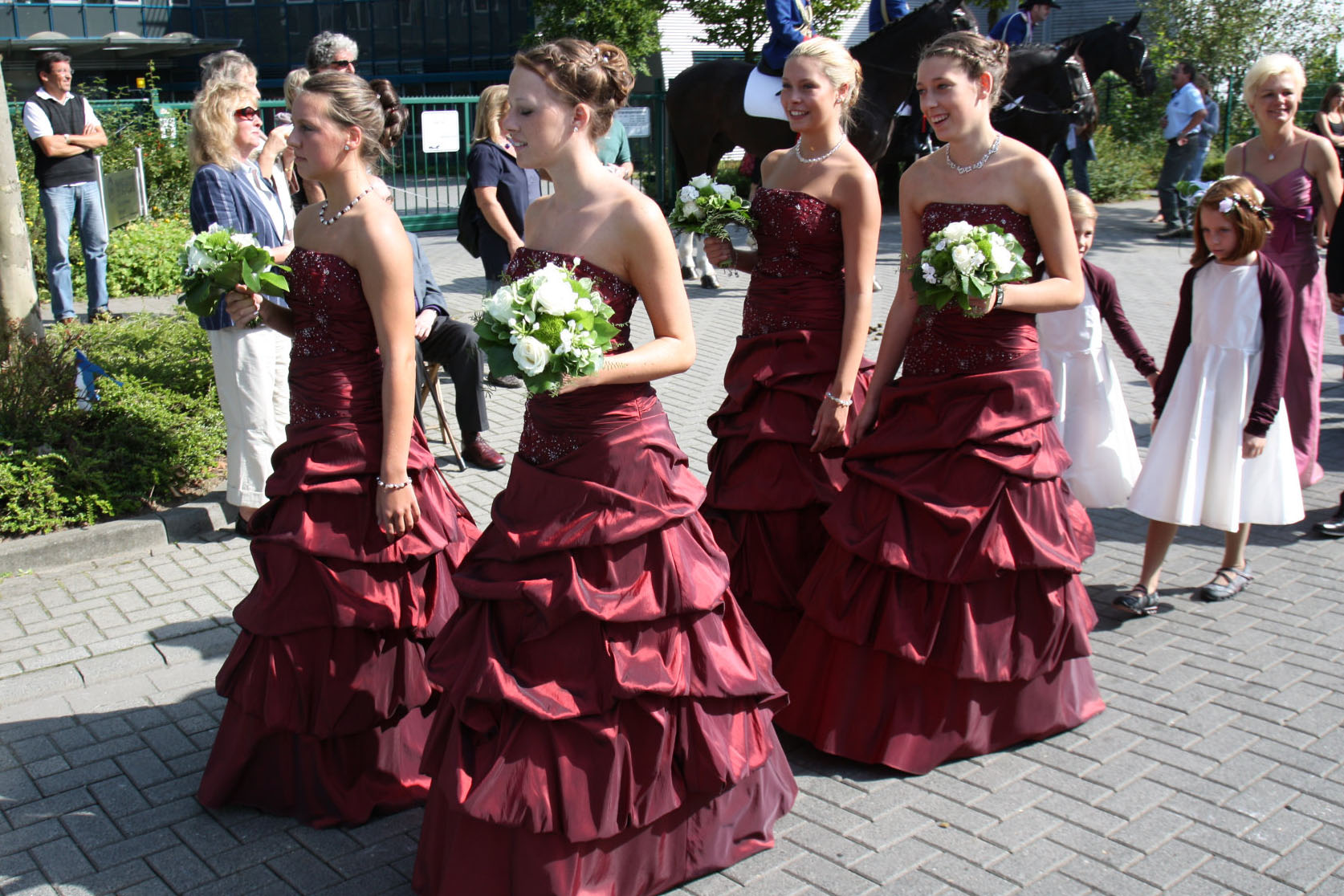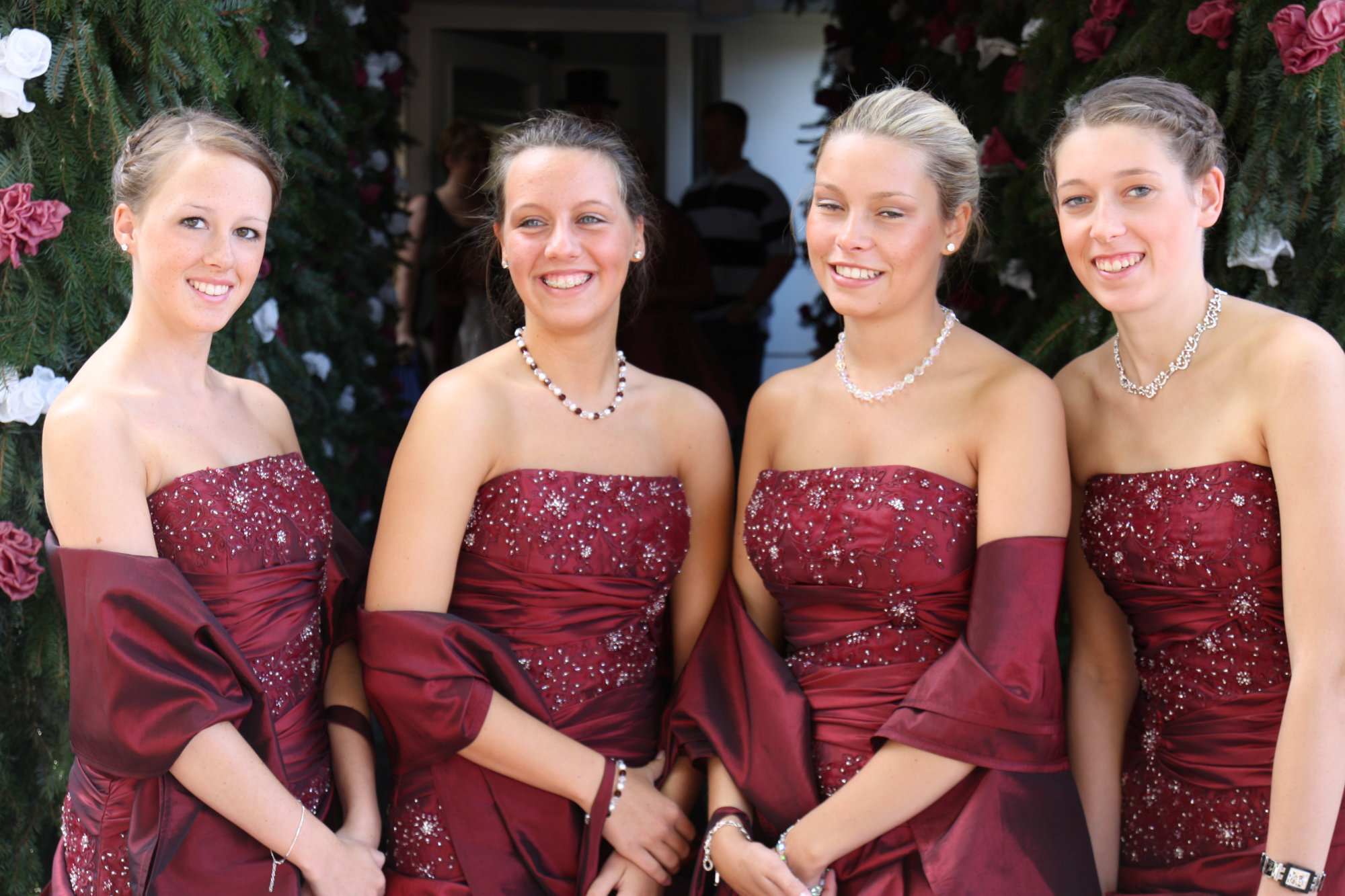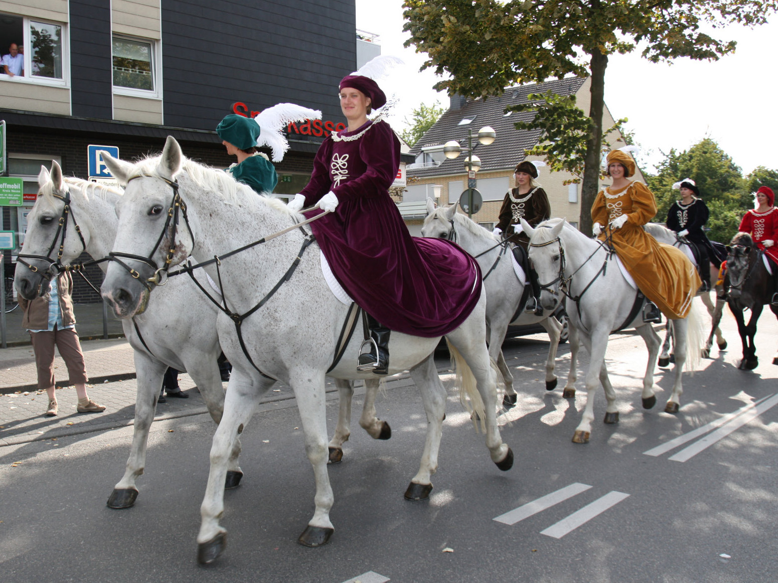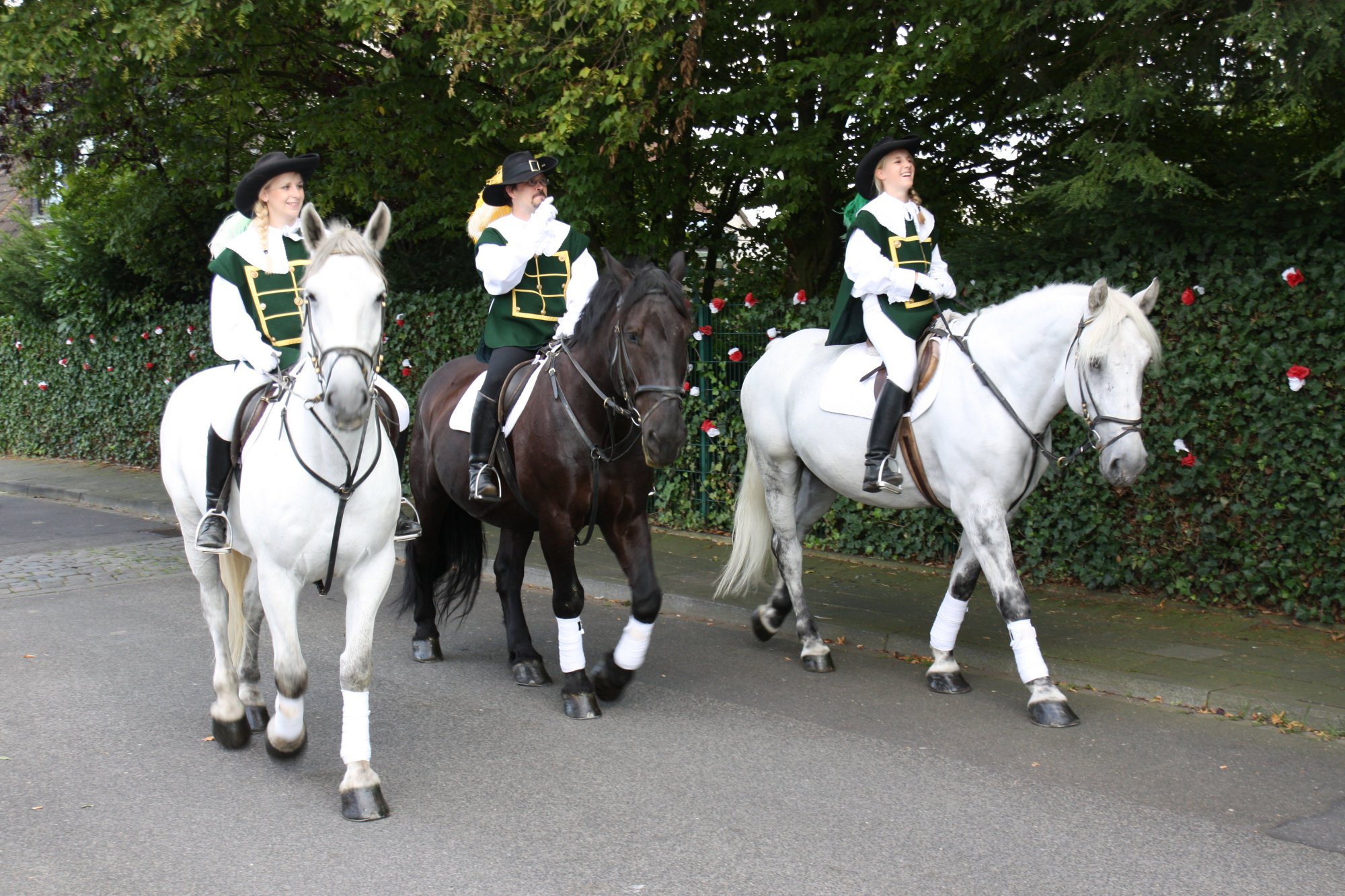 vor dem Festzug am Sonntagdie Hofdamen von links: Jayde Watton, Sophie Webers, Maureen Paas, Marie Giesler