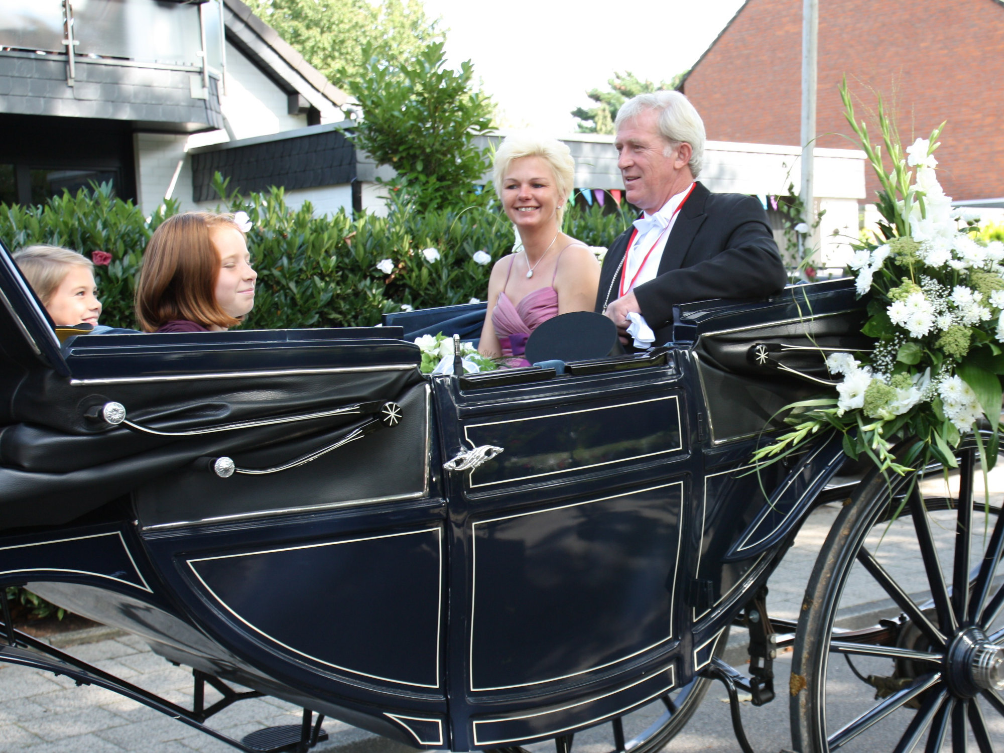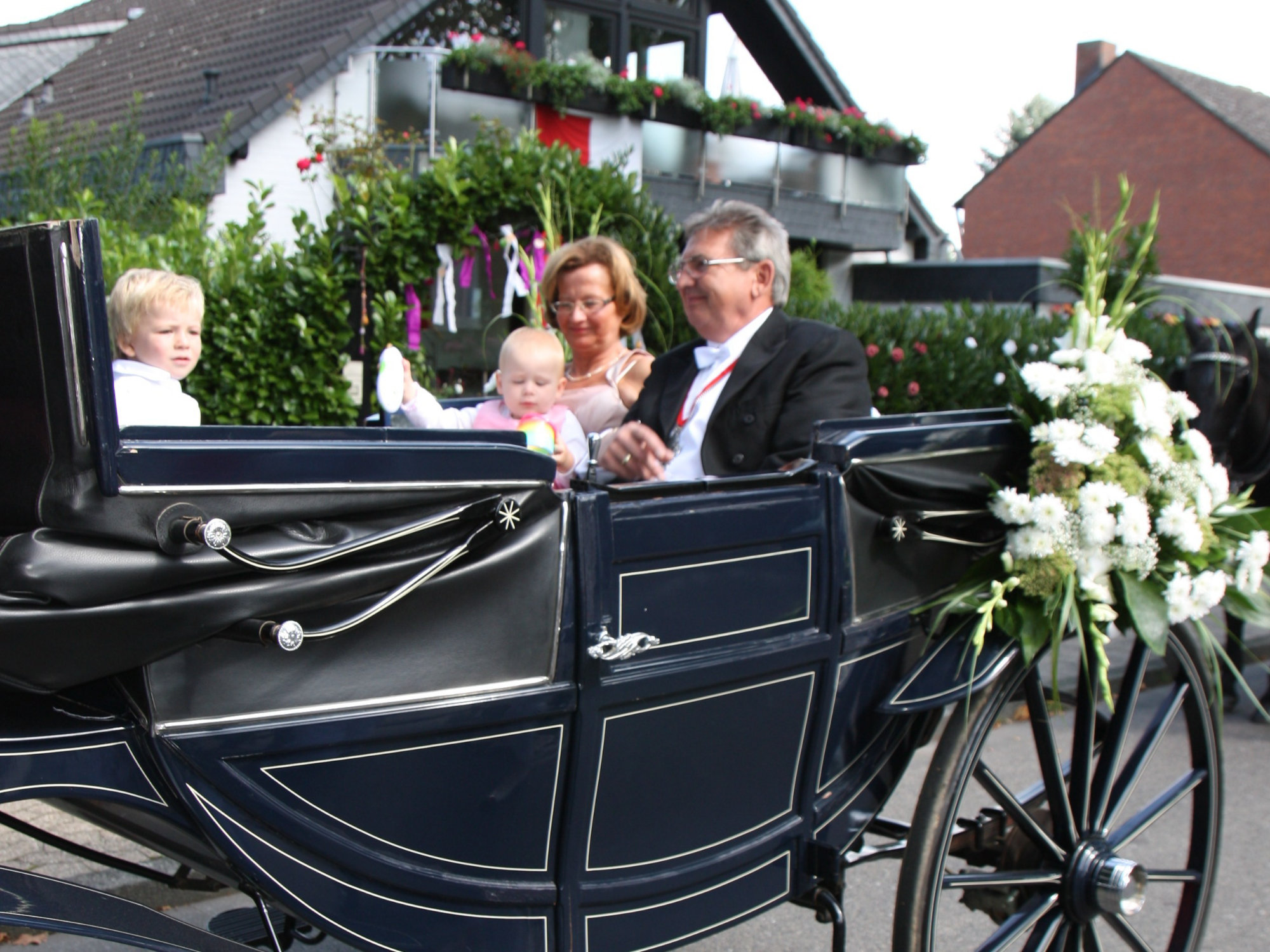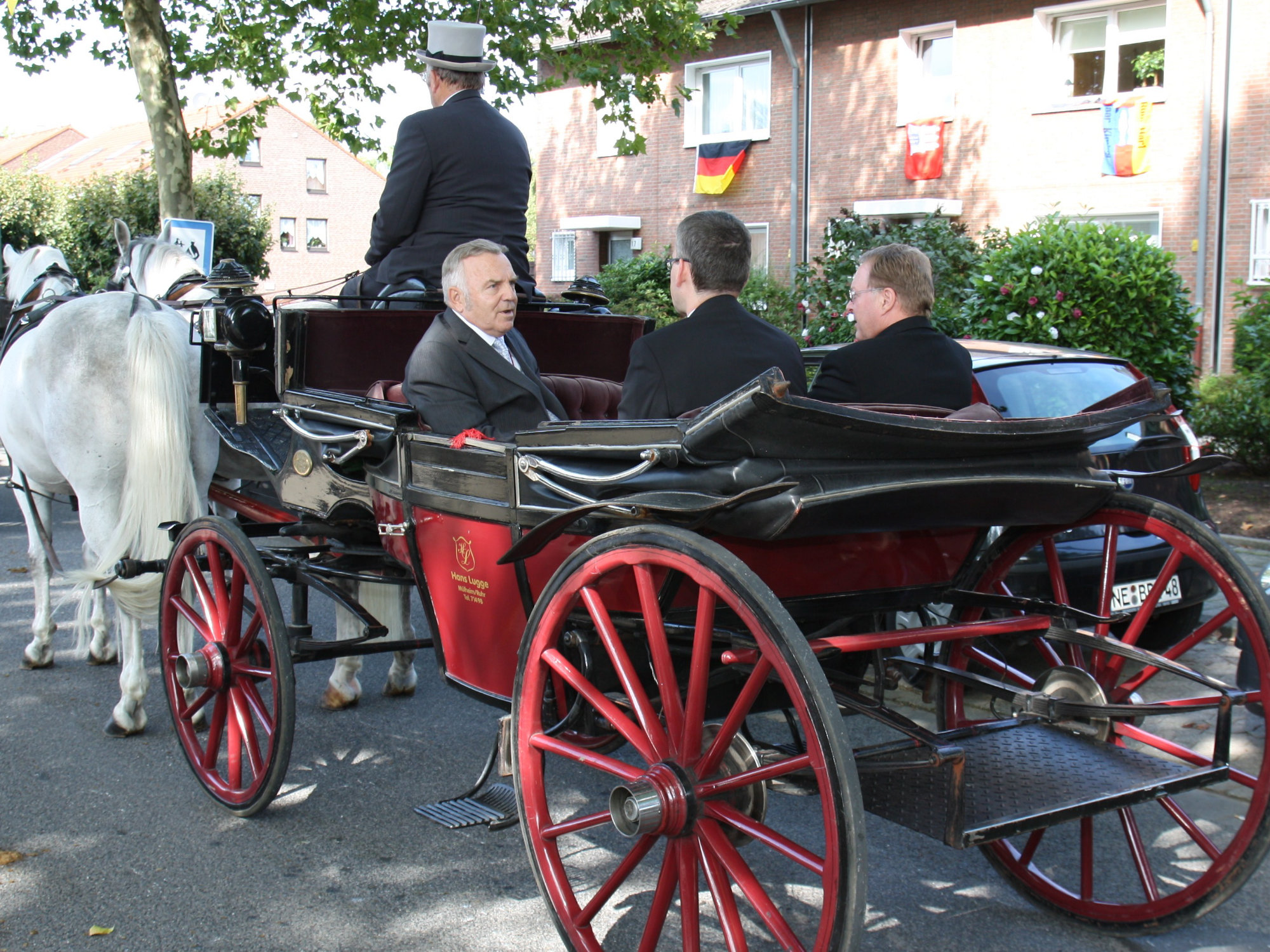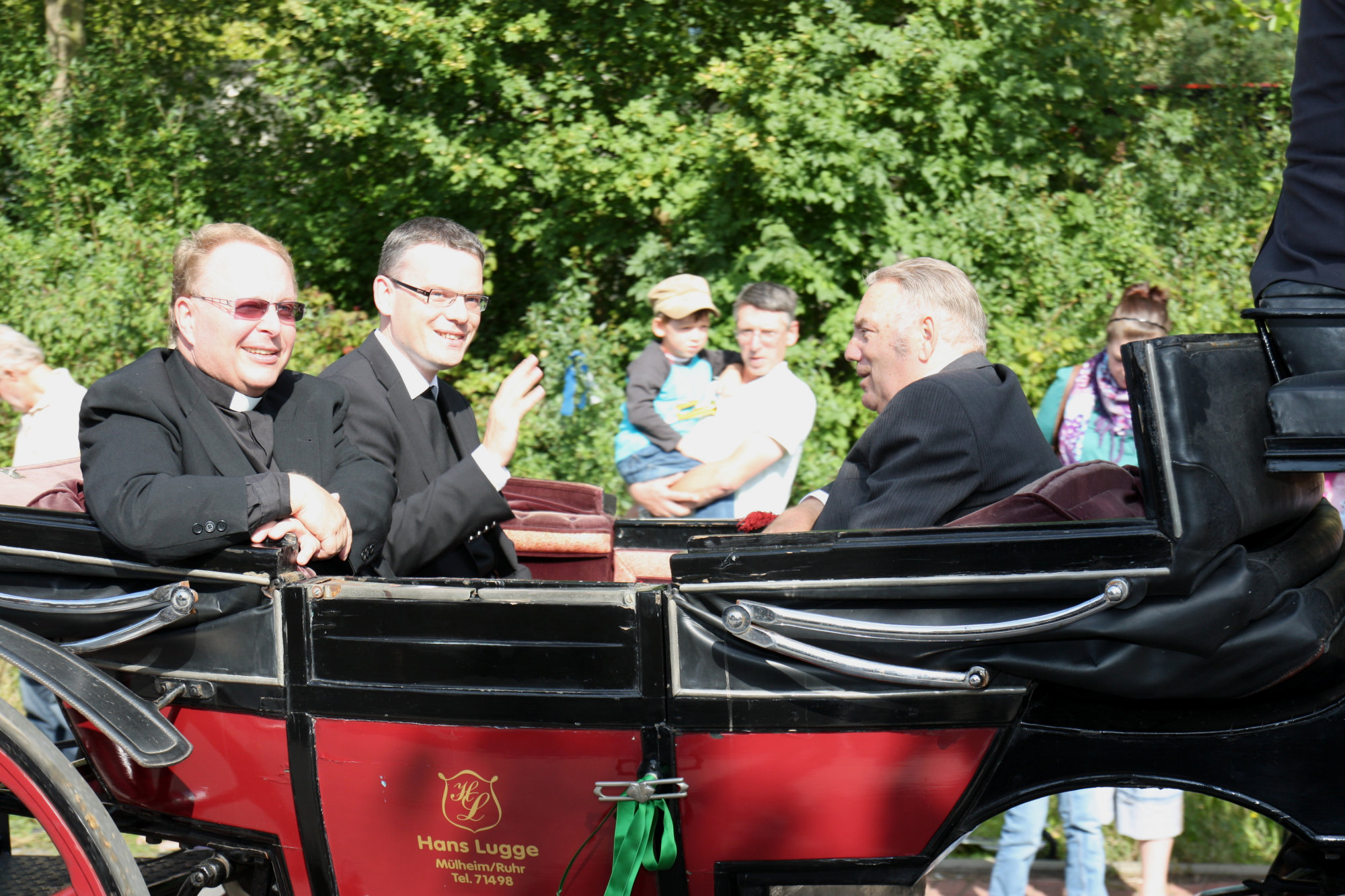 Kutsche der Ehrengästevon links: Pfarrer Hermann-Josef Schagen, Pfarrer Norbert Viertel, Vorstandsmitglied Bernhard Fucken
