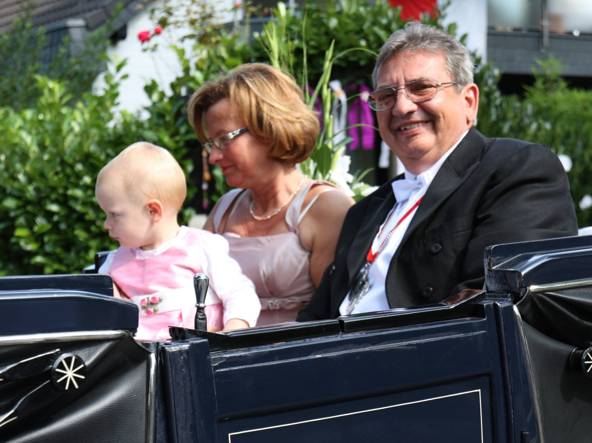 Kutsche der Ehrengästevon links: Vorstandsmitglied Bernhard Fucken, Pfarrer Norbert Viertel und Pfarrer Hermann-Josef Schagen