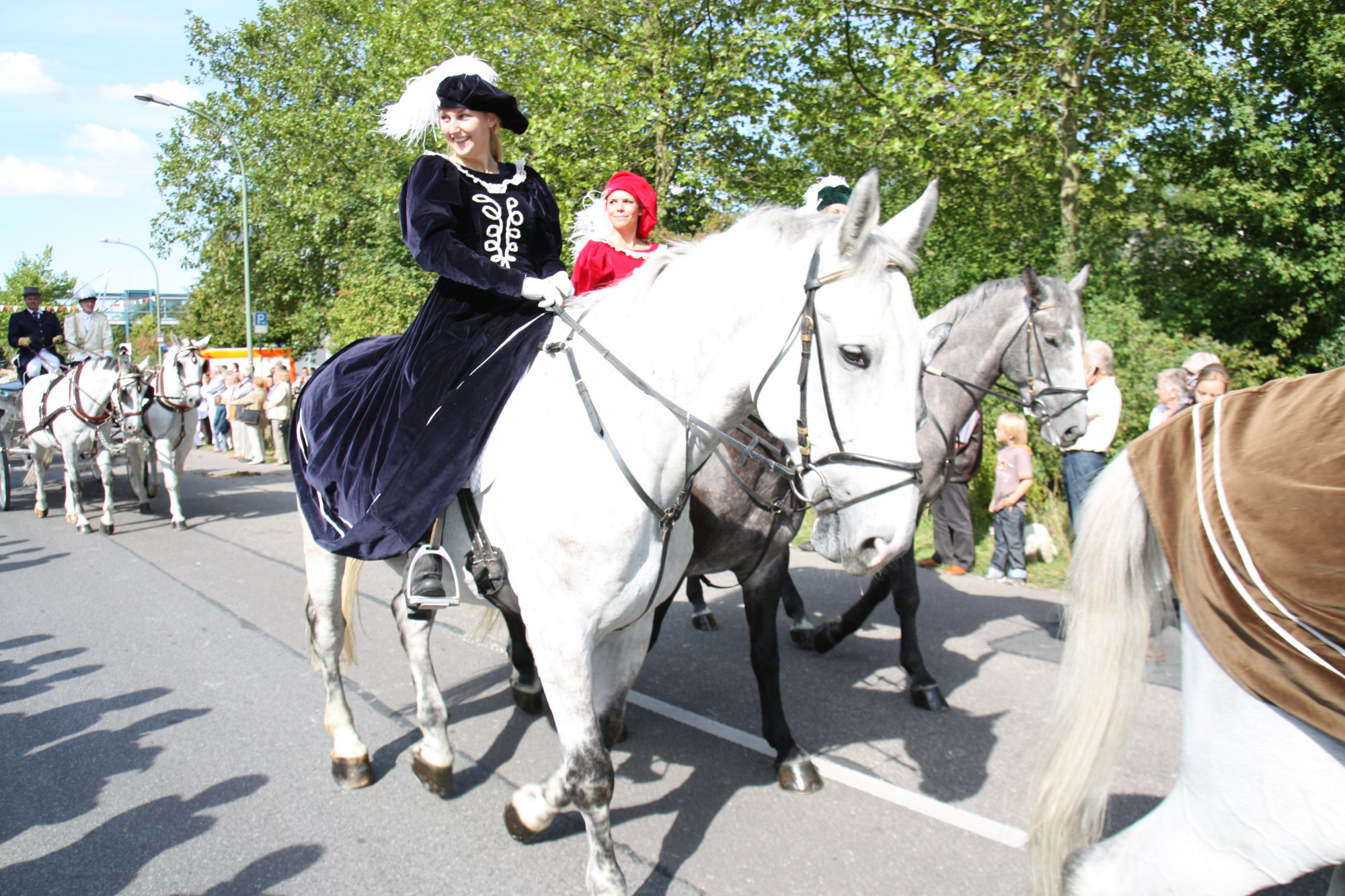 Spitze des Festzug: die Vorreitervon links: Anna Francke, Stefan Ippers, Rebekka Francke