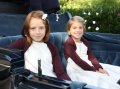 Kutsche Schülerprinz Eric Geisler und Kinderprinz Linus Debüsermit Kinderprinzessin Sofia Steinfort (links) und Schülerprinzessin Maren Schmidt (rechts)