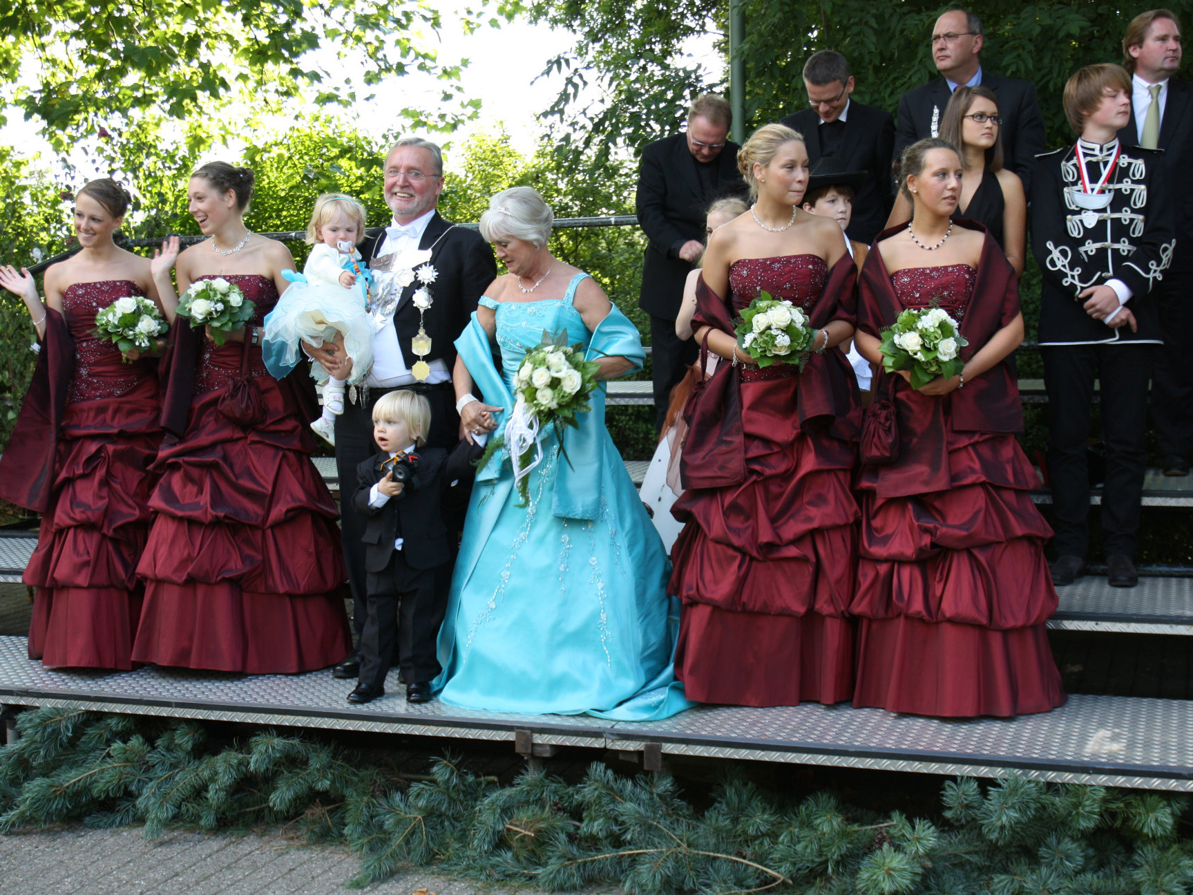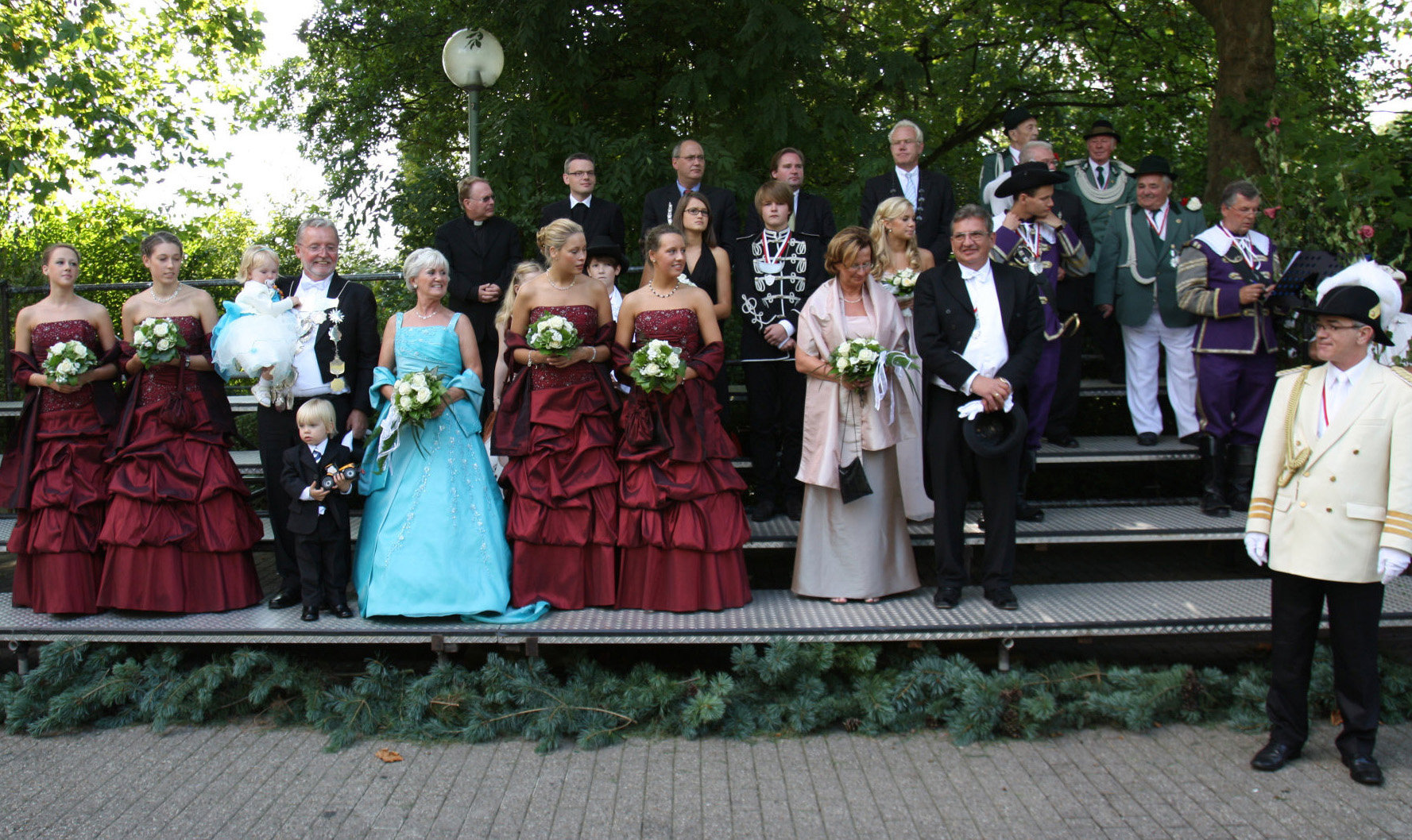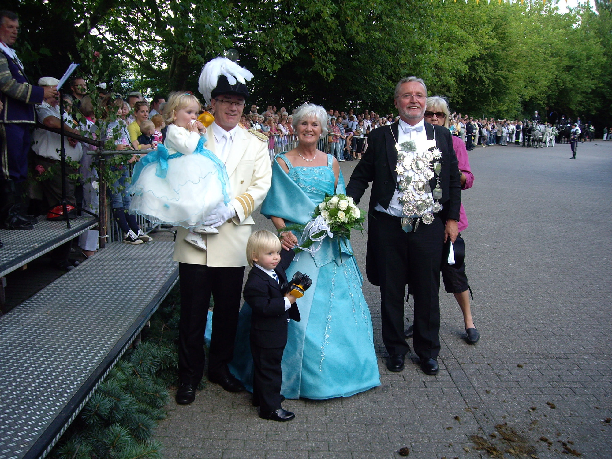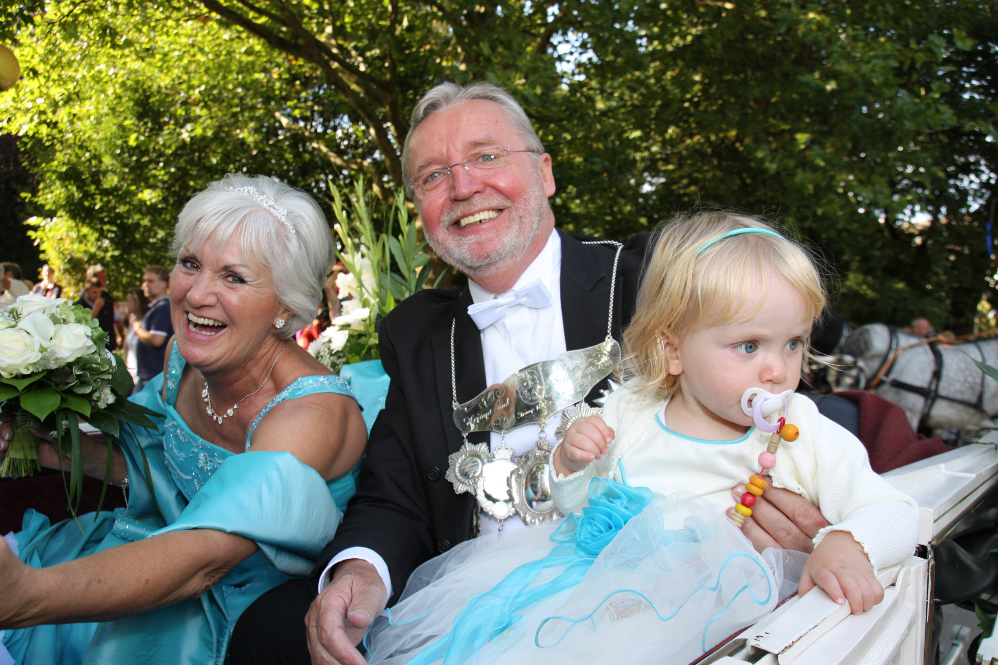 vor der Tribünedas Königspaar mit den Enkelkindern und Mundschenk Michael Grimm