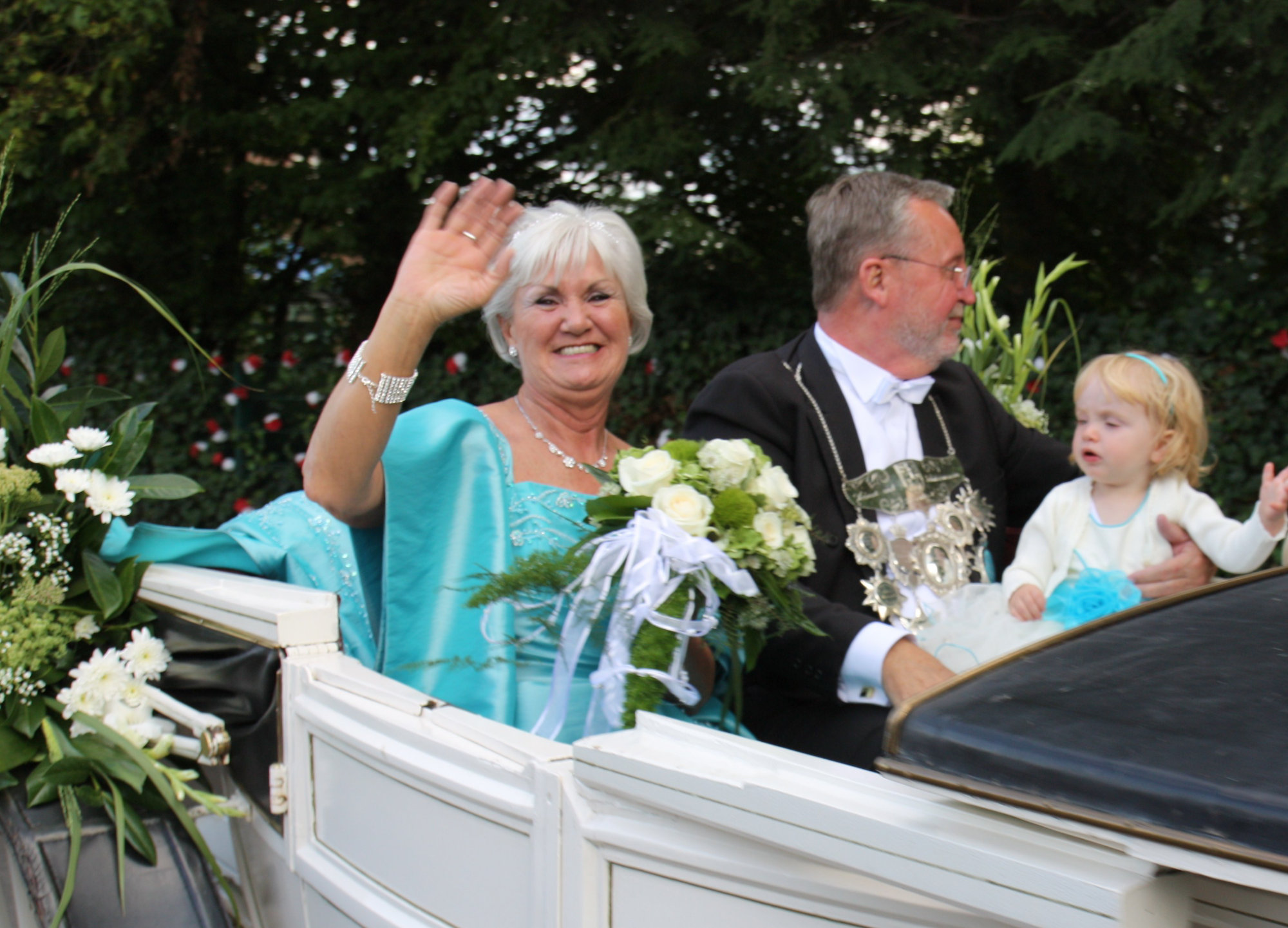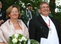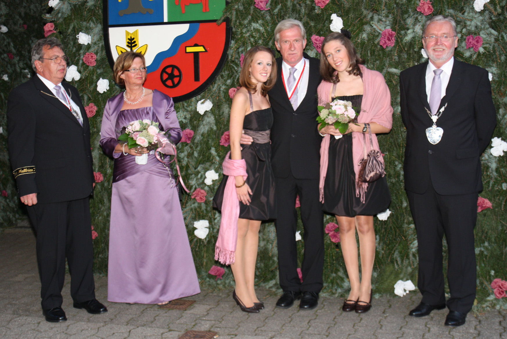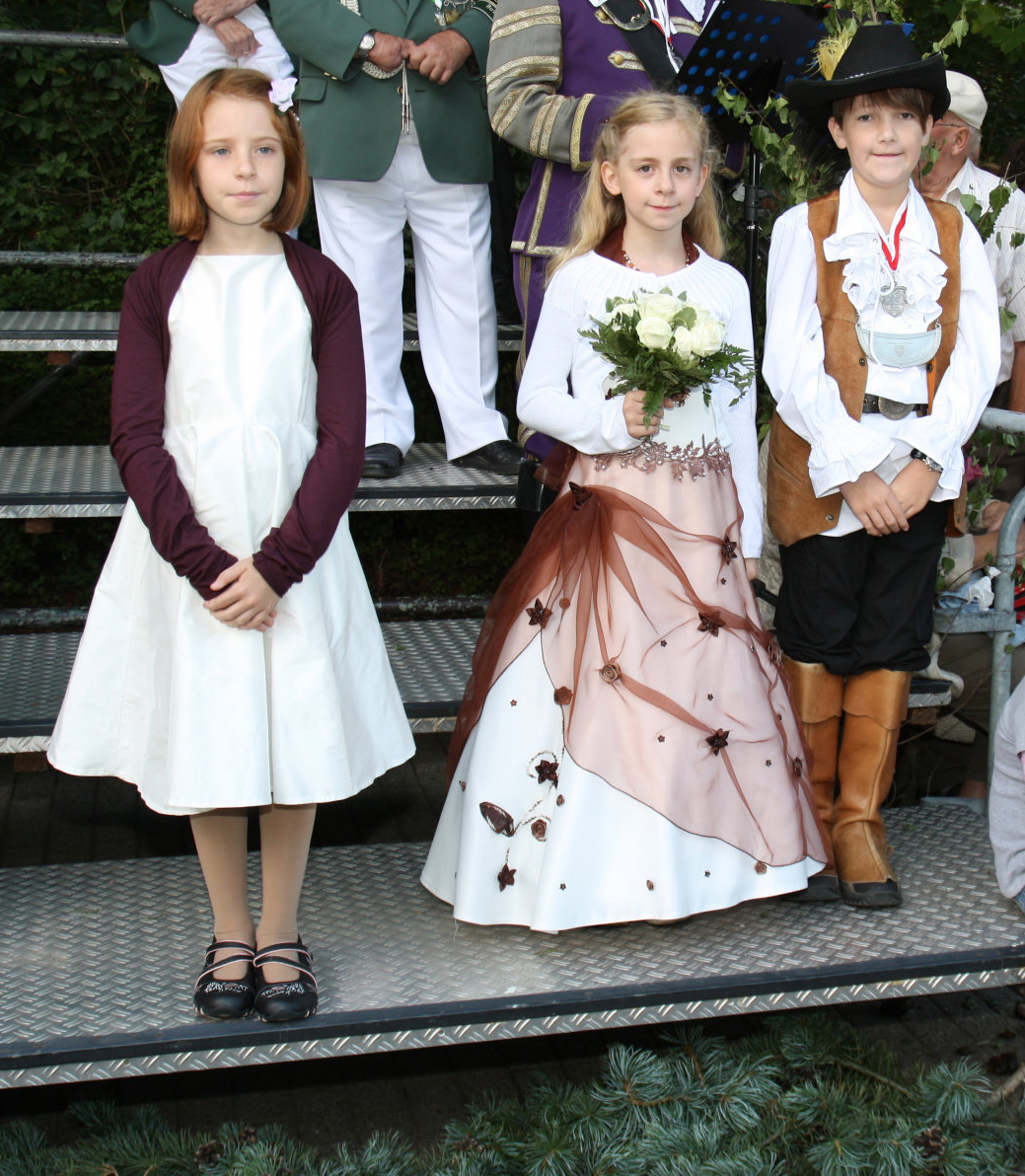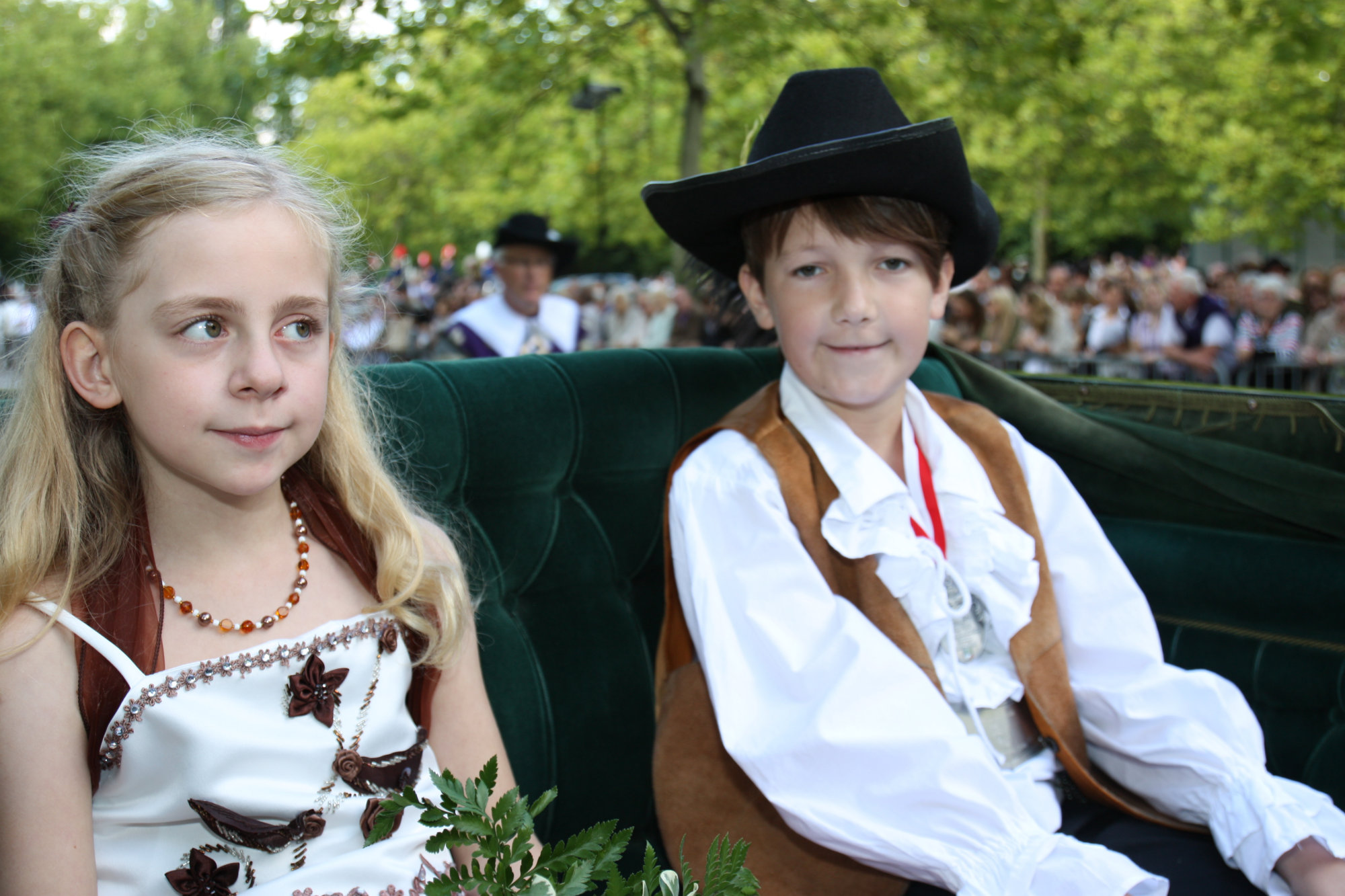 vor der Tribünedas Königspaar mit den Enkelkindern und Mundschenk Michael Grimm