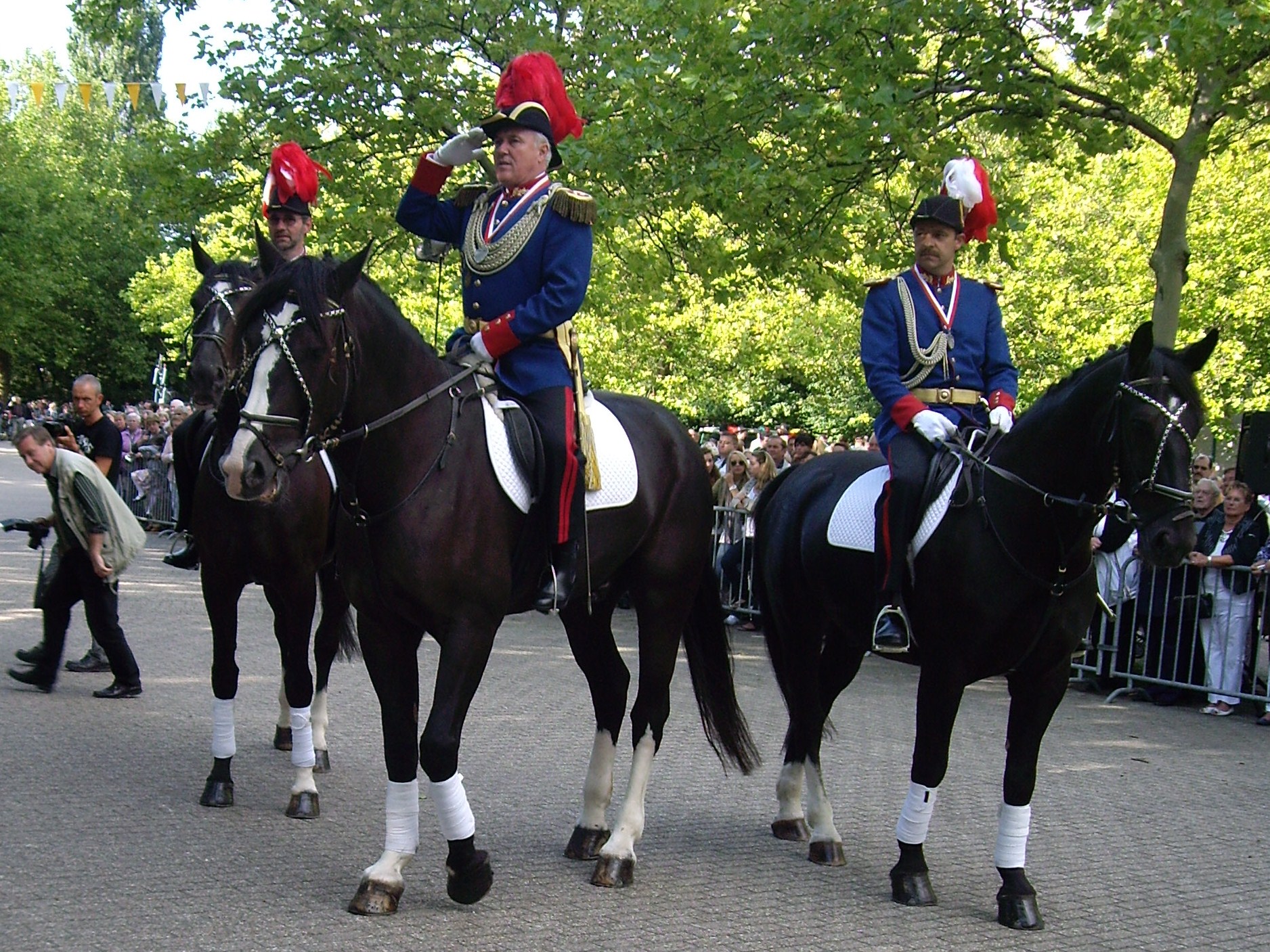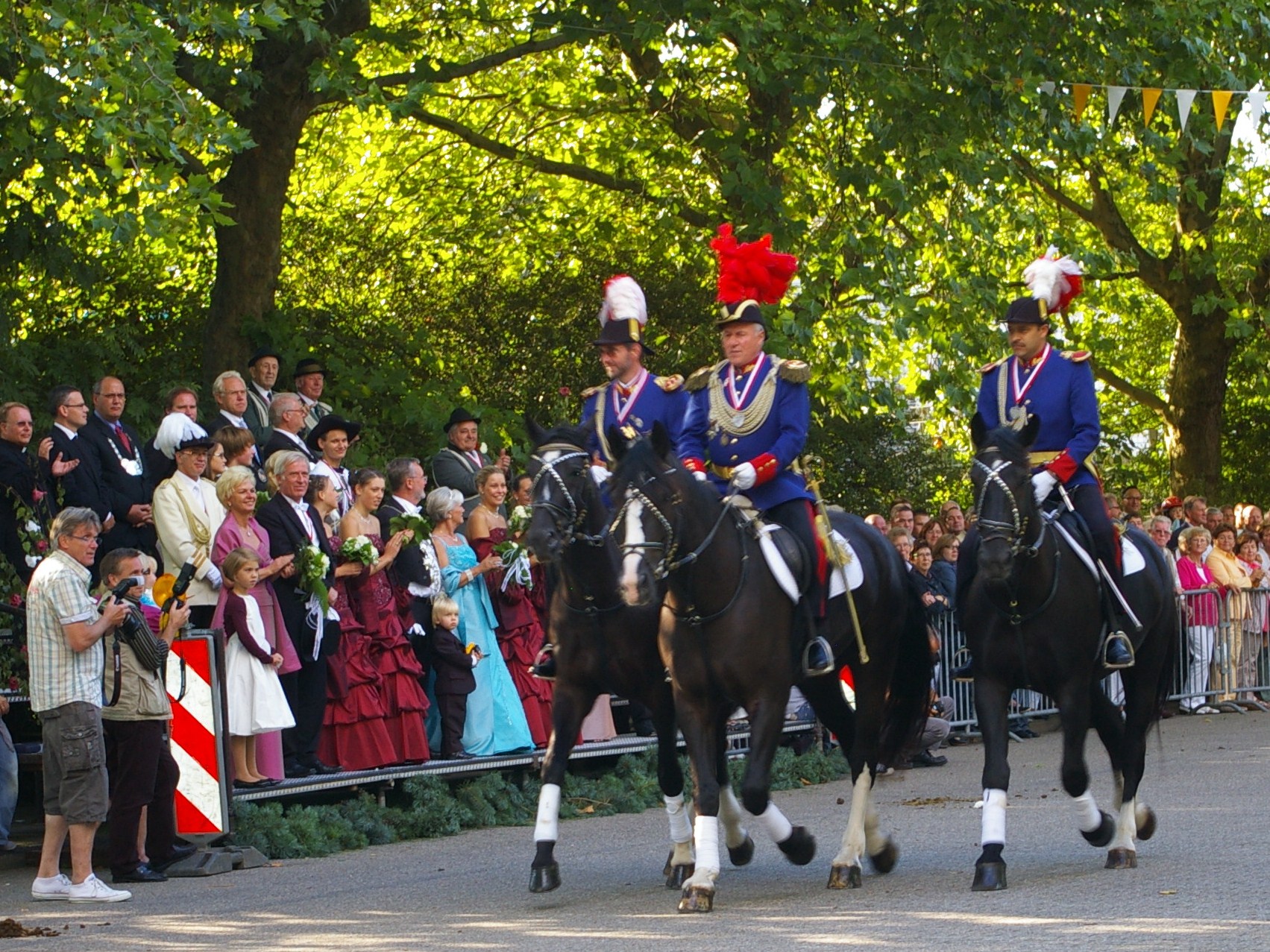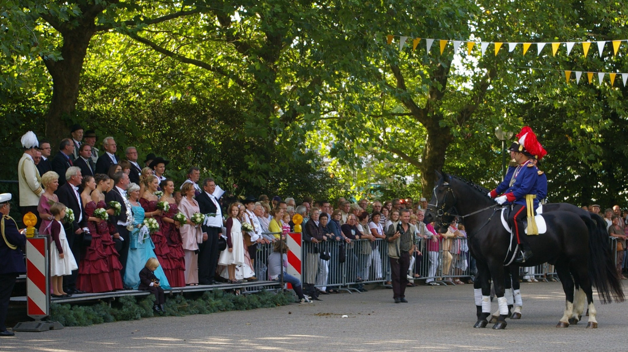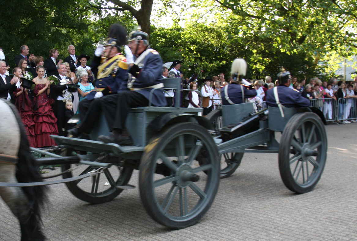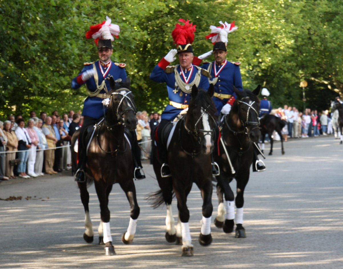 General Franz Nelsen bei der Meldung an den Königbegleitet von seinen Adjutanten Christoph Cames (links) und Peter Paas (rechts)