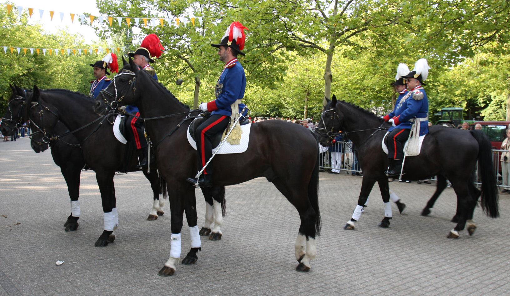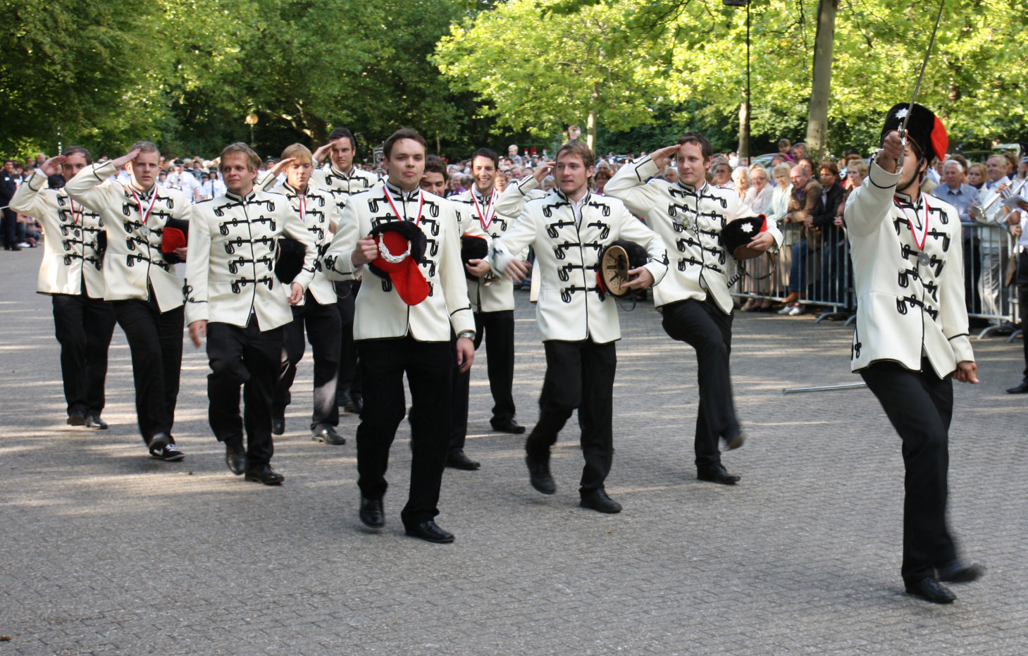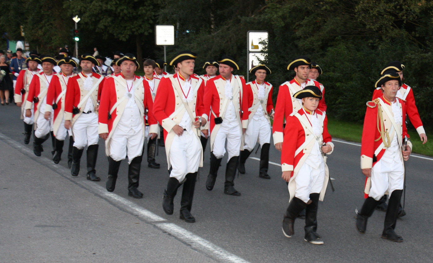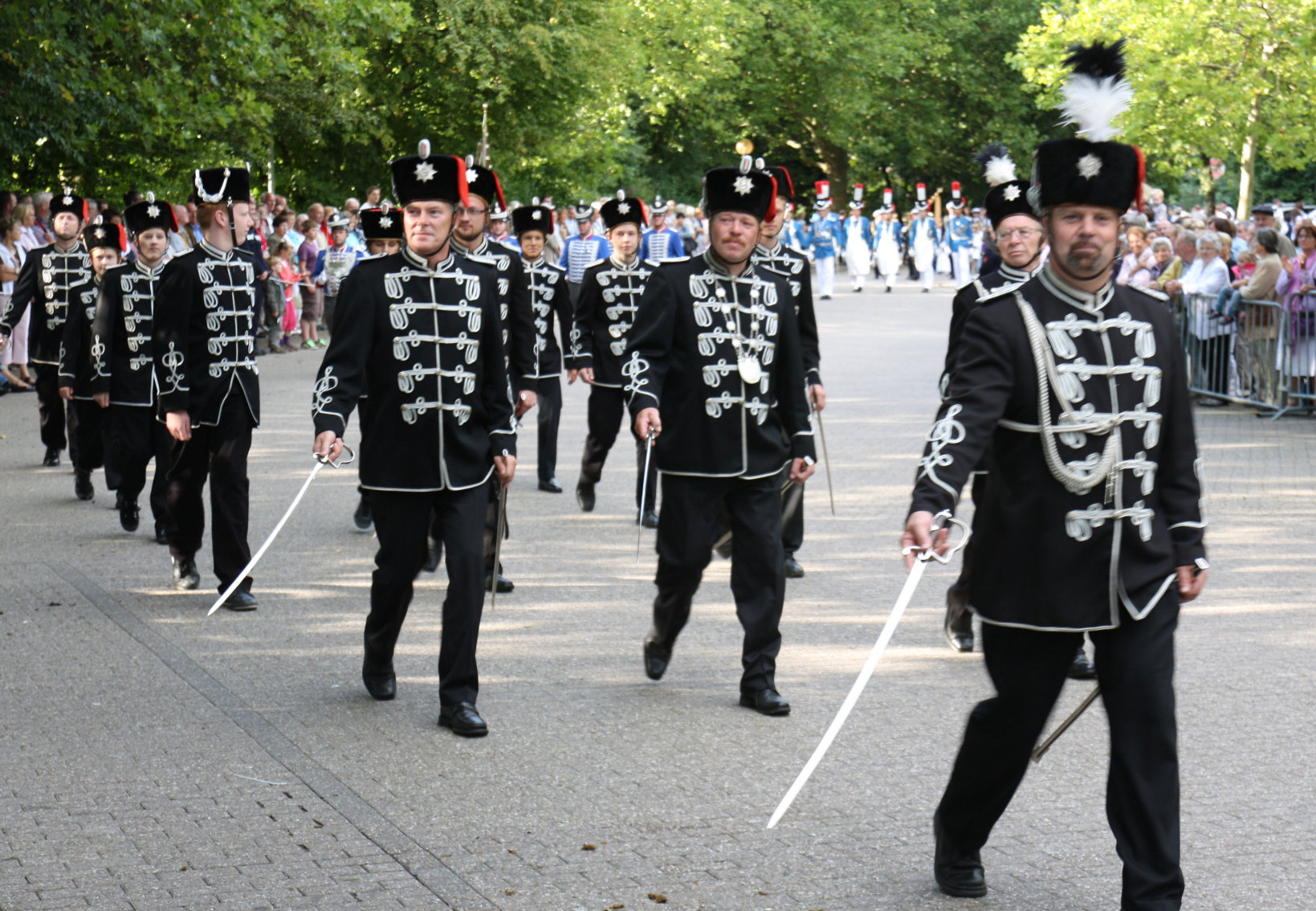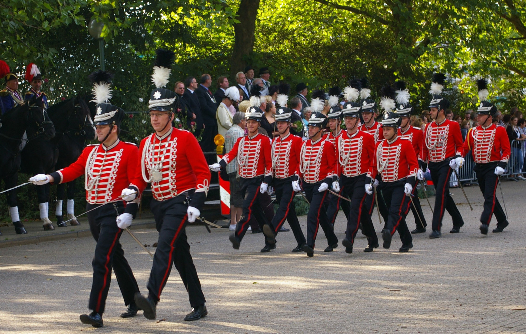General Franz Nelsen bei der Meldung an den Königbegleitet von seinen Adjutanten Christoph Cames (links) und Peter Paas (rechts)