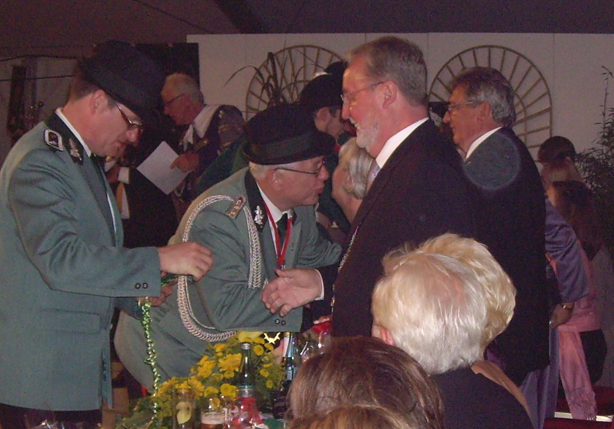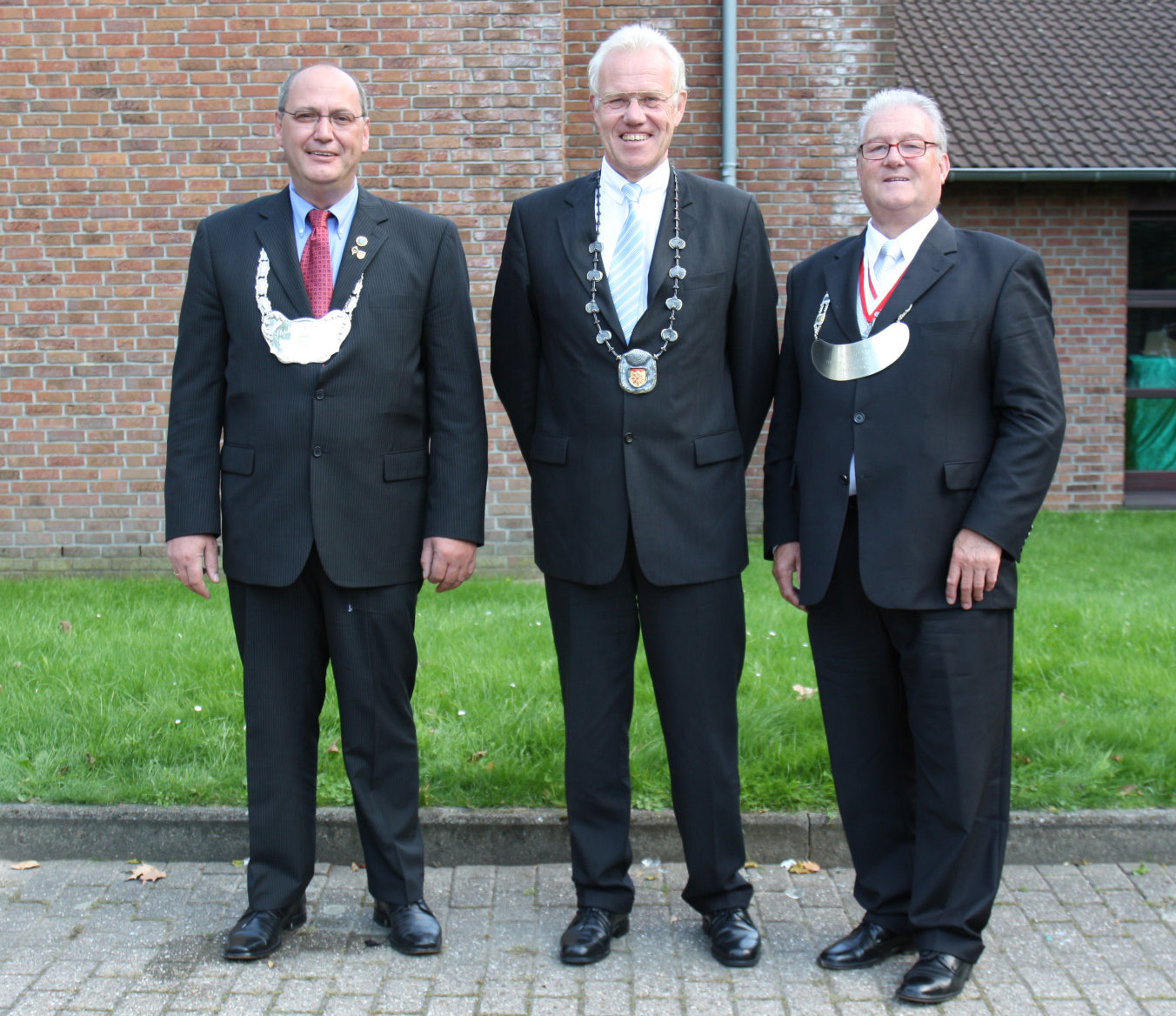 nach der Paradevon links: Stadtschützenkönig Thomas Holter, Bürgermeister Dieter Spindler und Präsident Karl-Heinz Rütten
