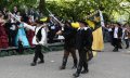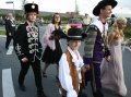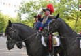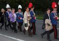 bei der Paradedie Vorreiter von links: Anna Francke, Stephan Ippers und Rebekka Francke
