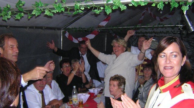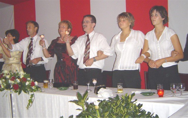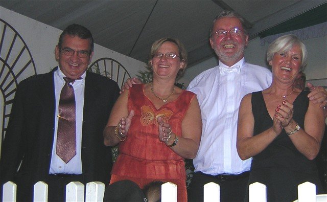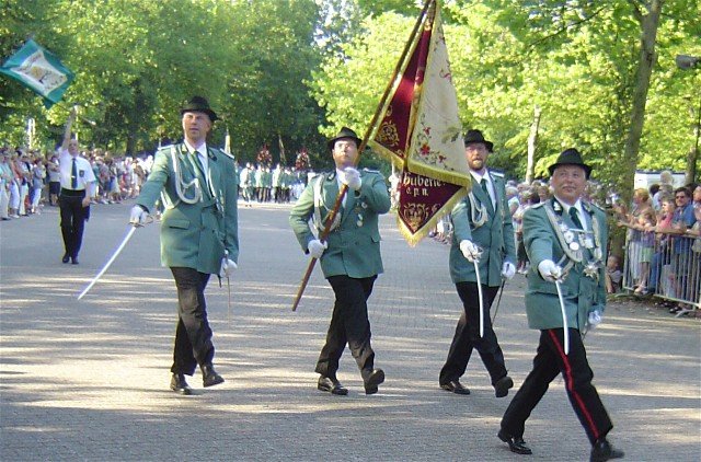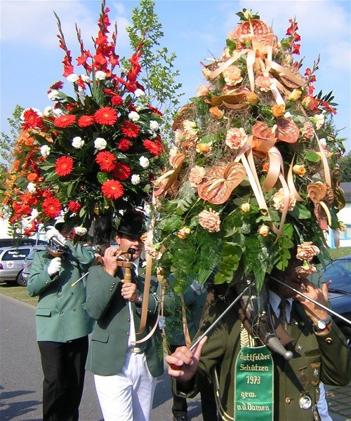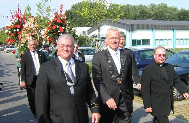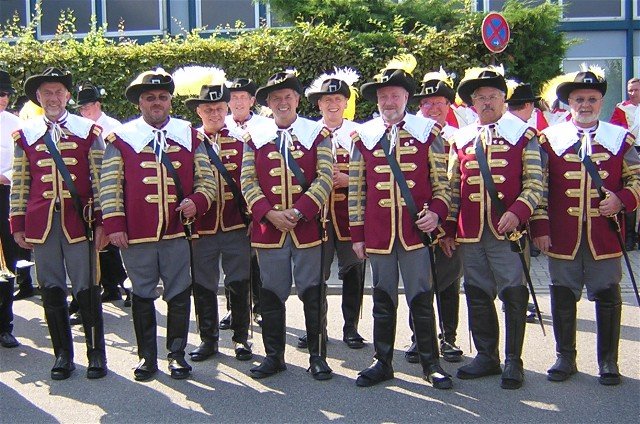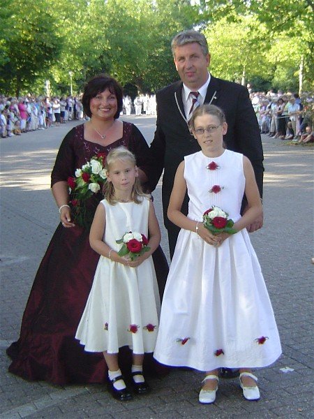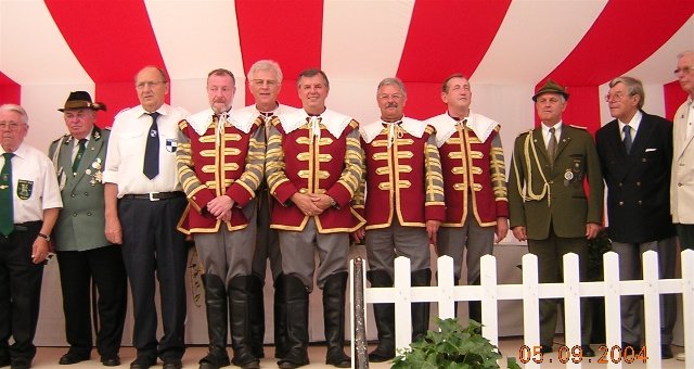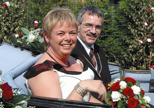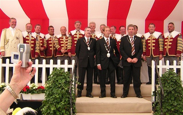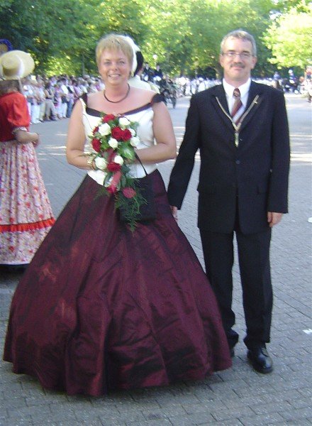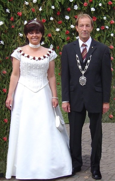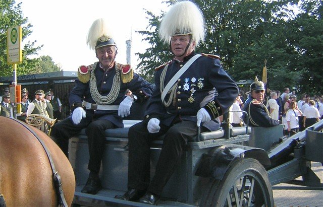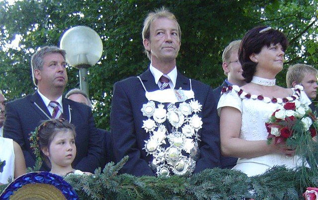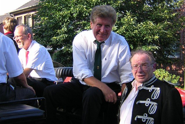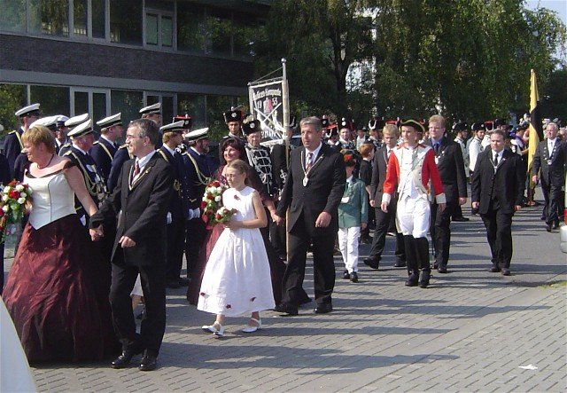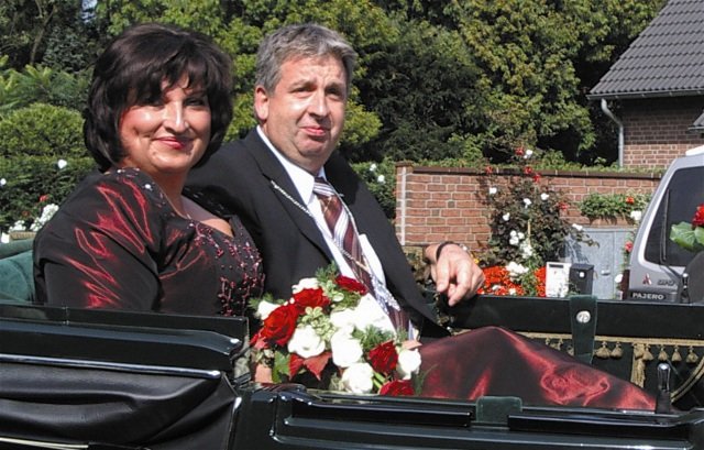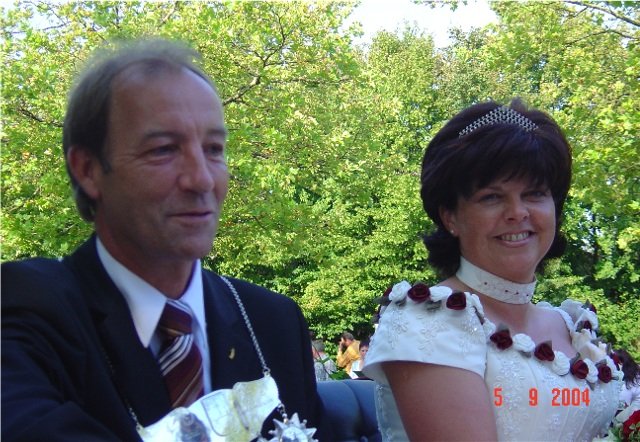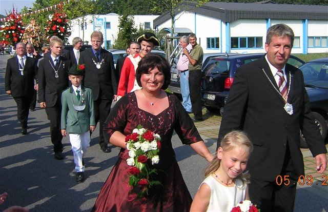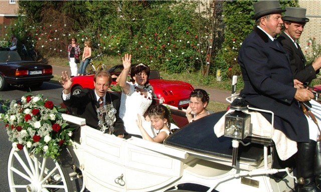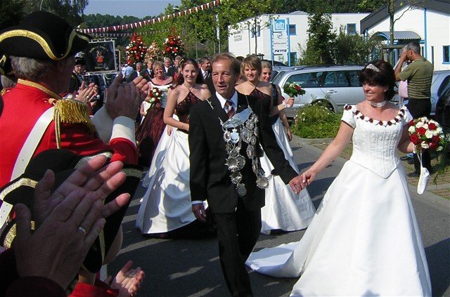 das Königshaus vor dem Einstieg in die Kutschenvorne v.l.: Ministerpaar Heike und Detlev Hüsges, Julia Kreuz, Königspaar Gaby und Herbert Götzen, Isabell Kreuz, Minister Michael Grimm, Janina Jänichen, Ministergattin Martina Grimm