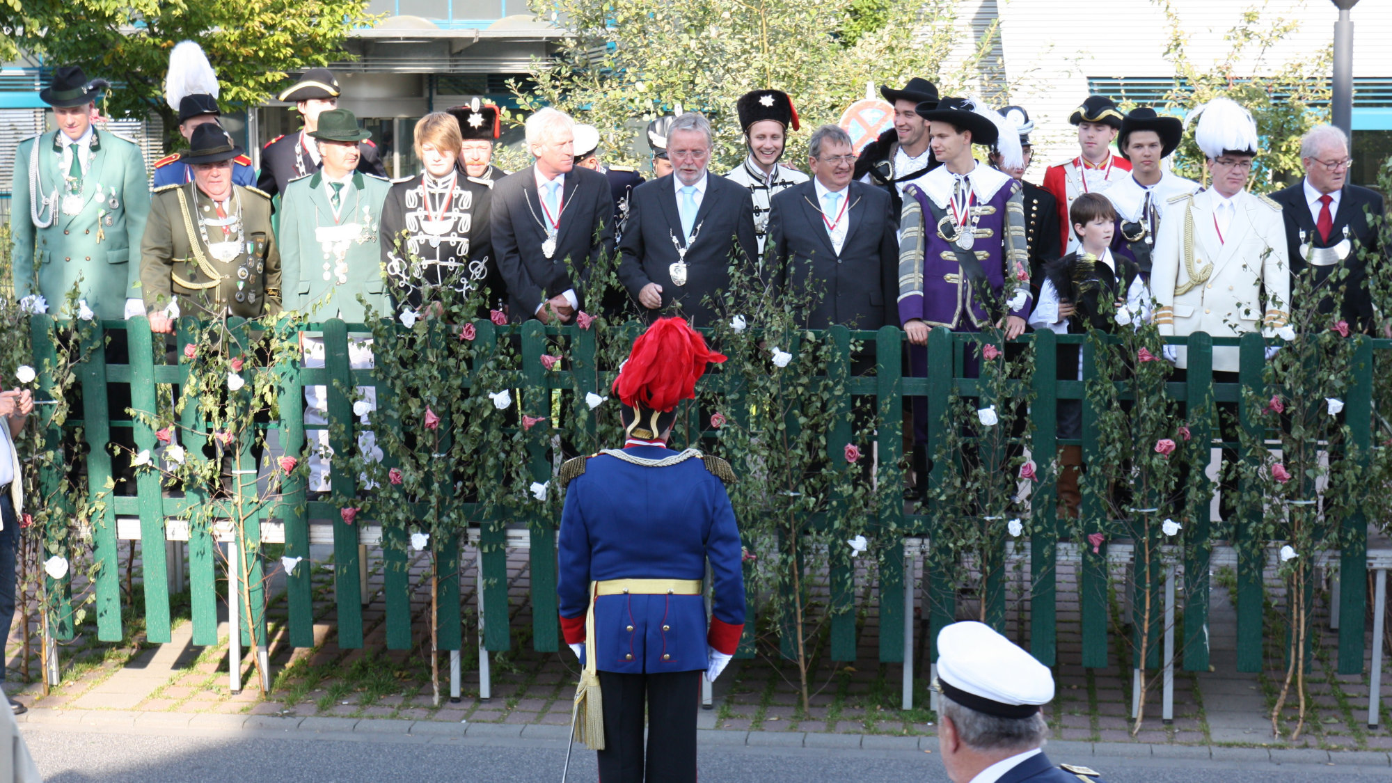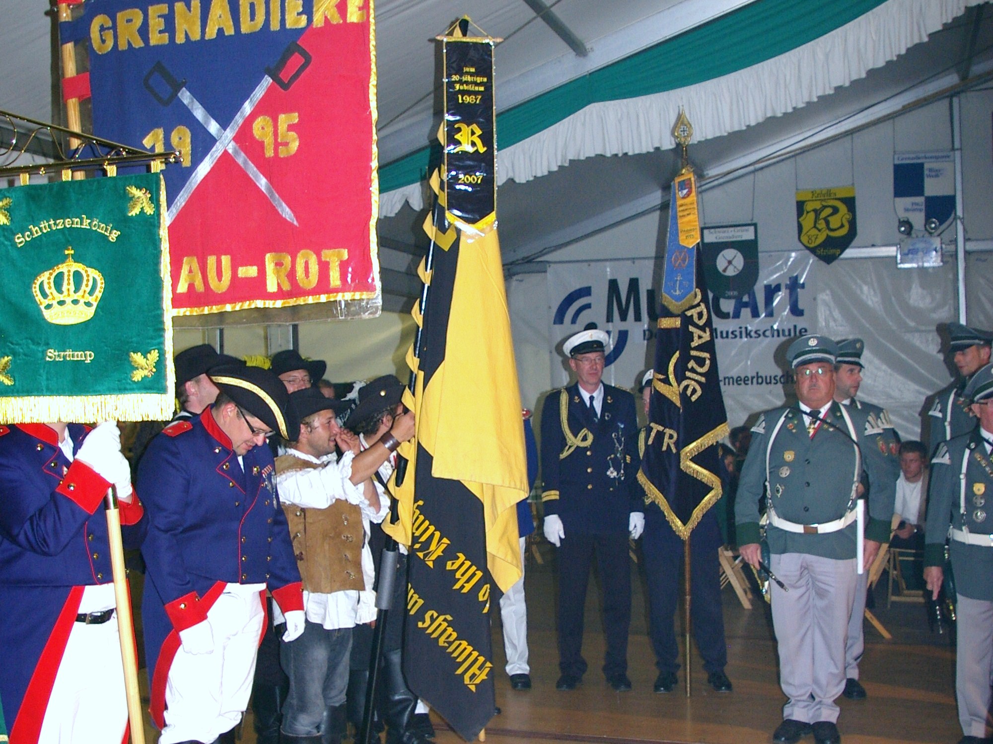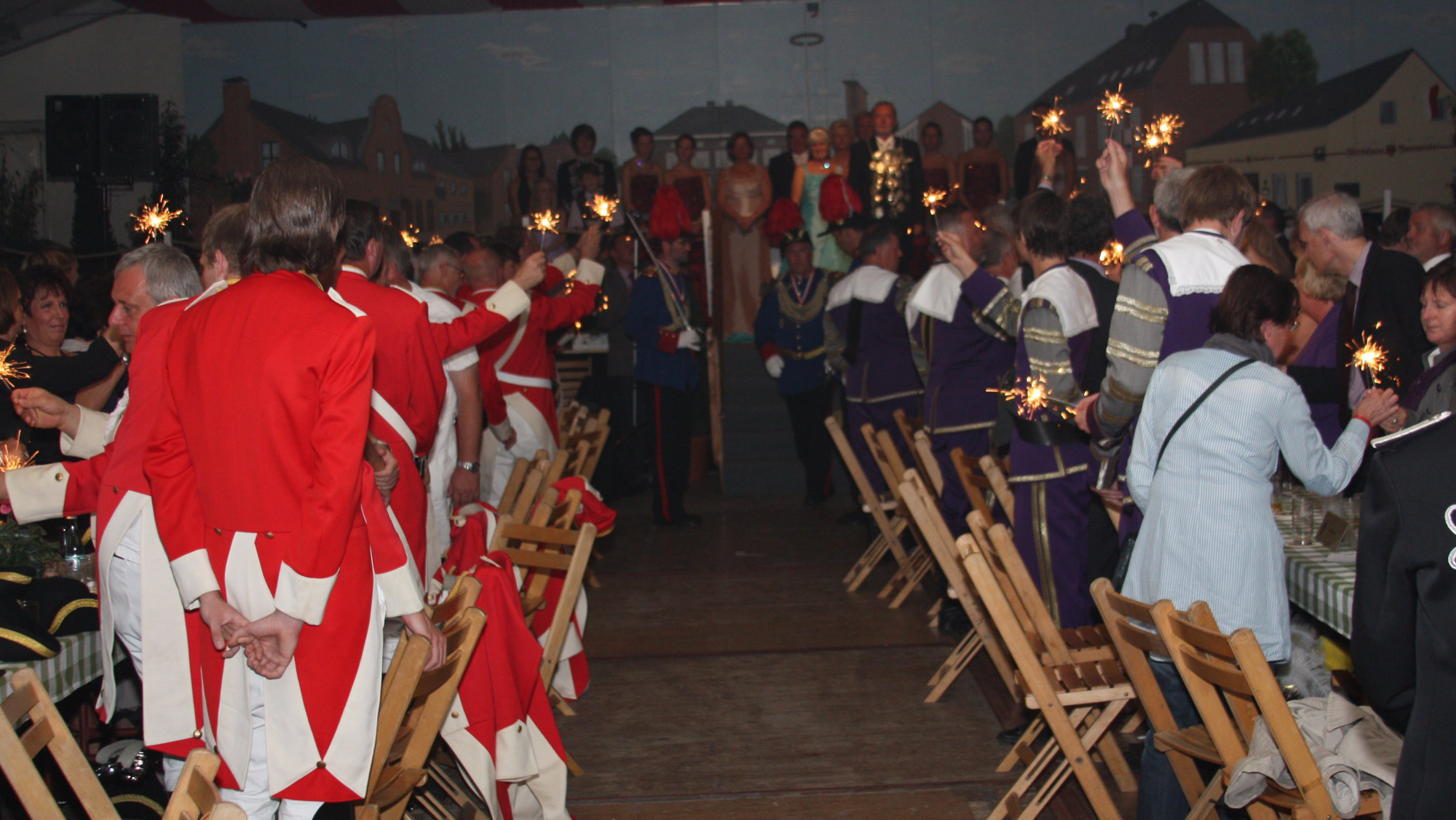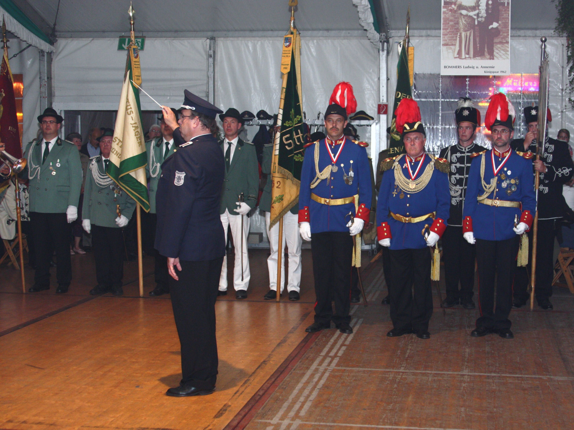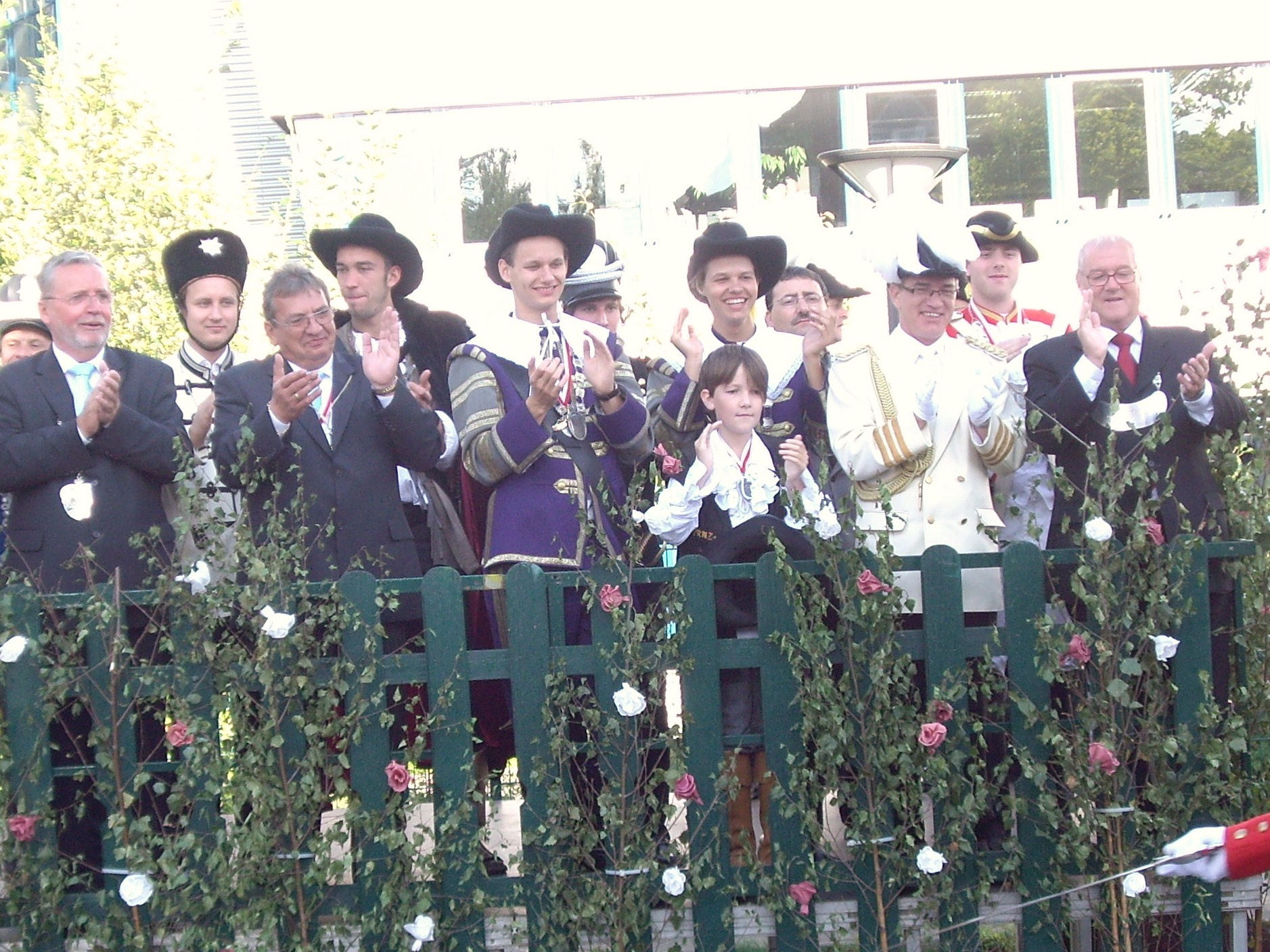 Wappen, Bühnenbild, Schützenbaum, Fahnen, Standarte