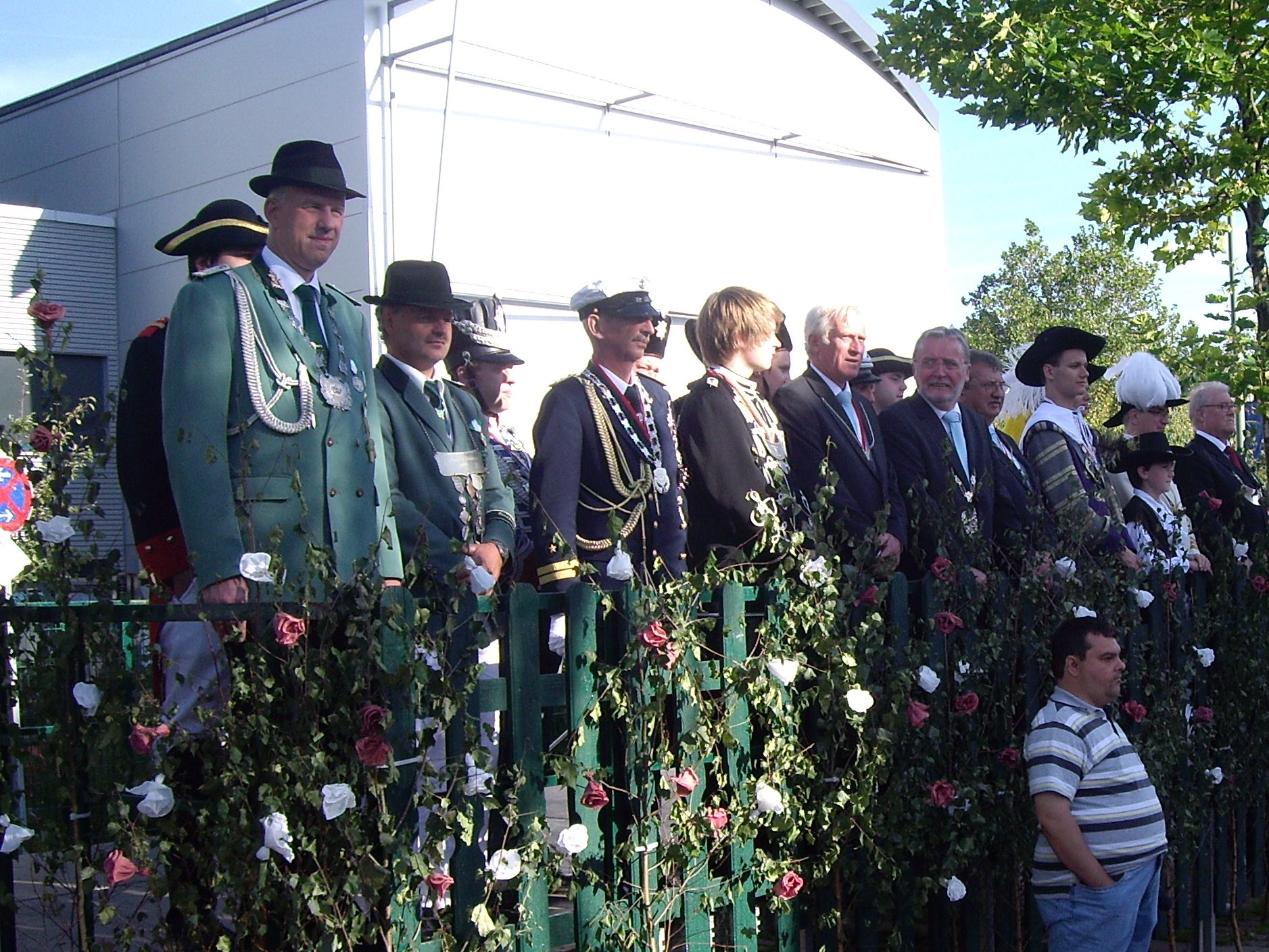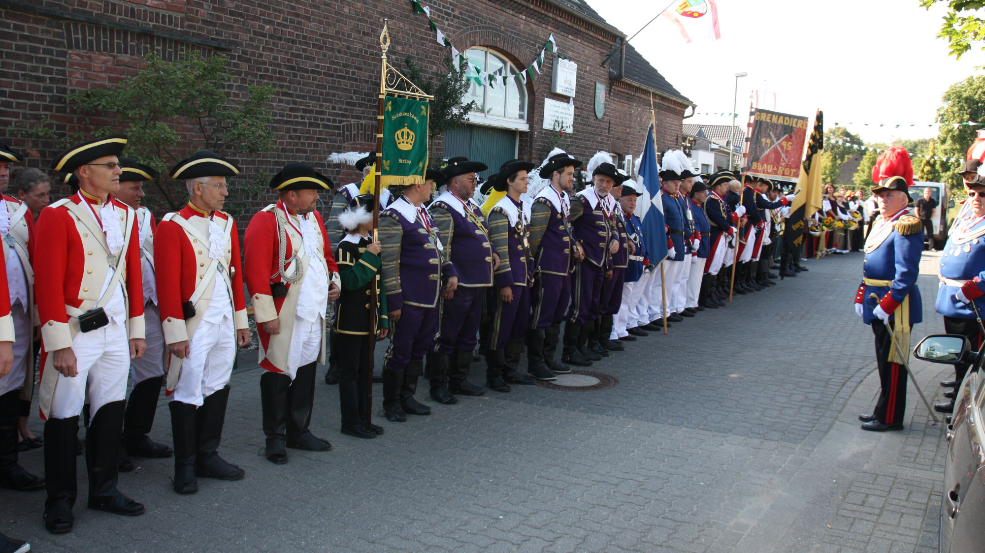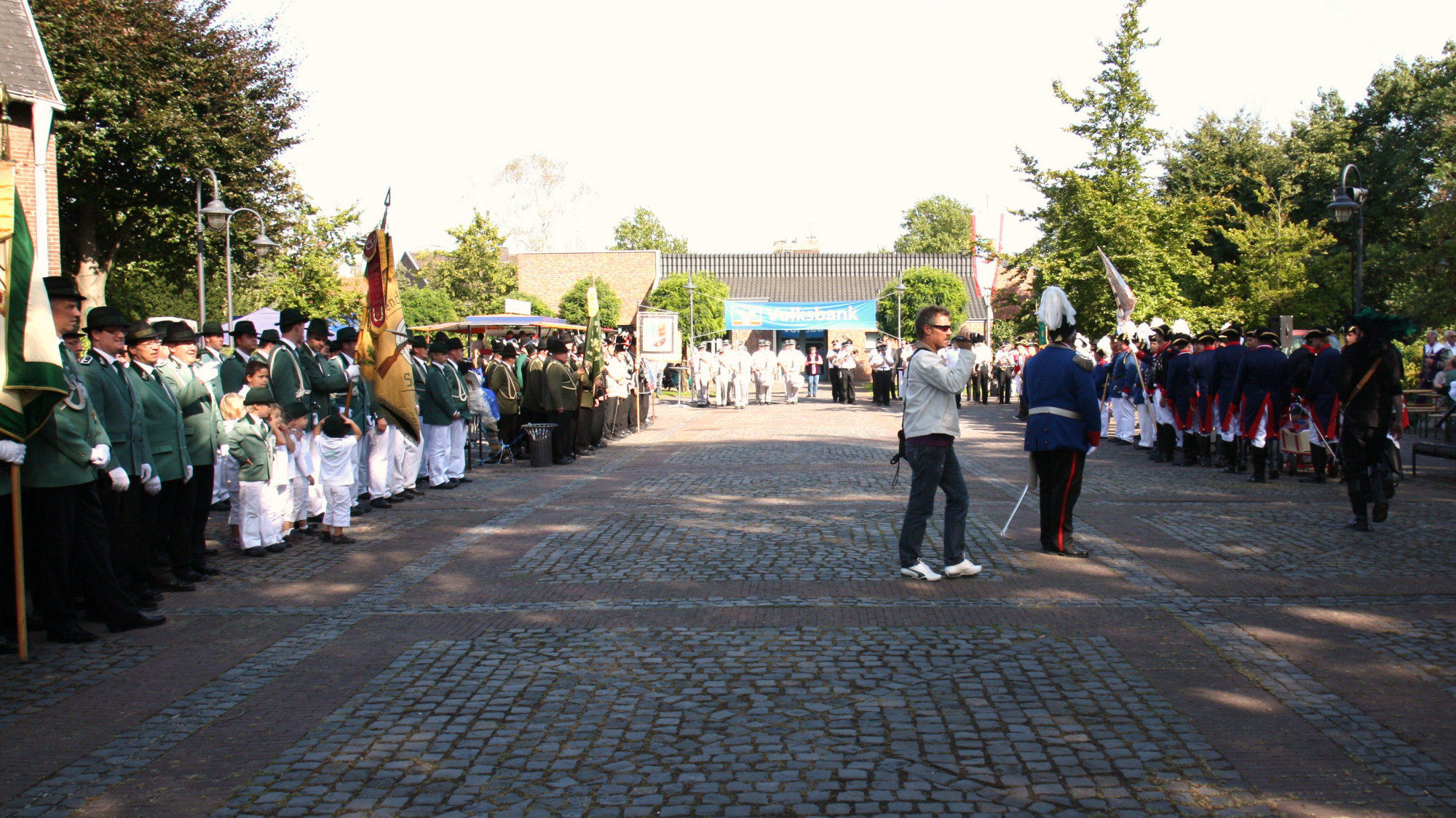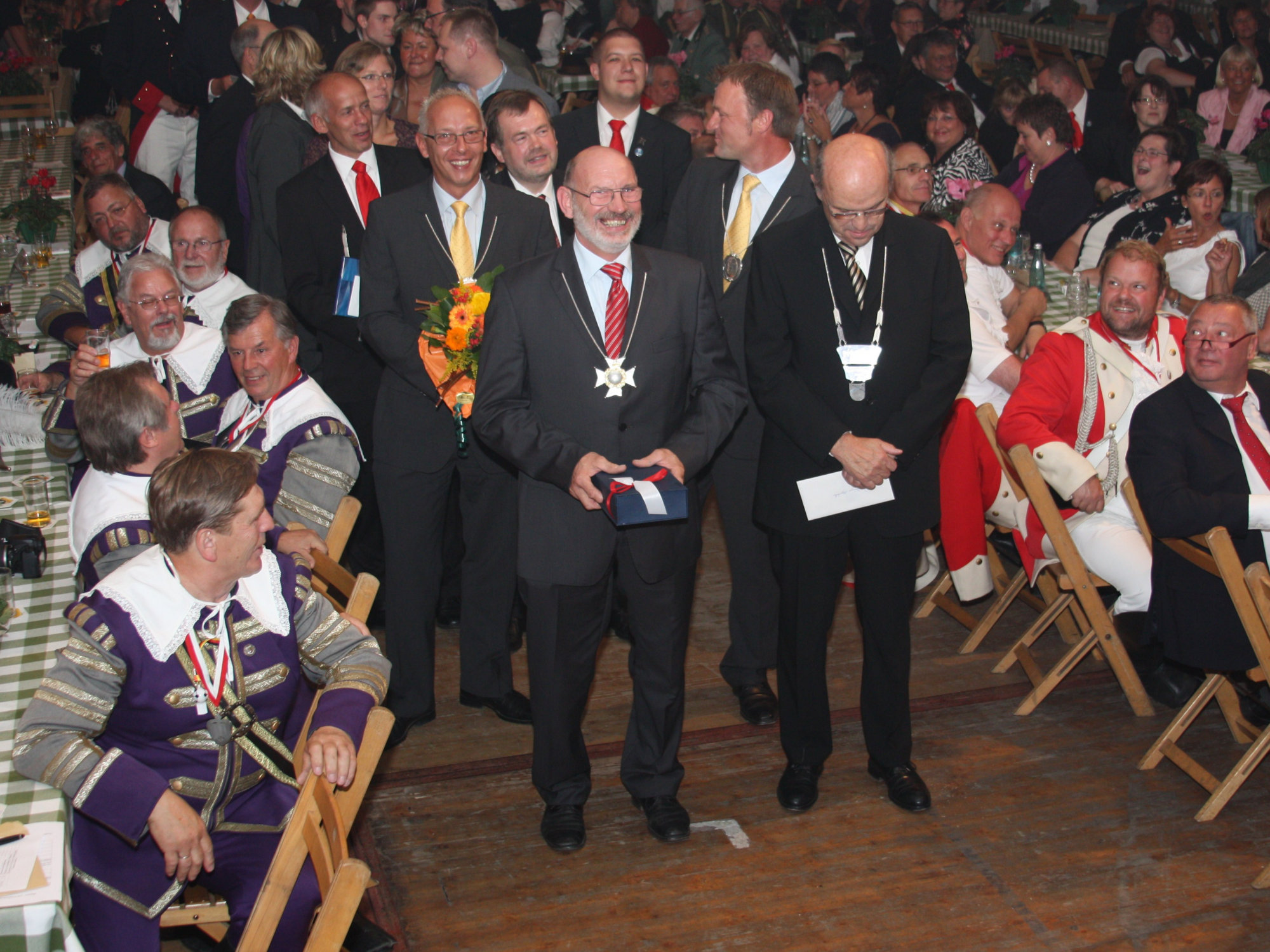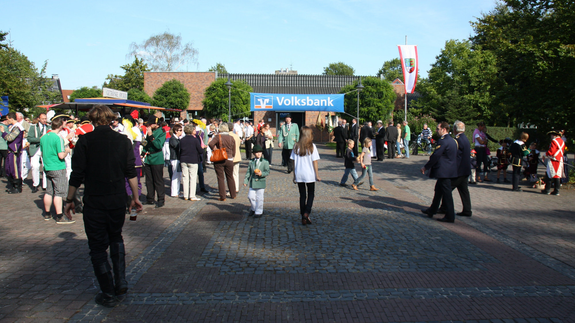 Wappen, Bühnenbild, Schützenbaum, Fahnen, Standarte