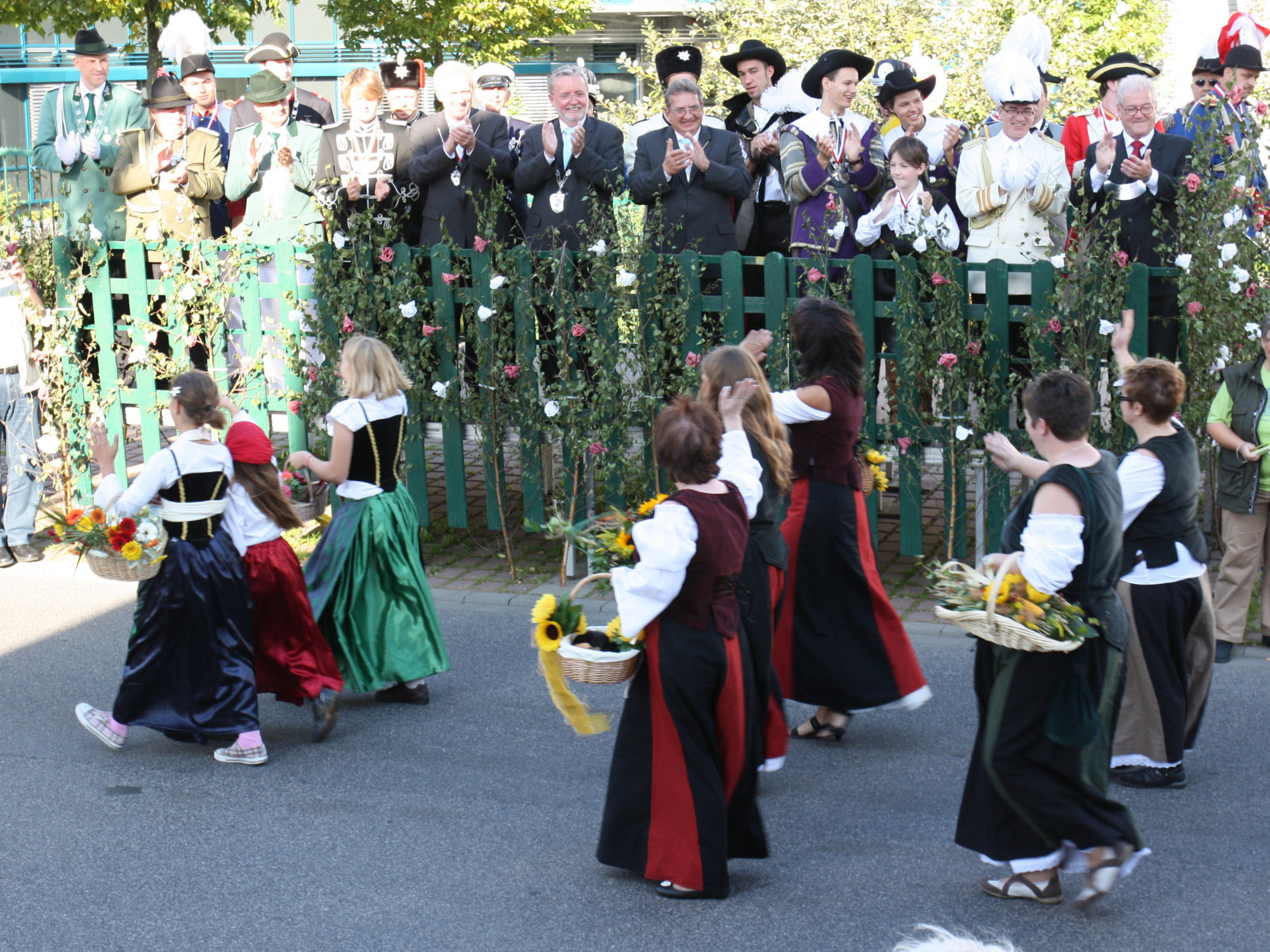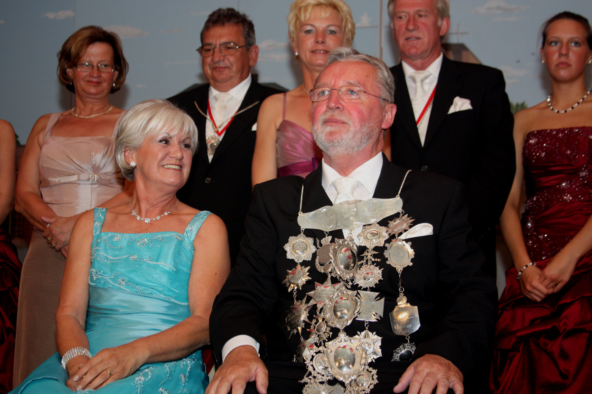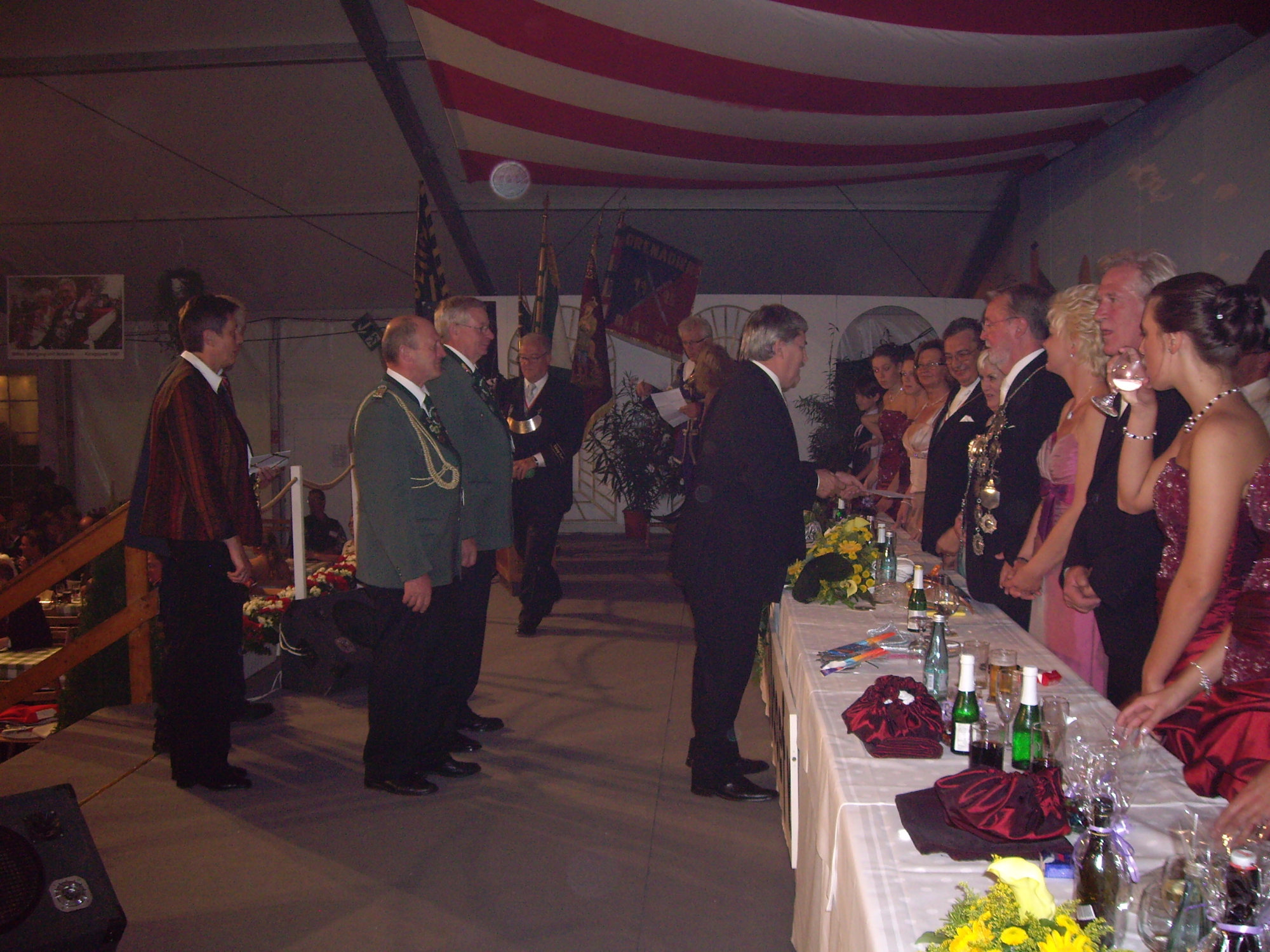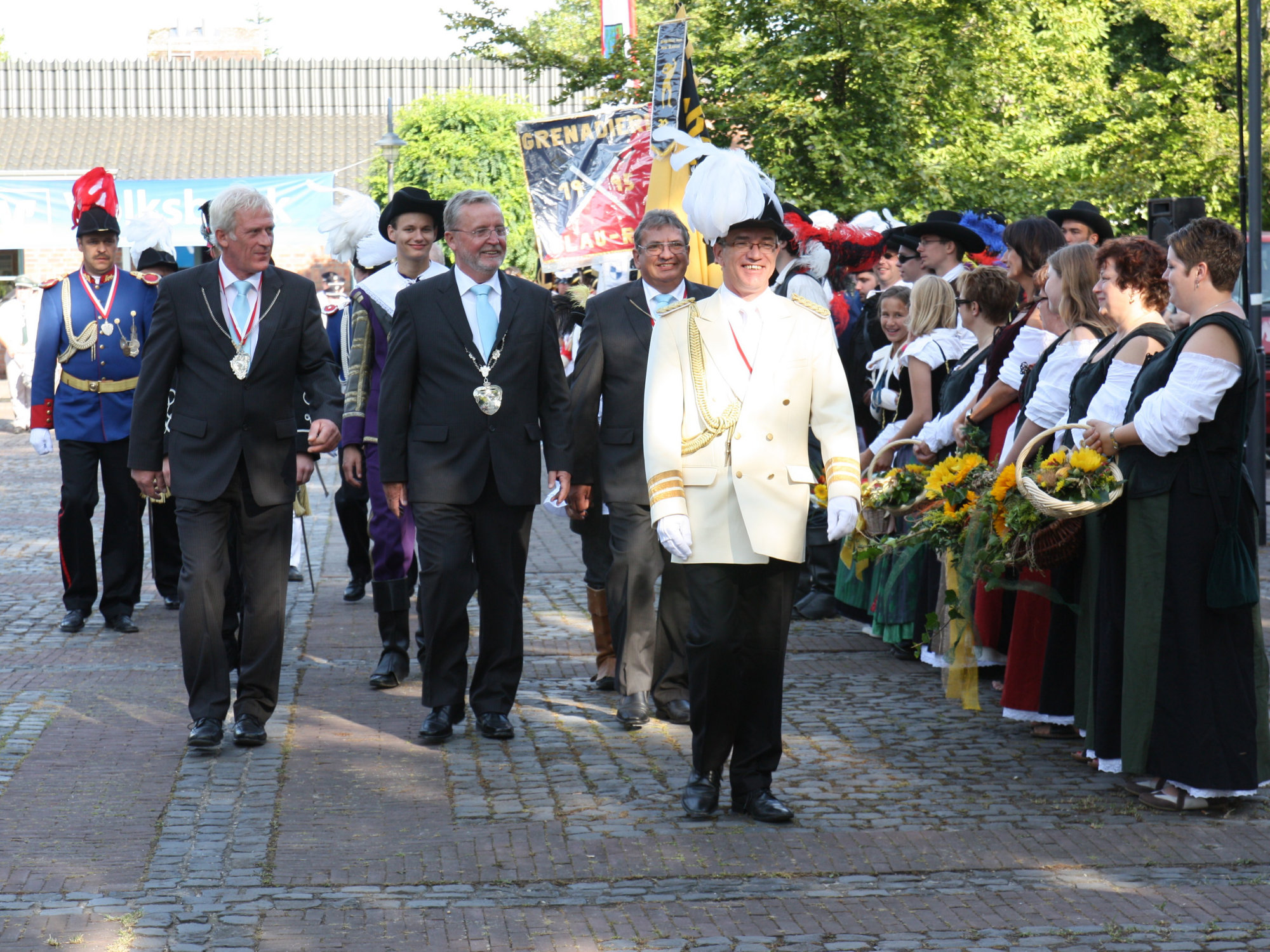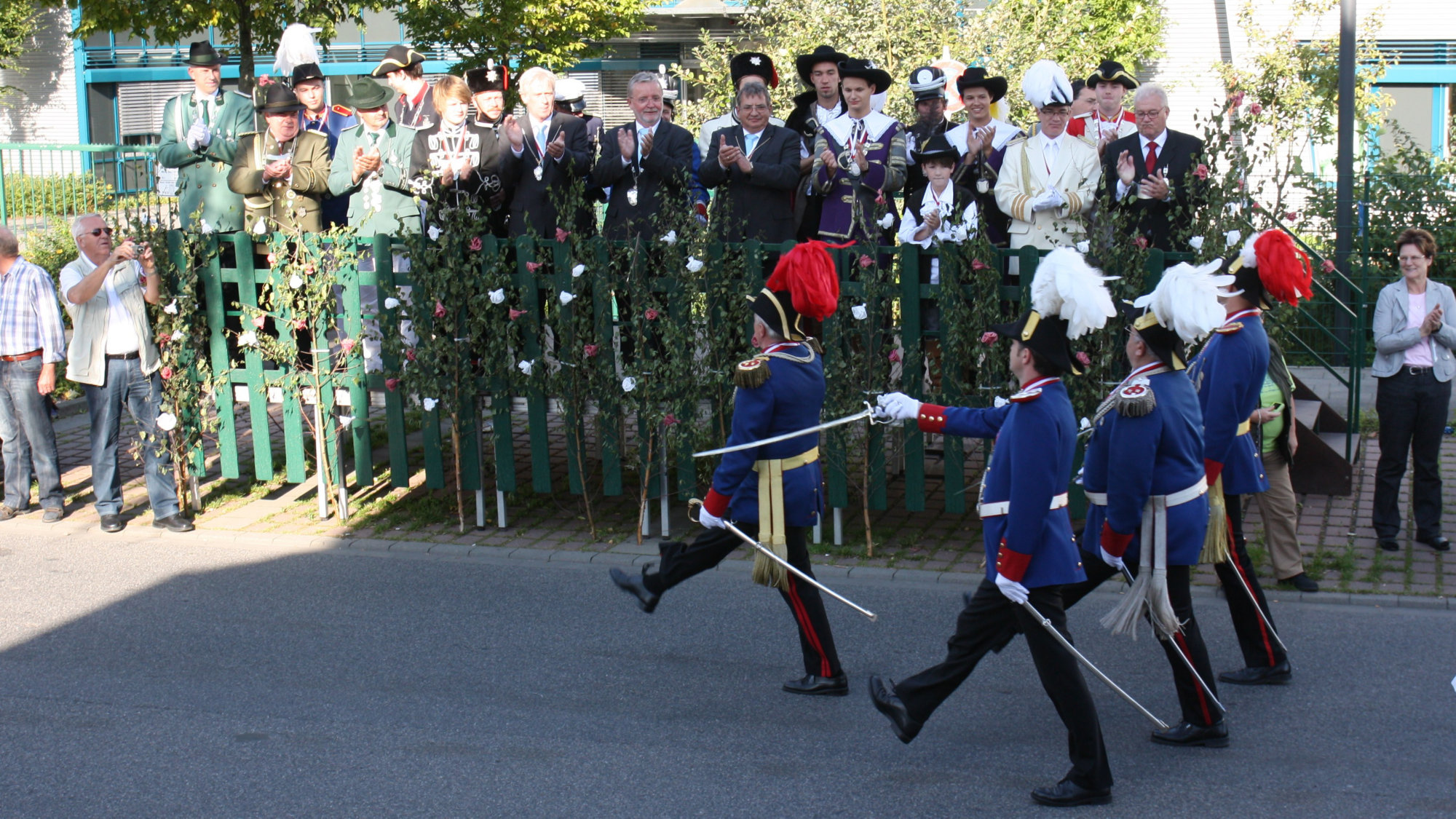 Wappen, Bühnenbild, Schützenbaum, Fahnen, Standarte