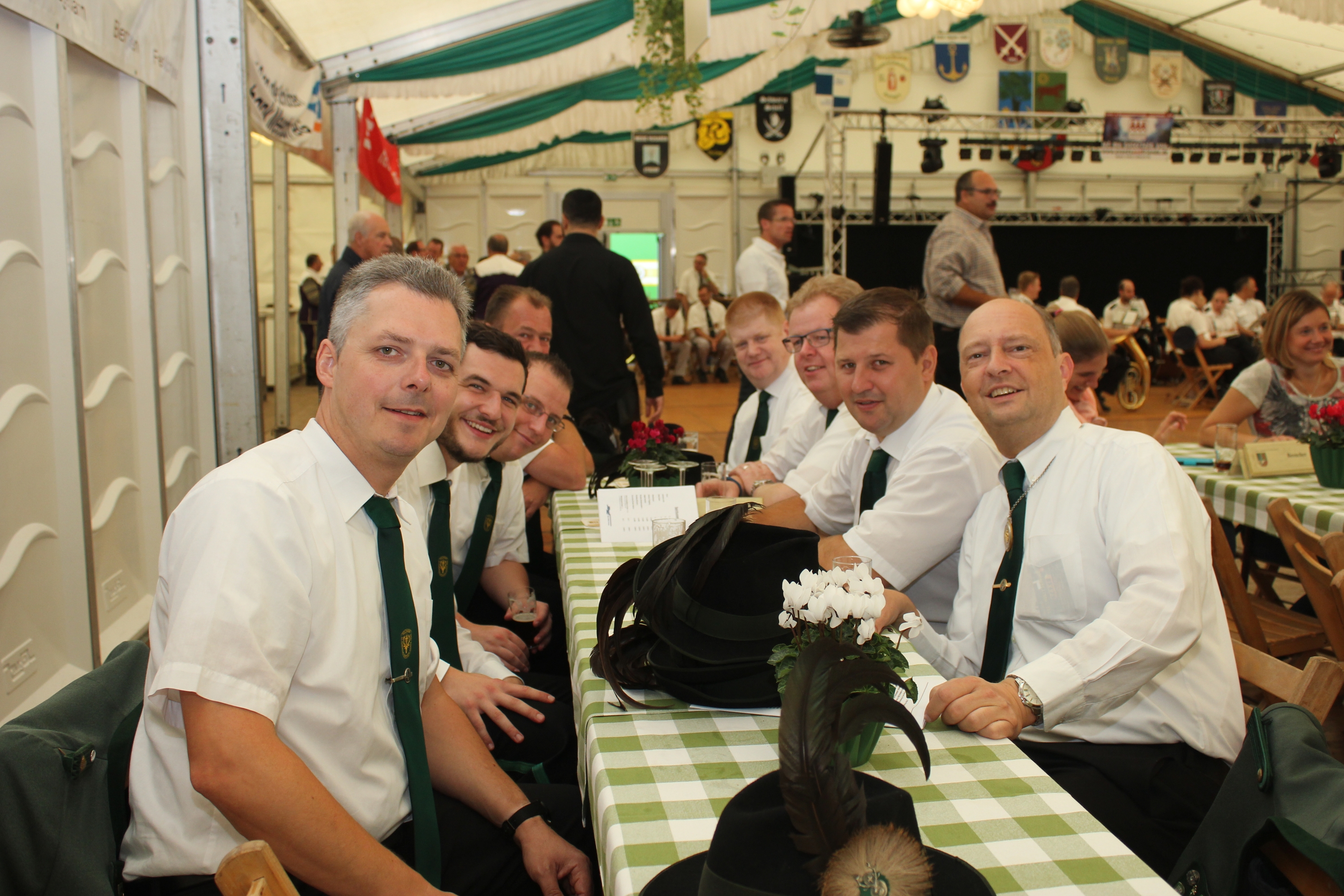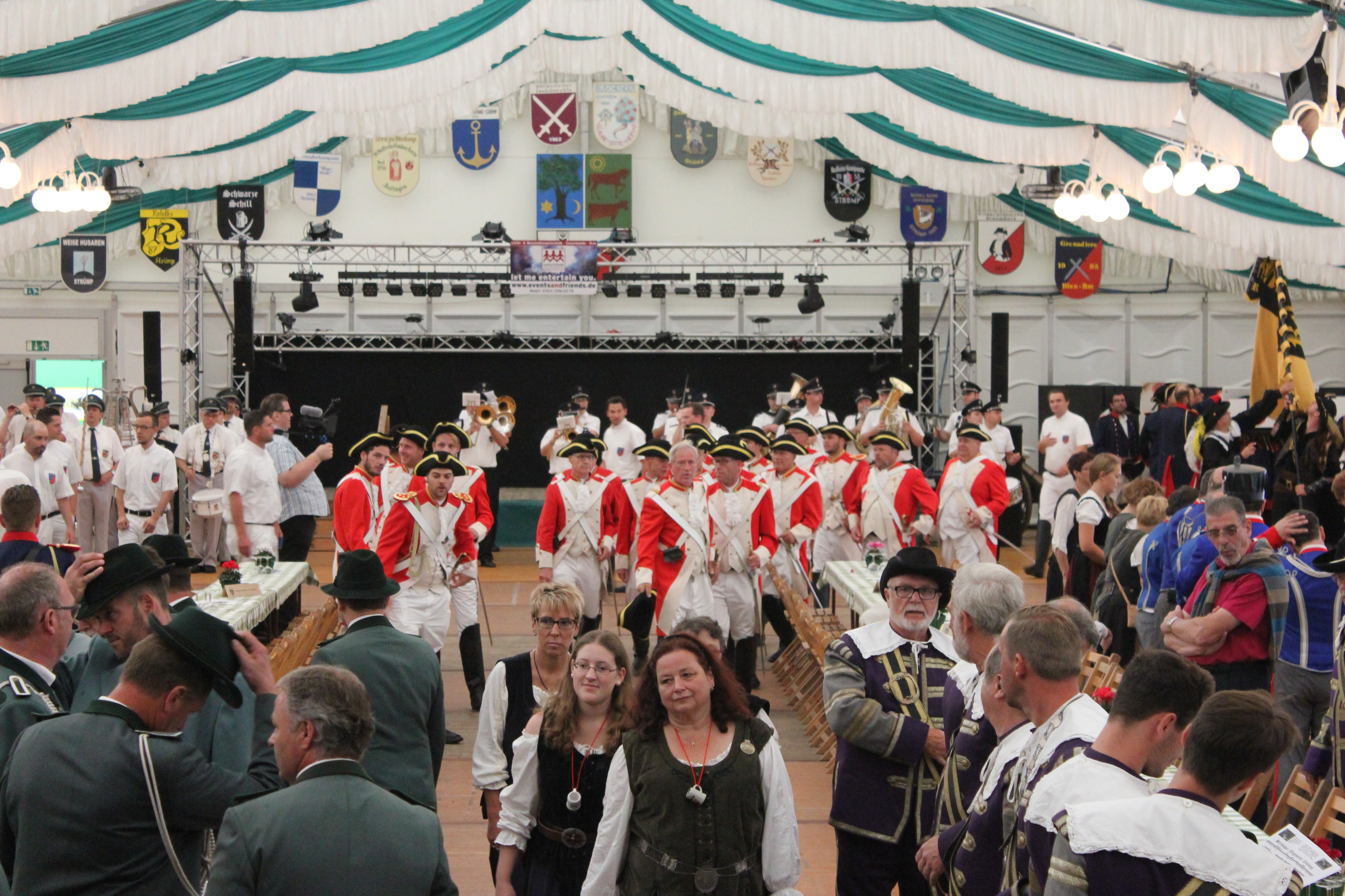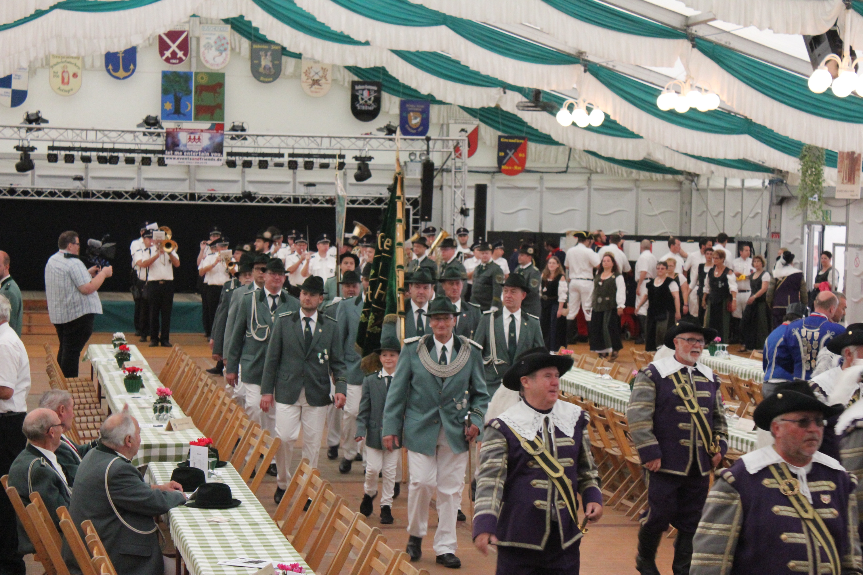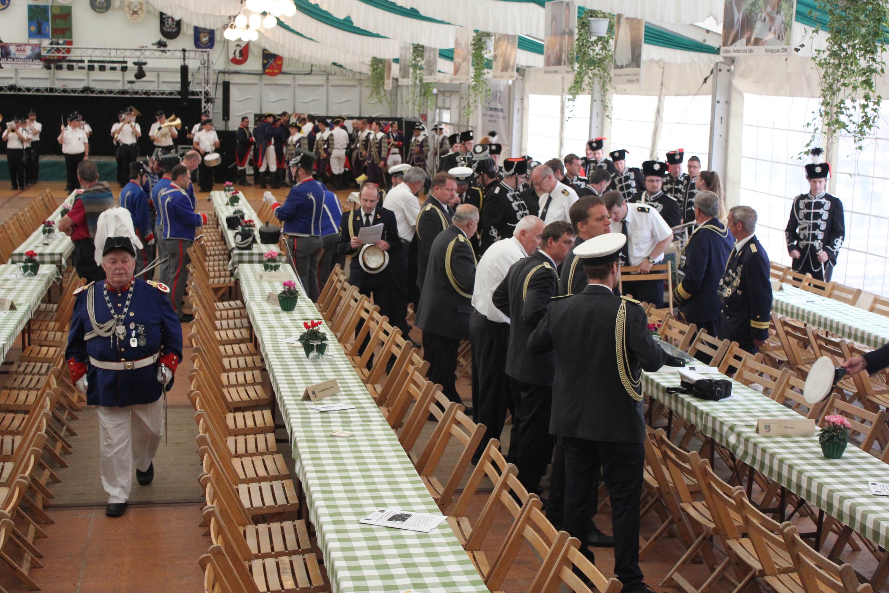 Wappen, Bühnenbild, Schützenbaum, Fahnen, Standarte
