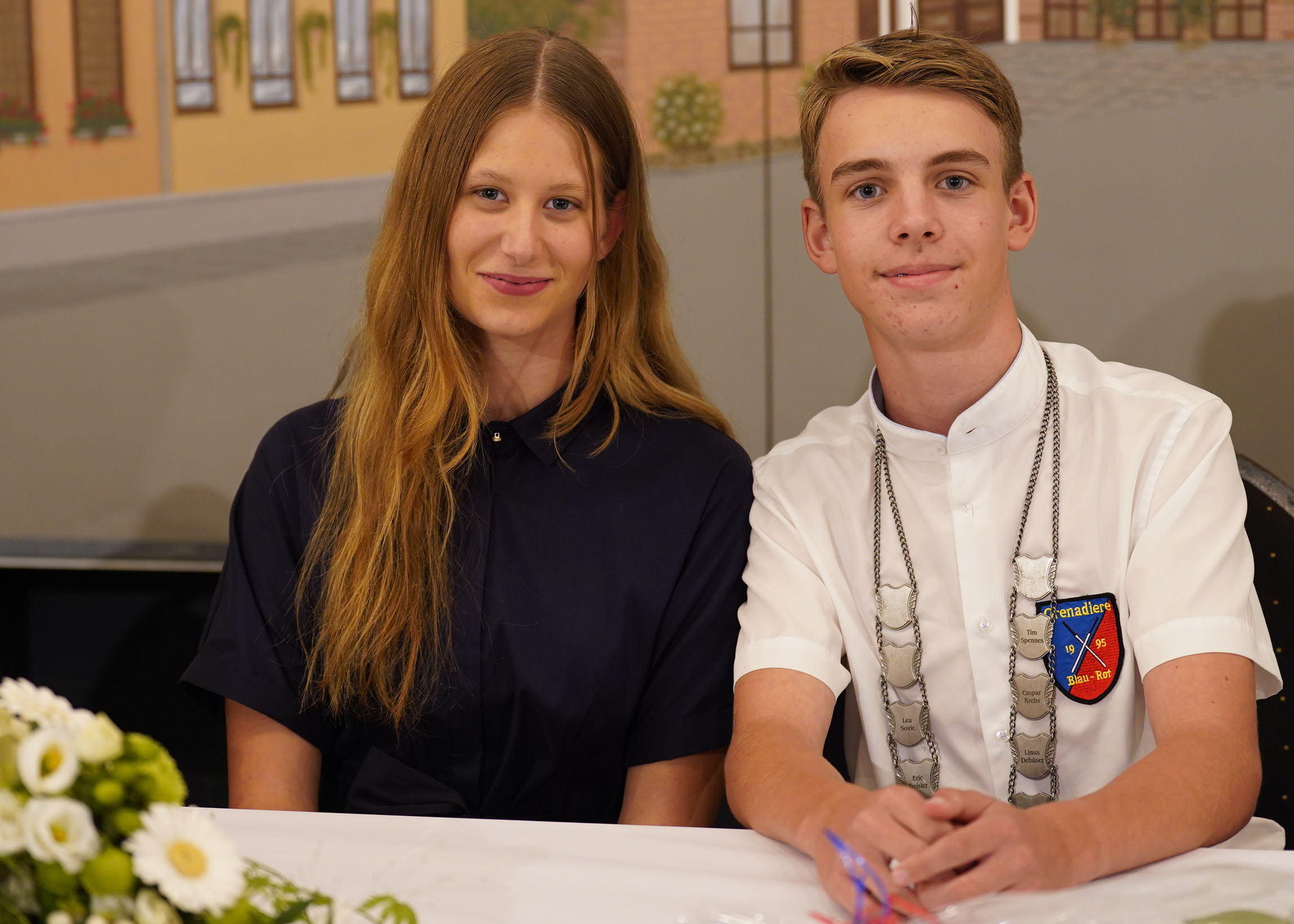 Wappen, Bühnenbild, Schützenbaum, Fahnen, Standarte