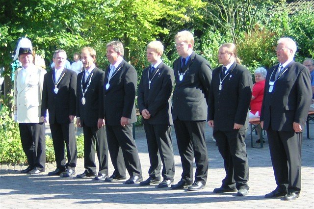stehend von links: Minister Detlev Hüsges, General Franz Nelsen, Mundschenk Josef Artssitzend von links: Herbert Beesen und Franz-Gerd Arts