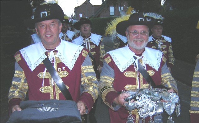 vorne links: die Wallensteiner Peter Mertens und Franz-Gerd Arts (r)