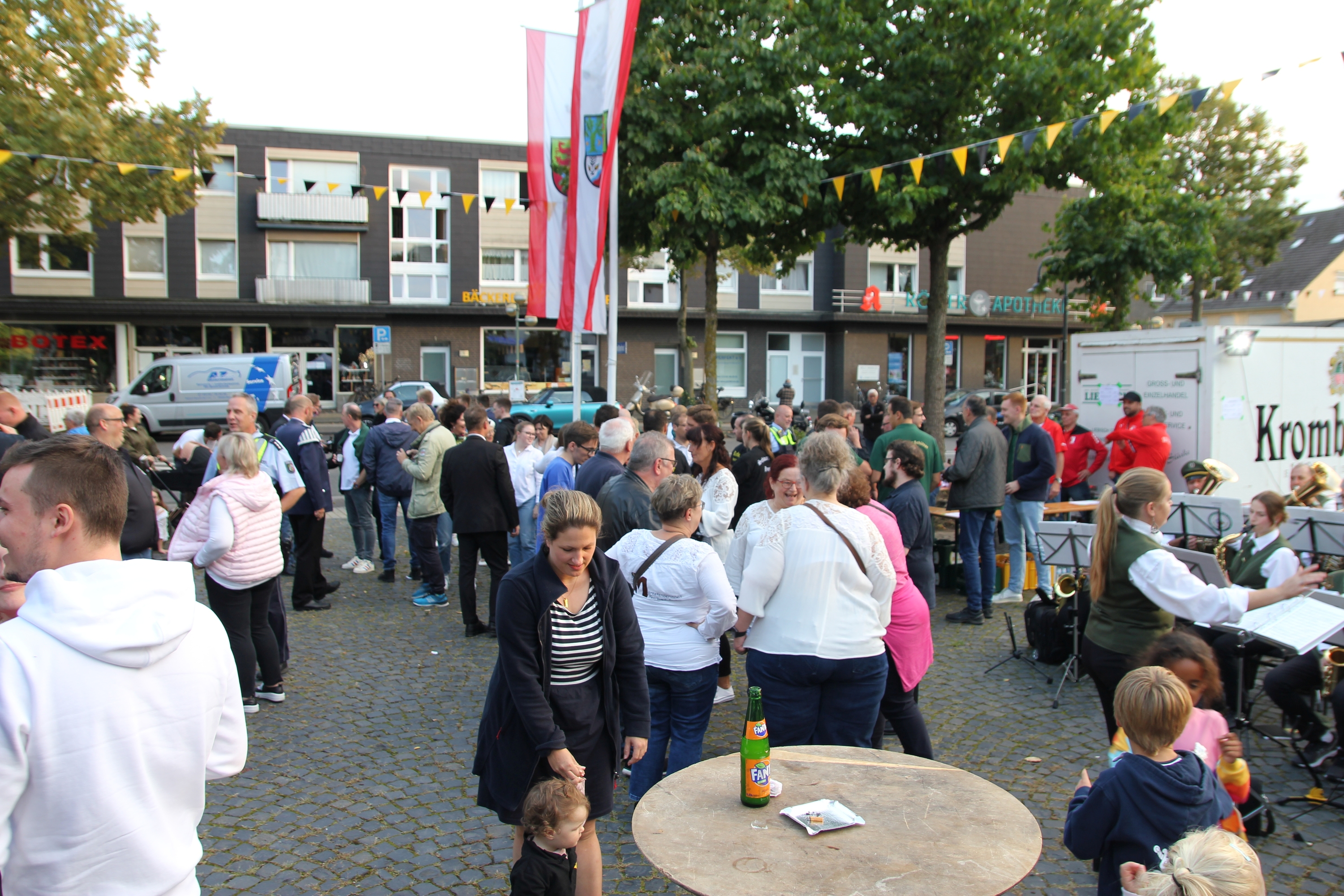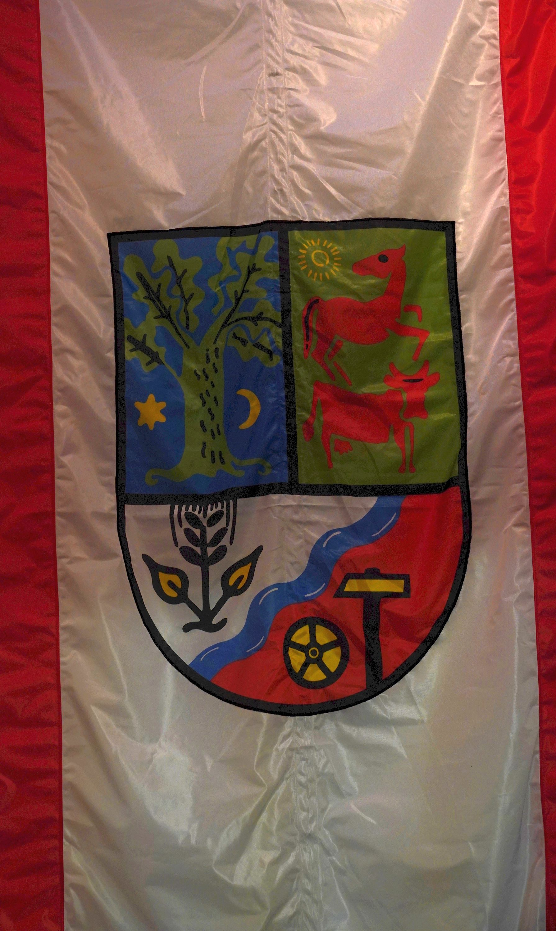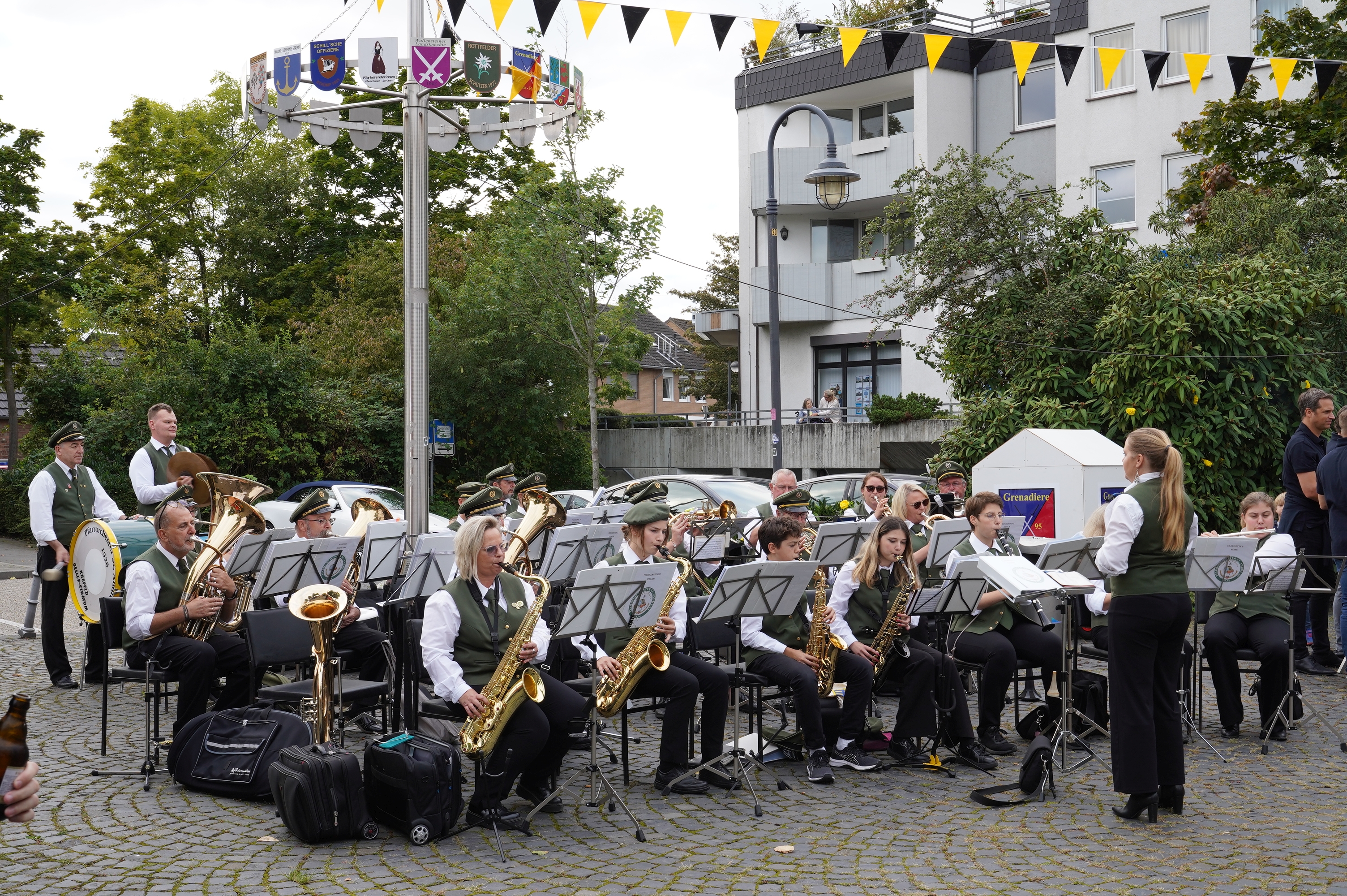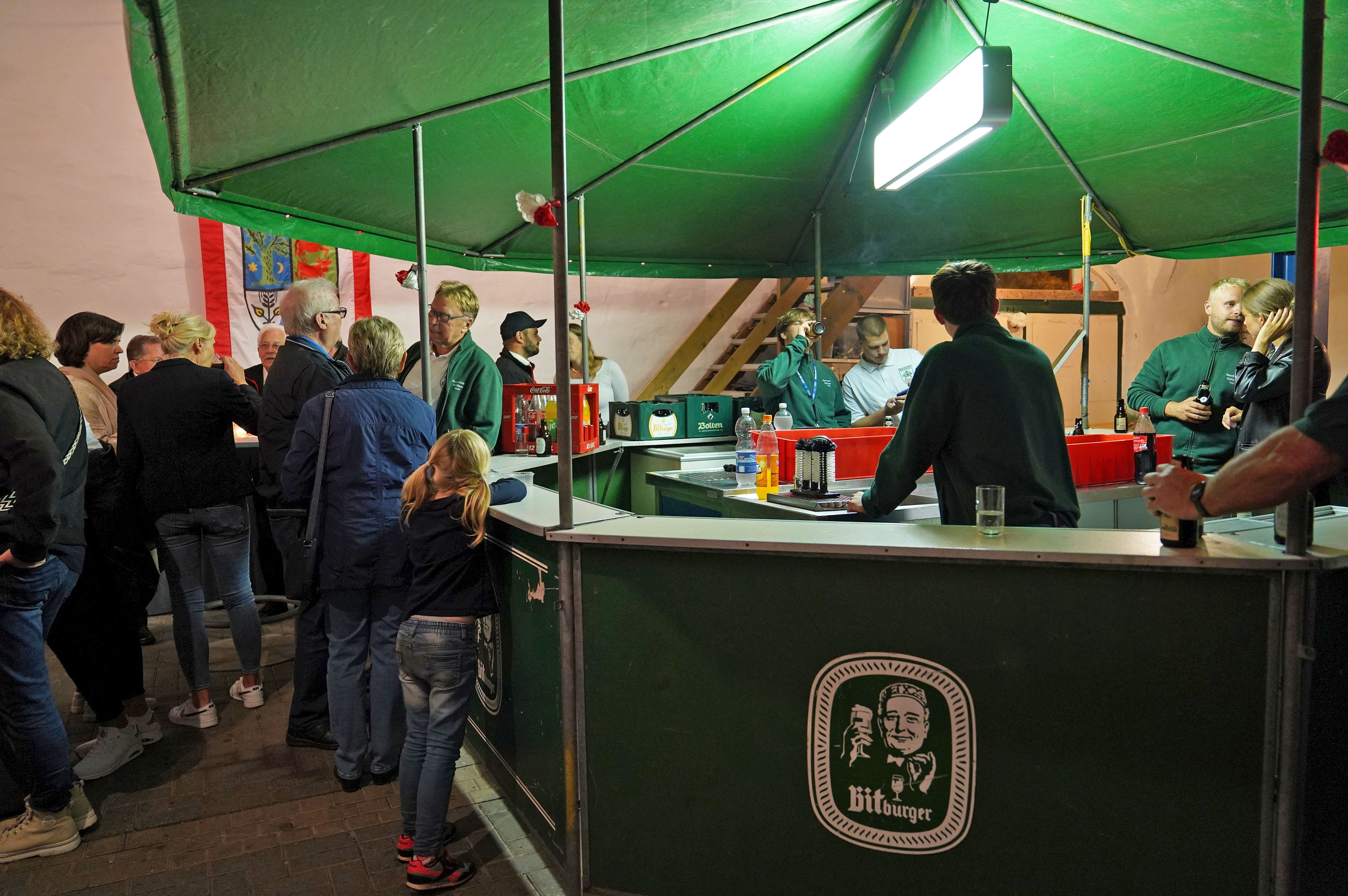 Wappen, Bühnenbild, Schützenbaum, Fahnen, Standarte