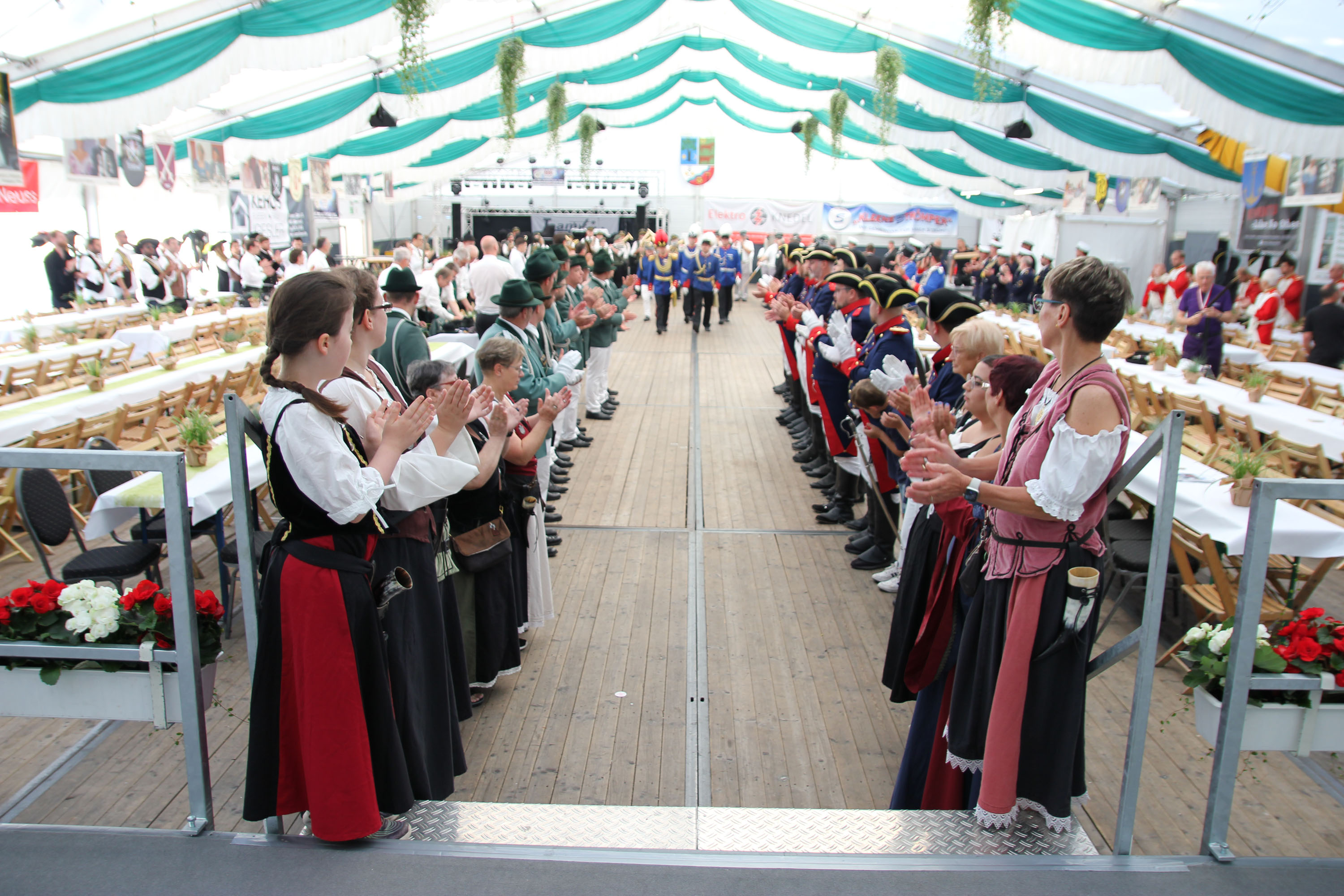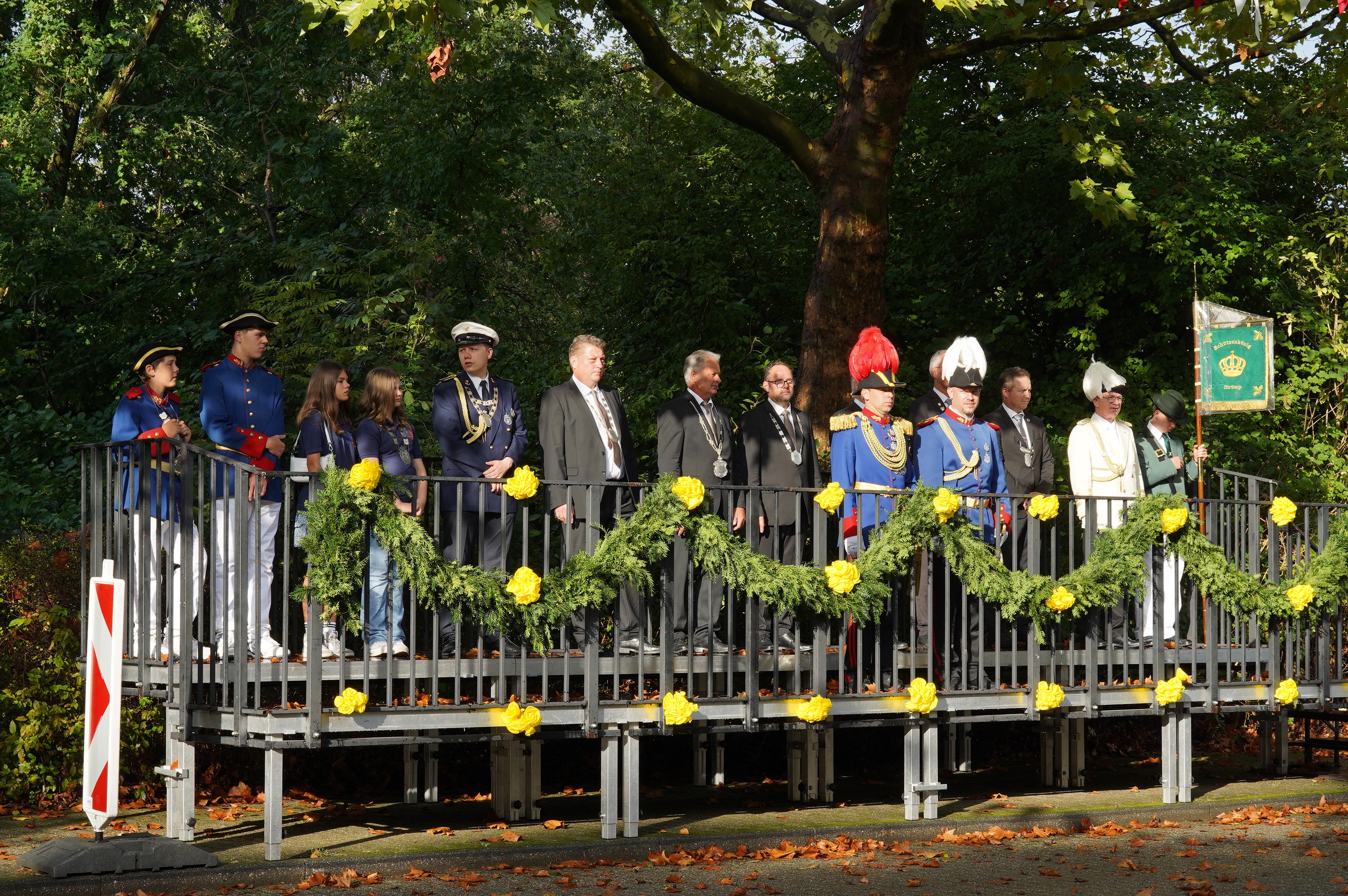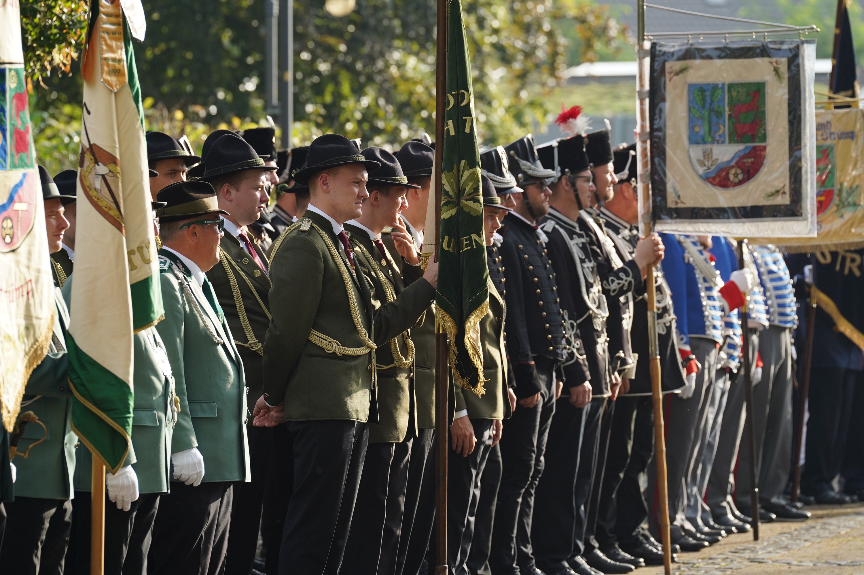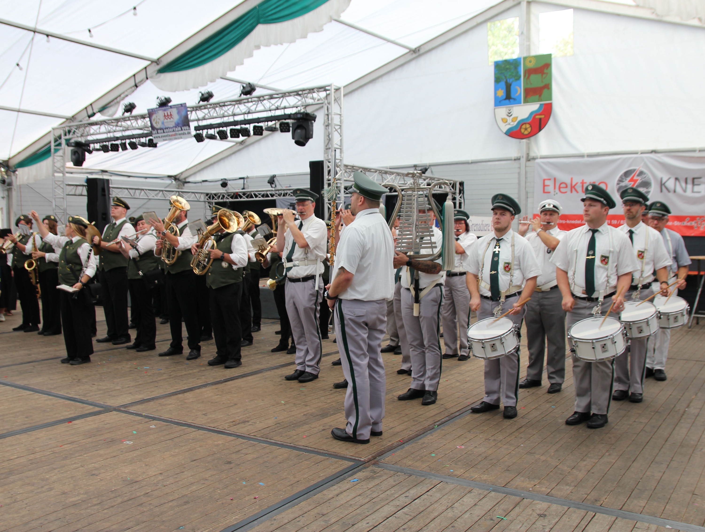 Wappen, Bühnenbild, Schützenbaum, Fahnen, Standarte