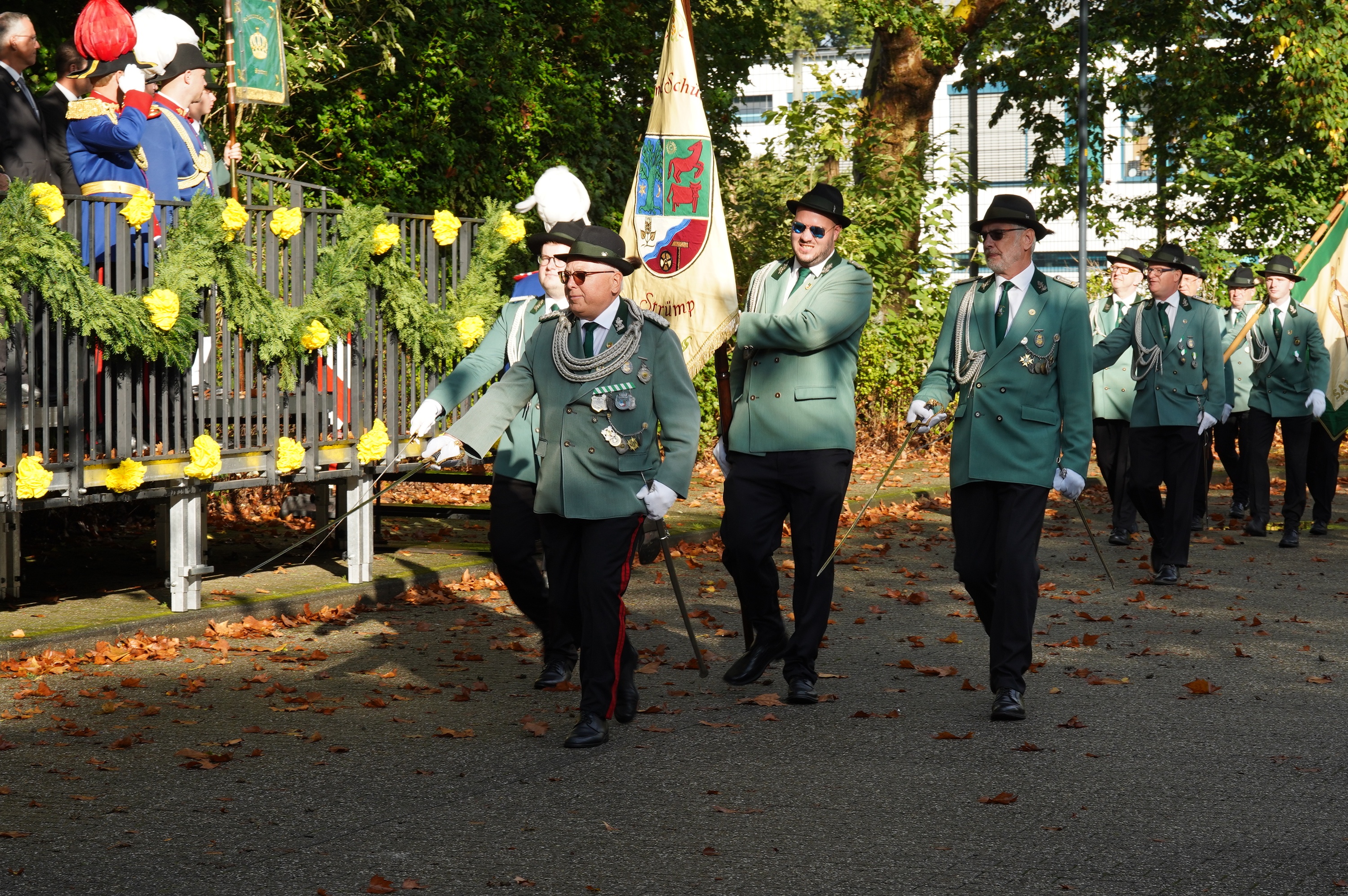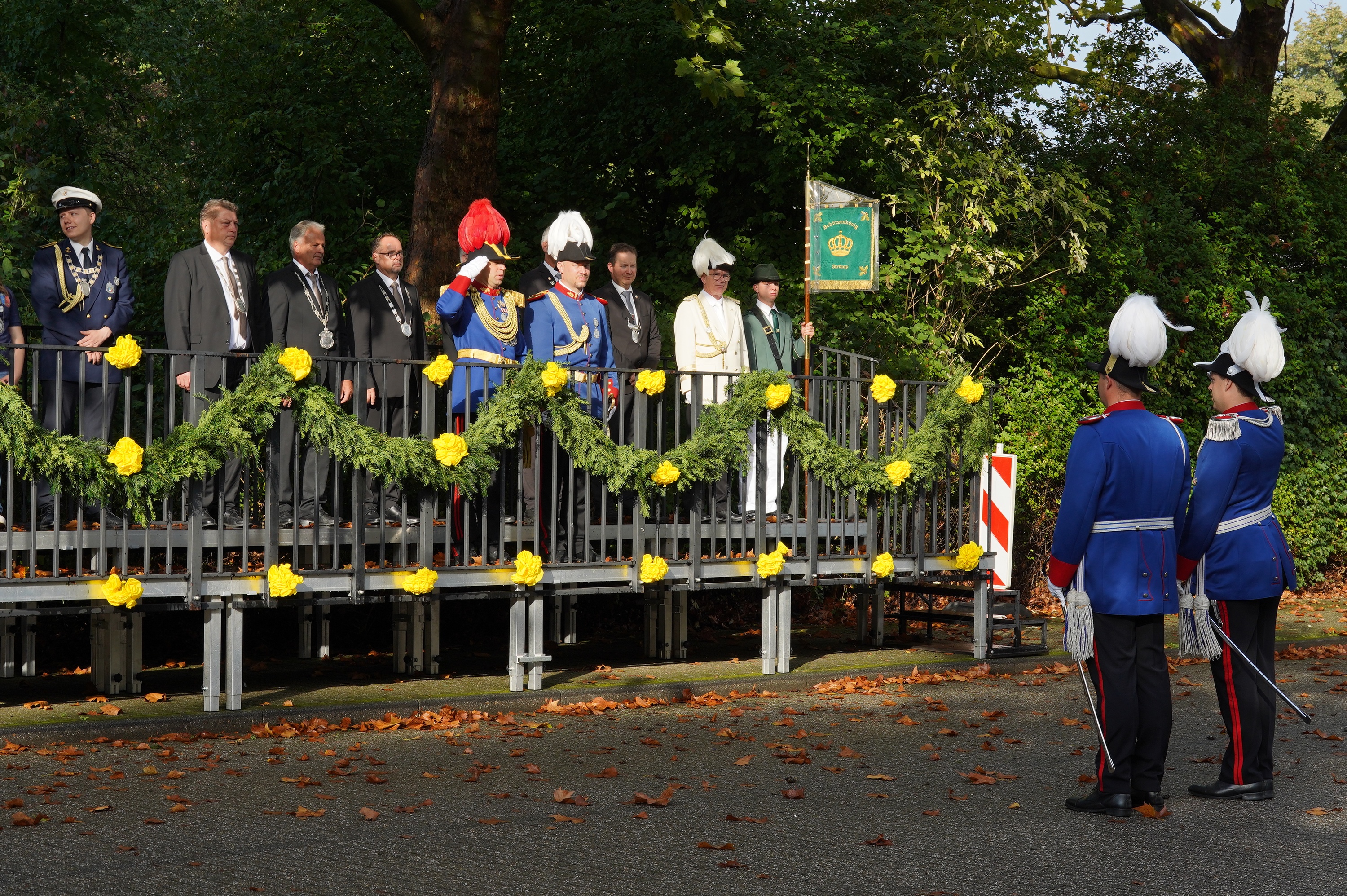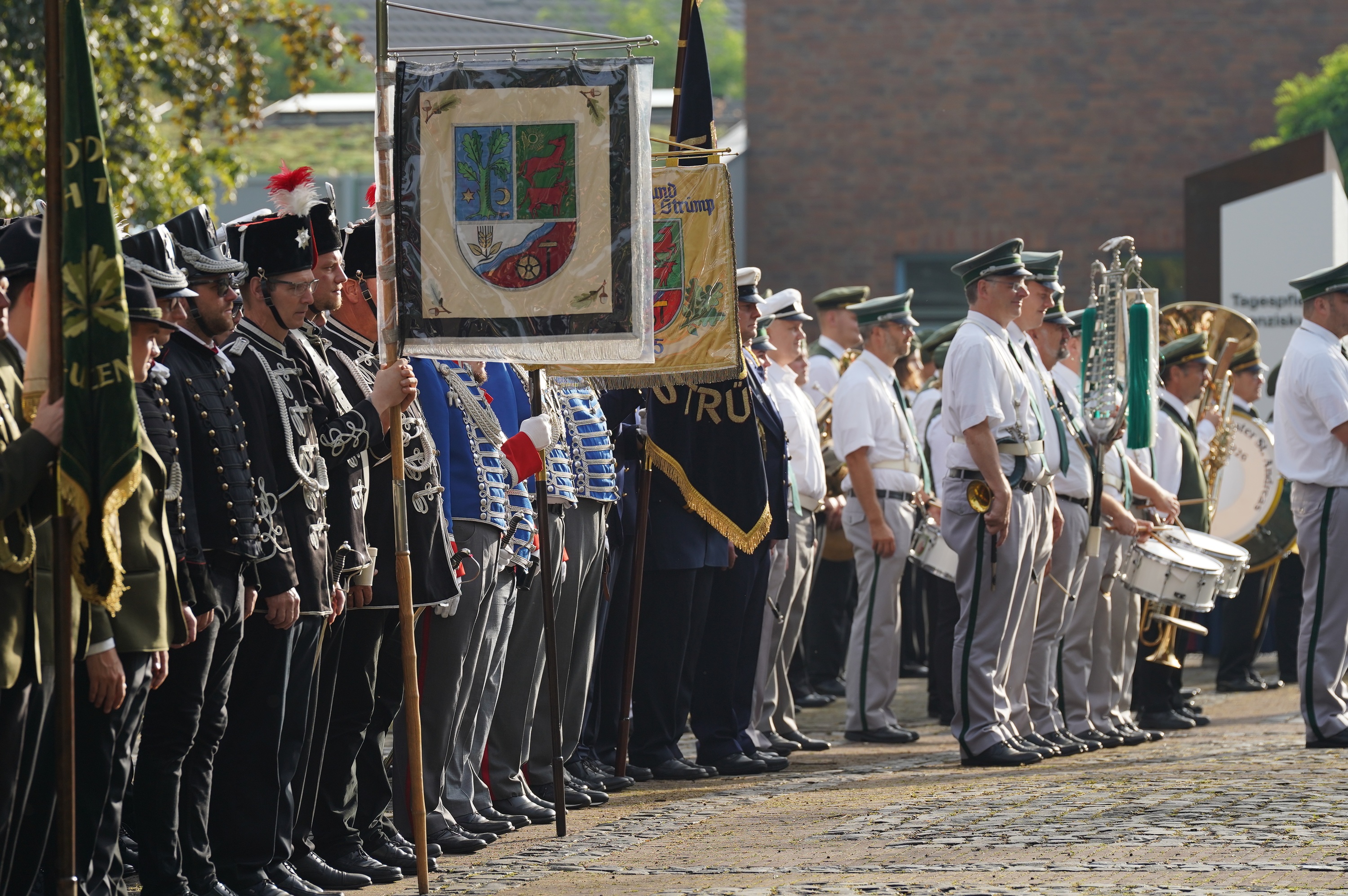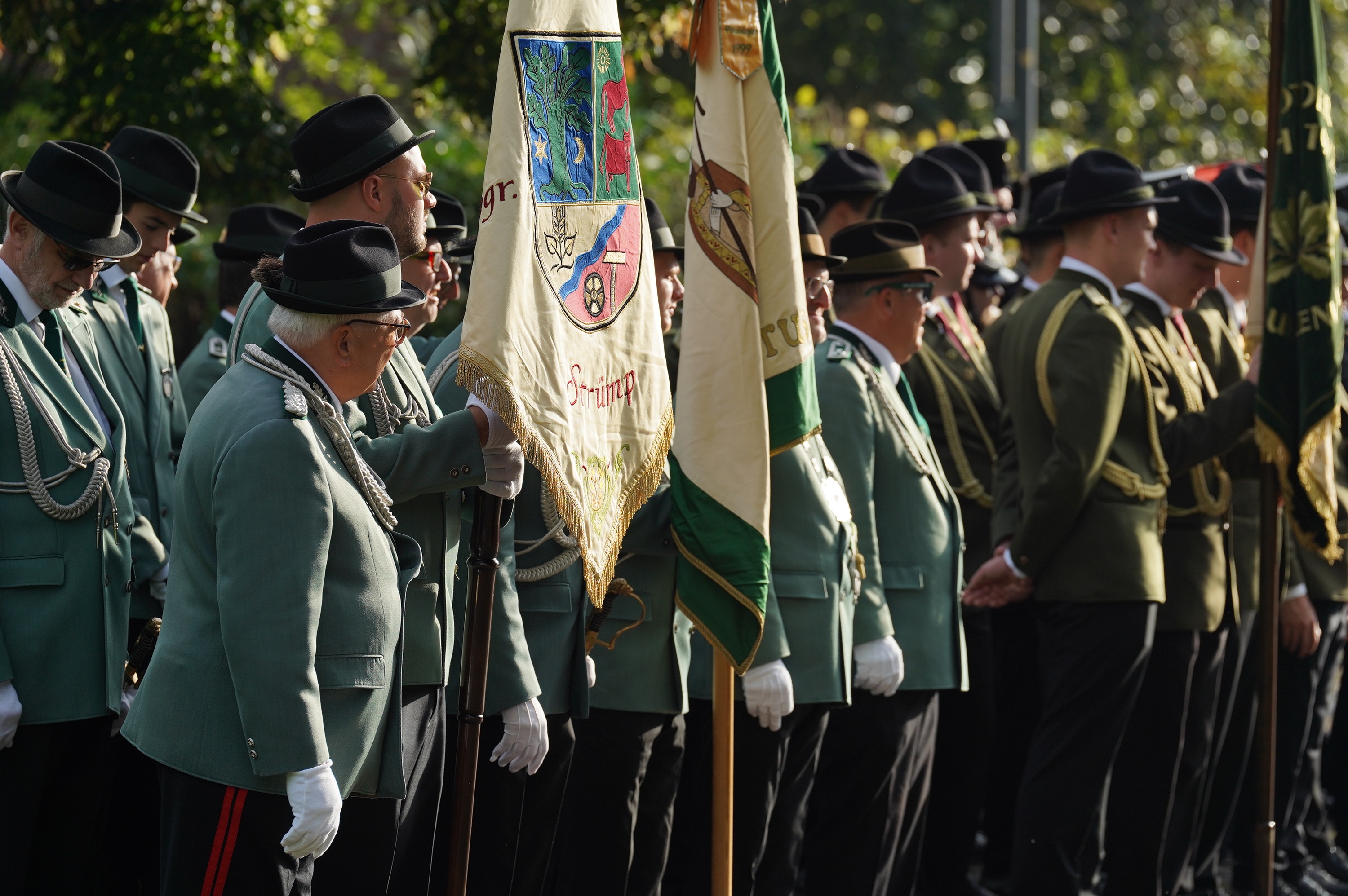 Wappen, Bühnenbild, Schützenbaum, Fahnen, Standarte