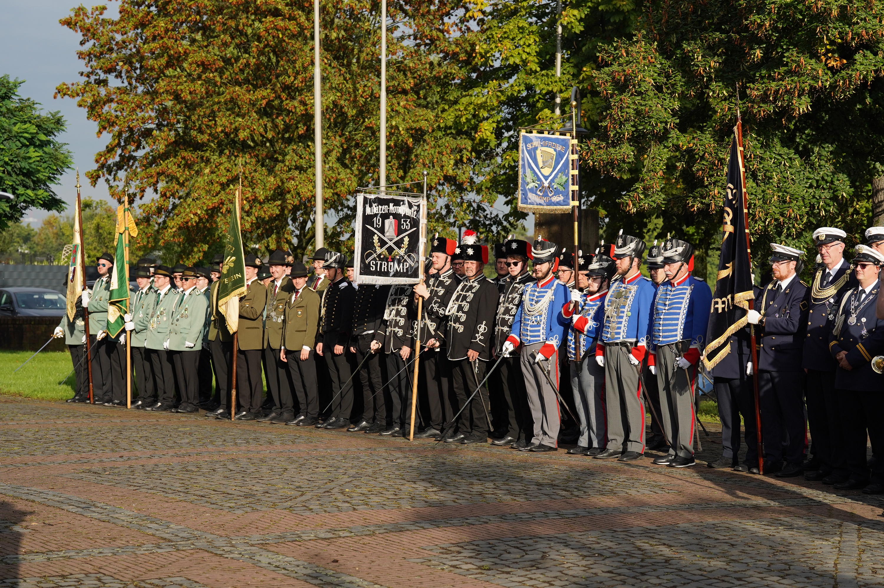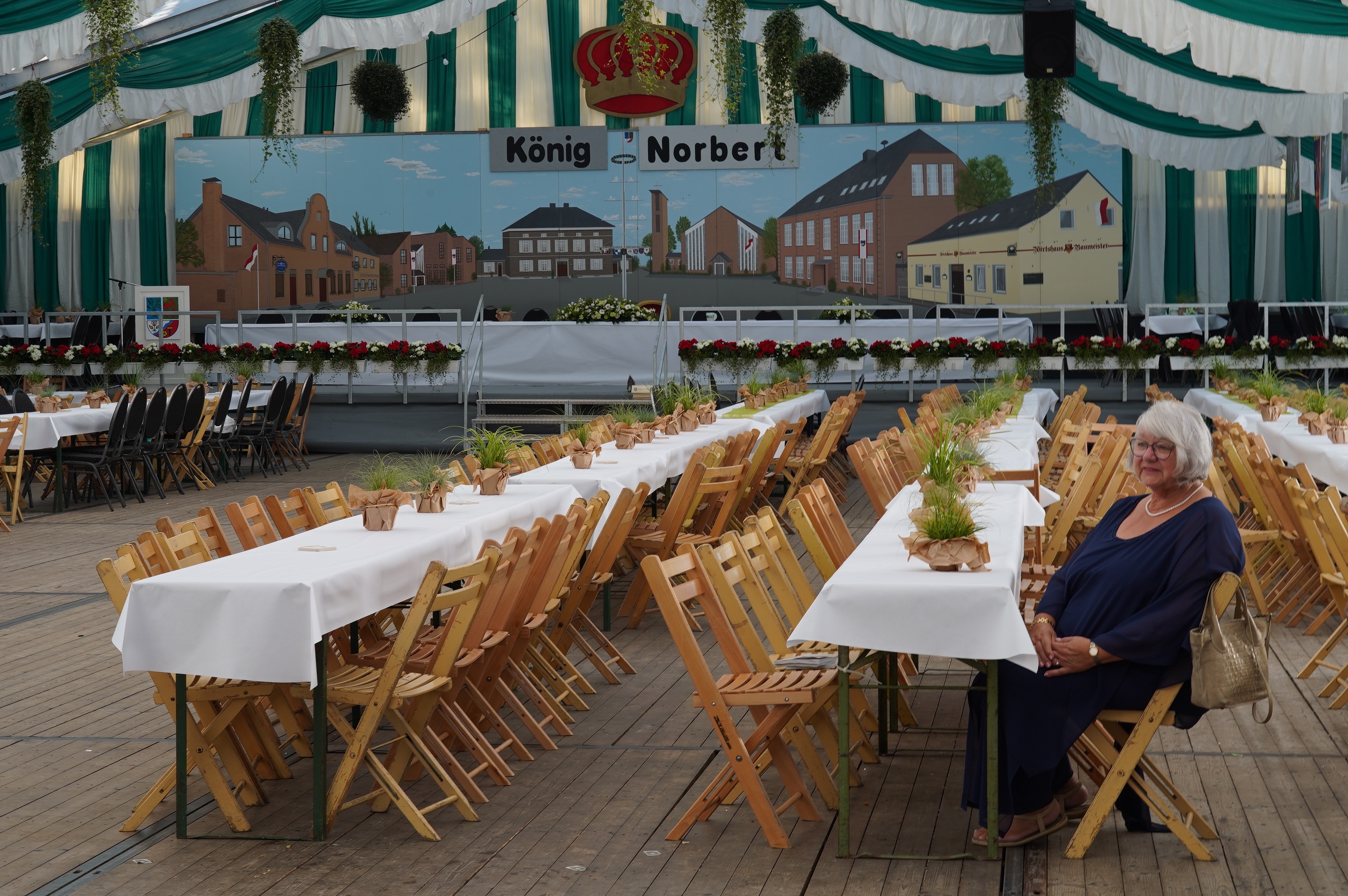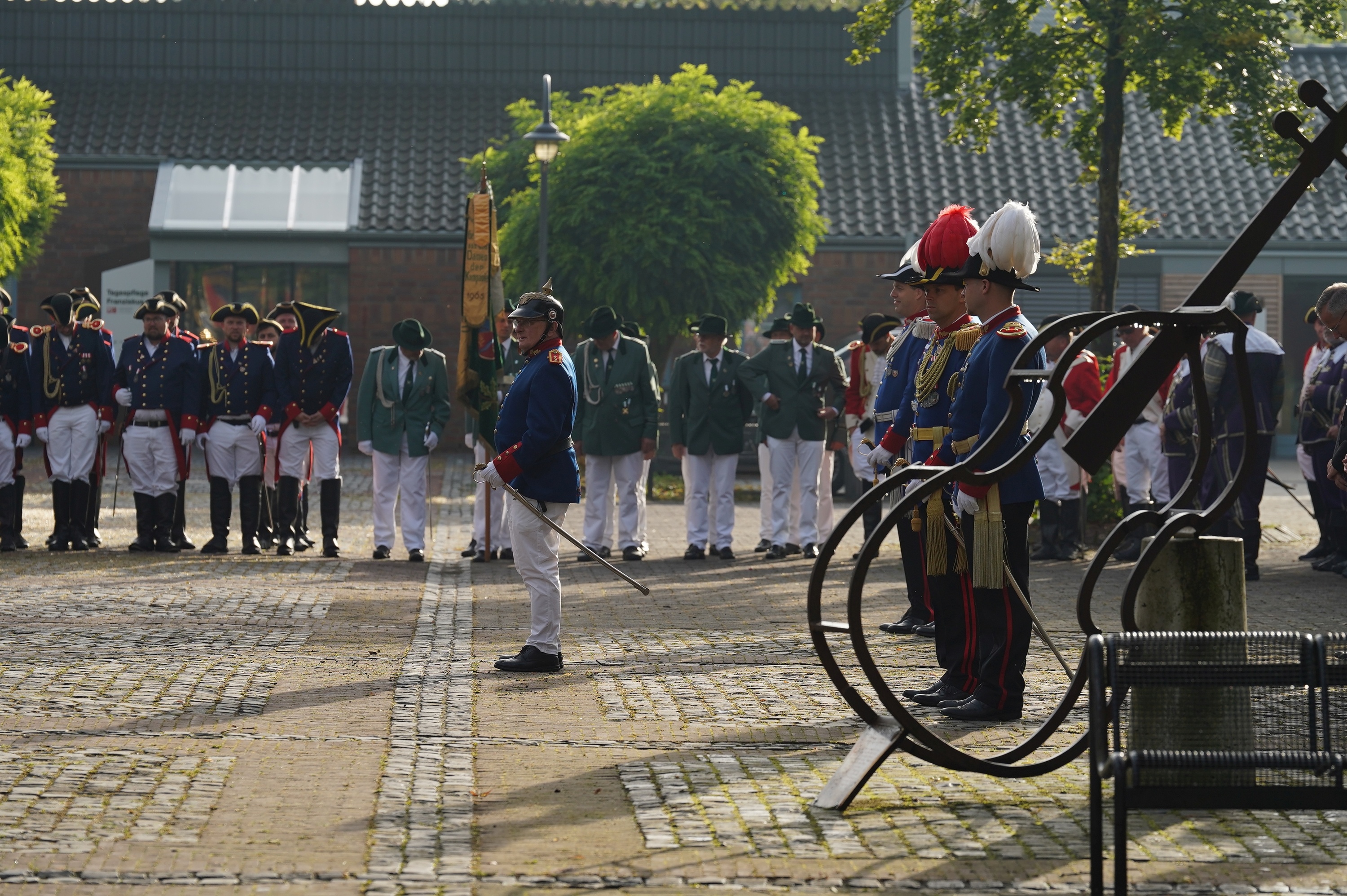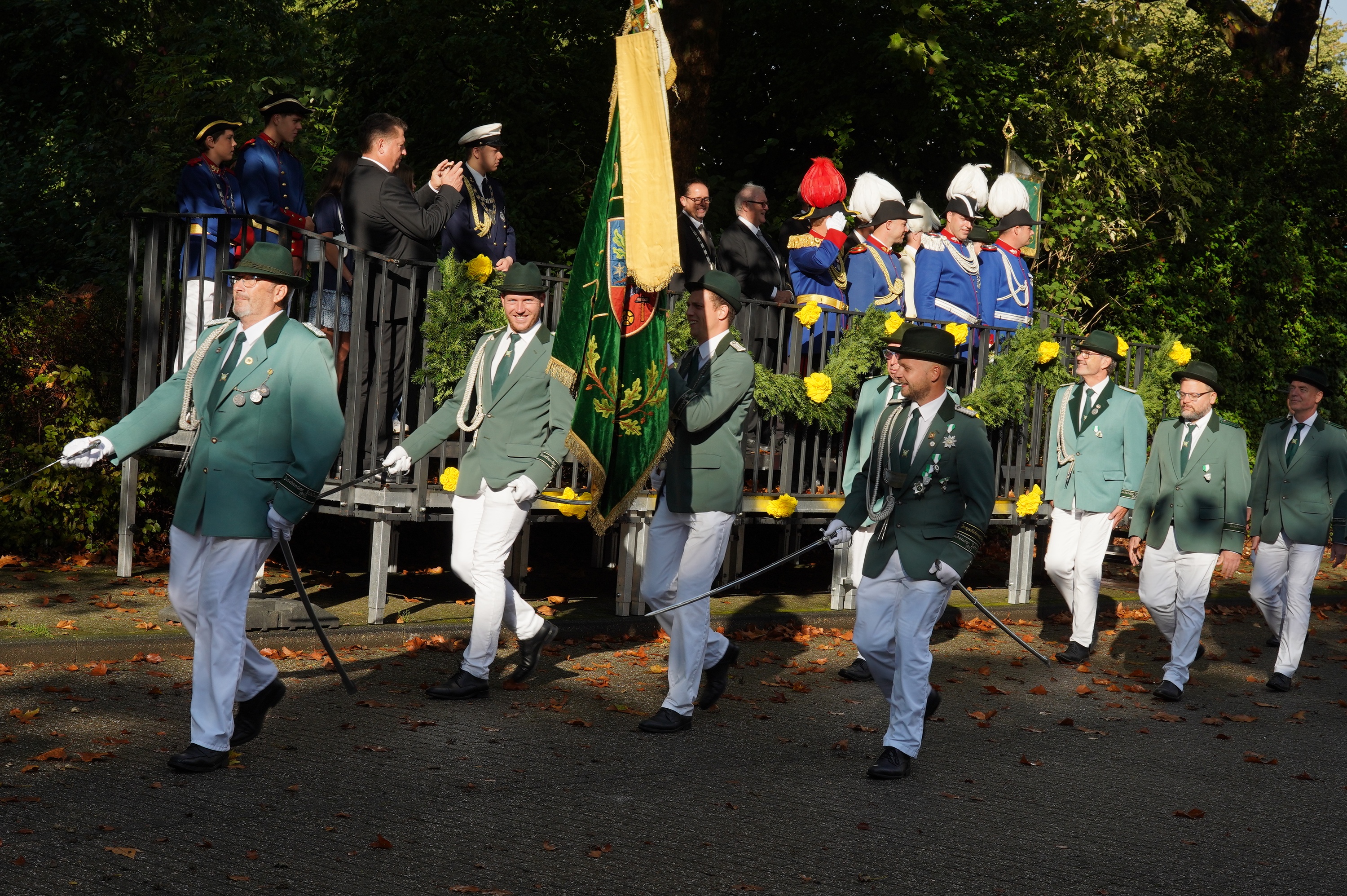 Wappen, Bühnenbild, Schützenbaum, Fahnen, Standarte