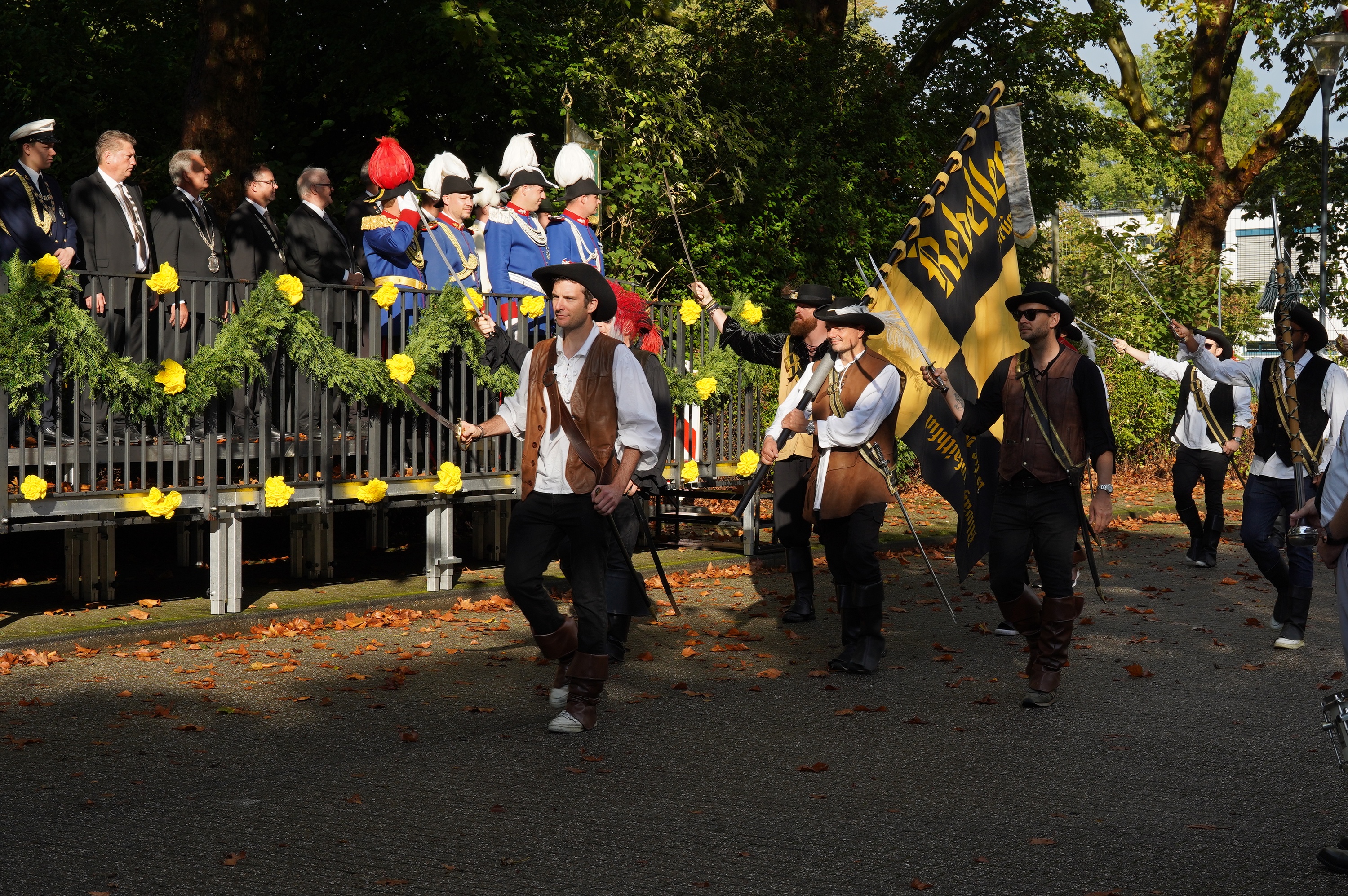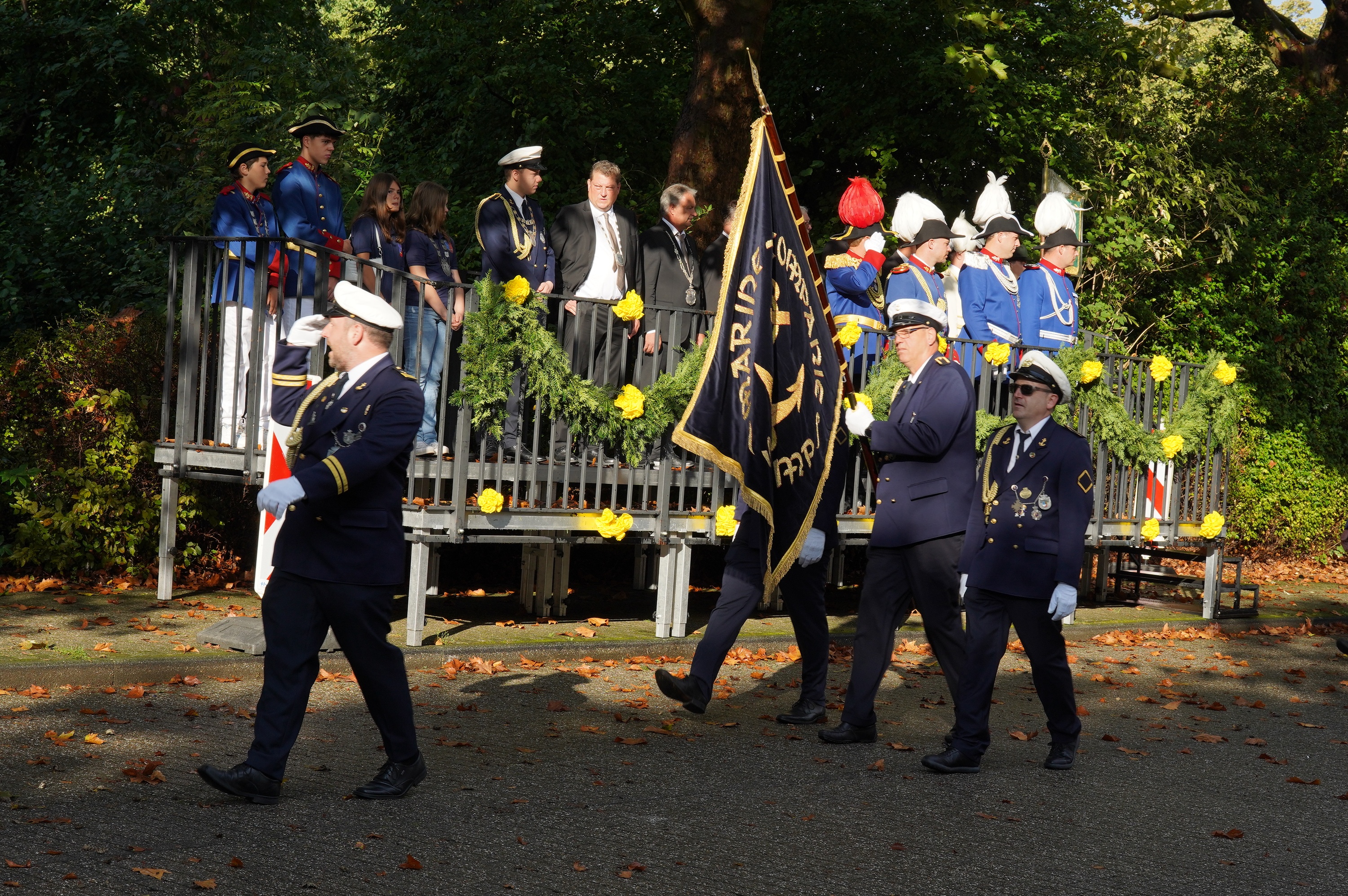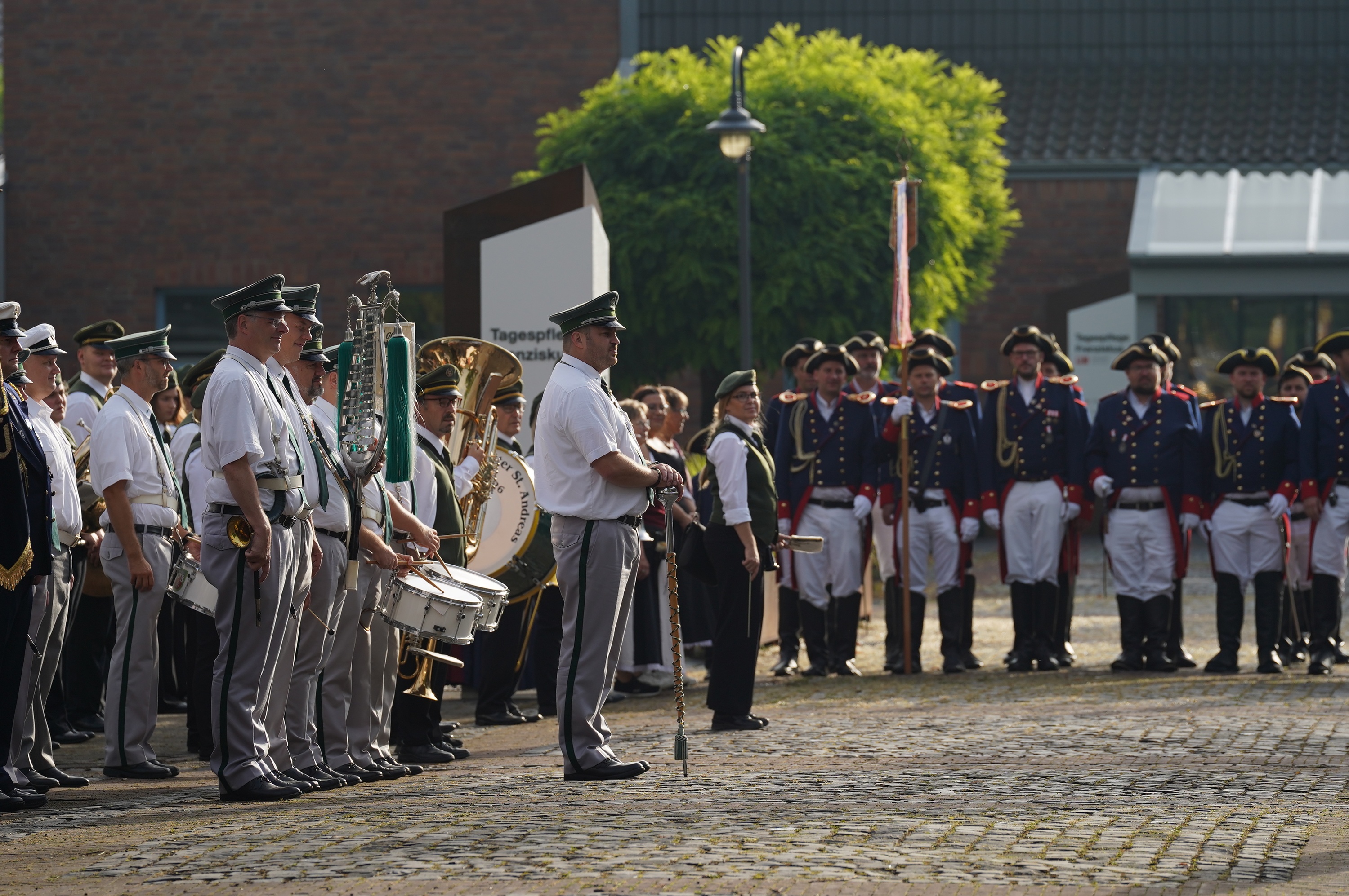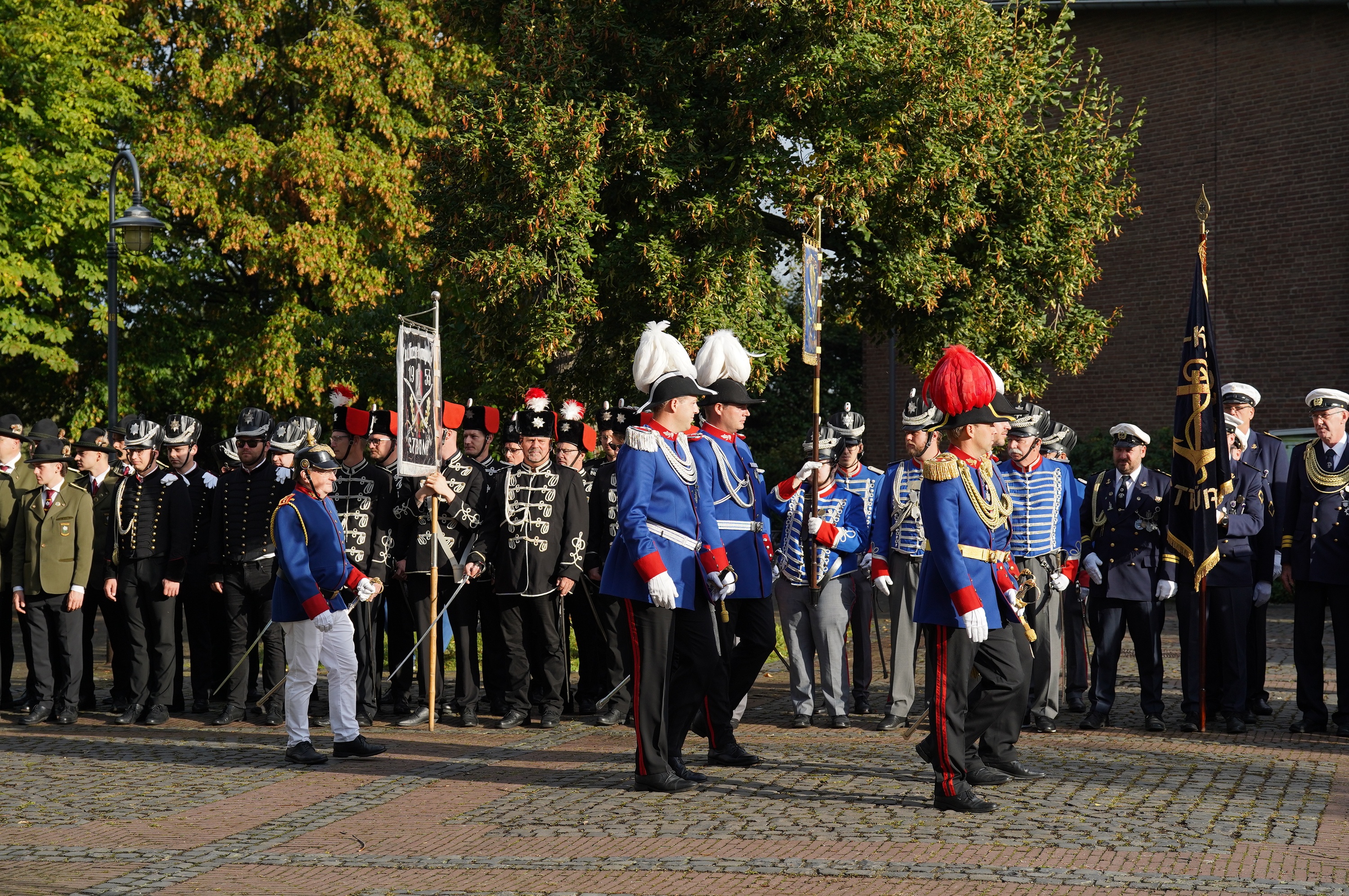Wappen, Bühnenbild, Schützenbaum, Fahnen, Standarte