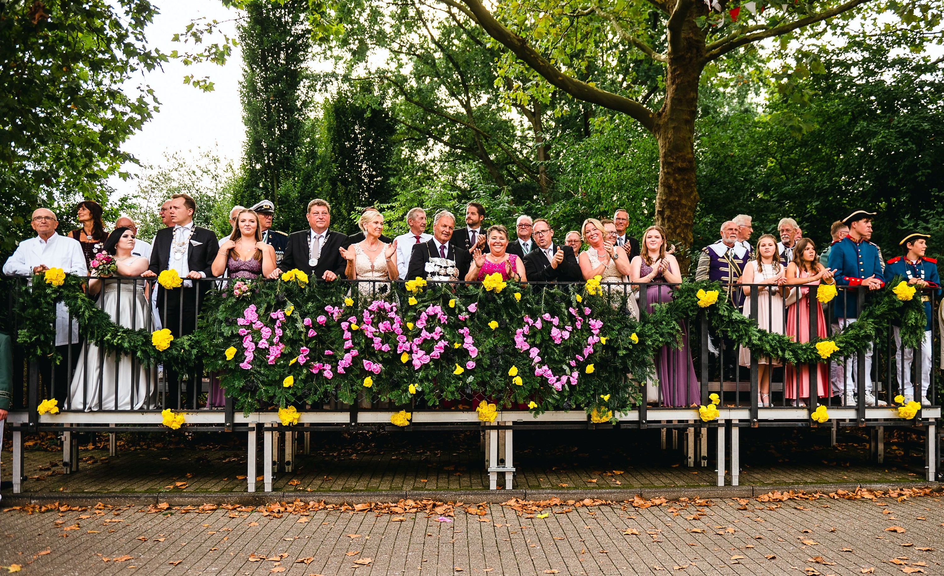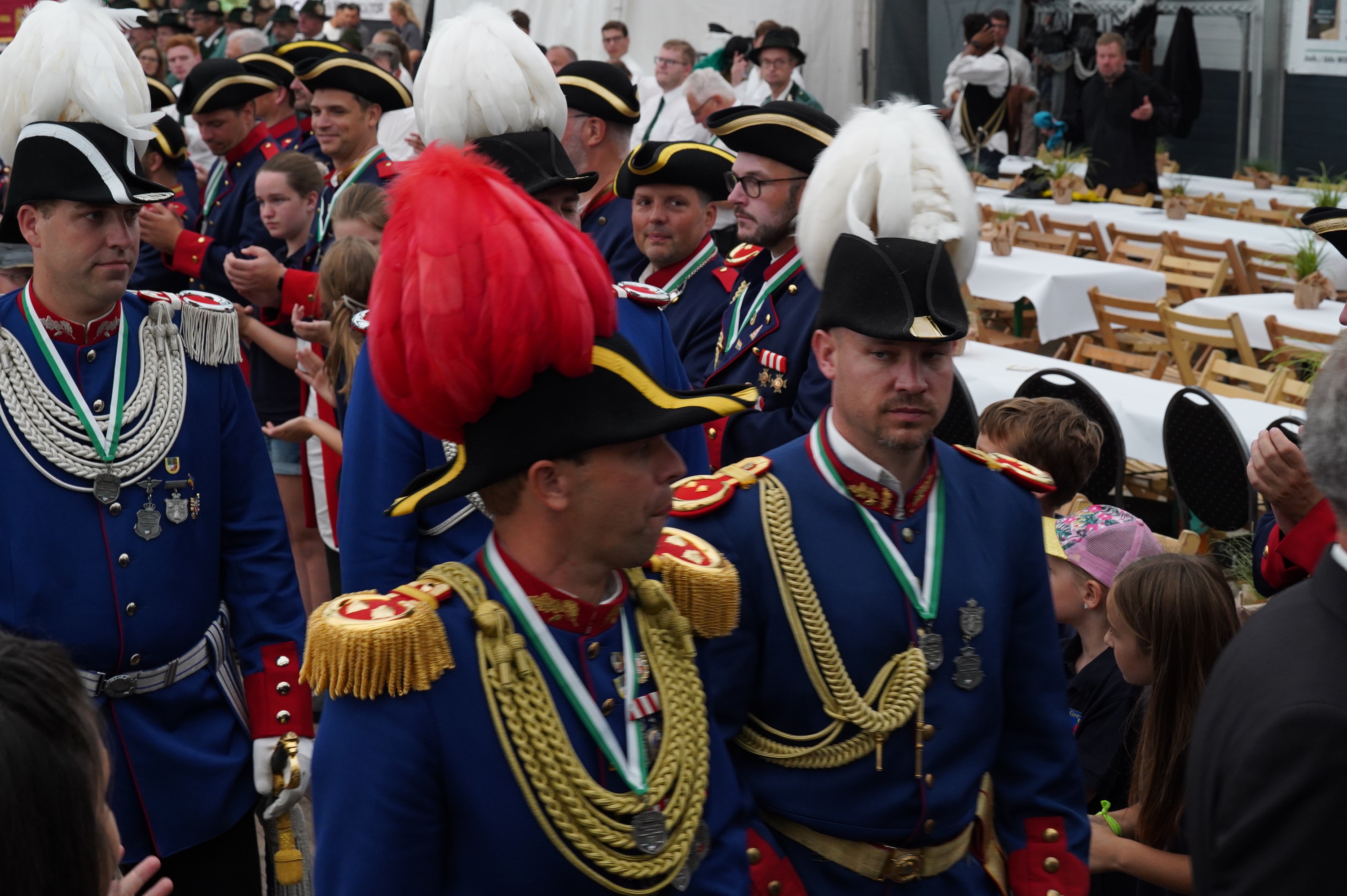 Wappen, Bühnenbild, Schützenbaum, Fahnen, Standarte