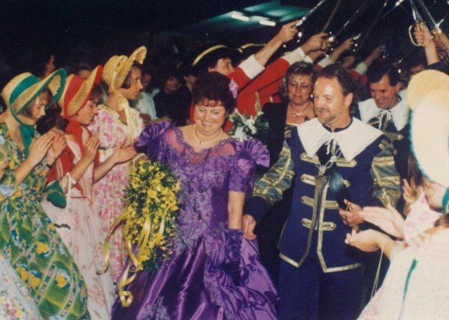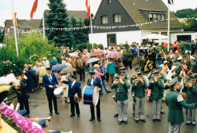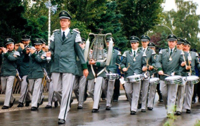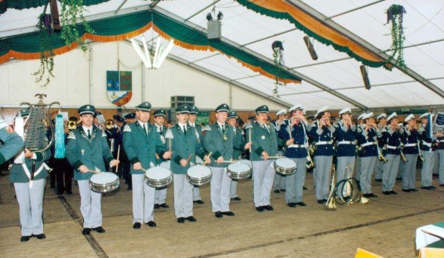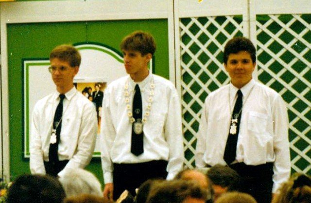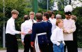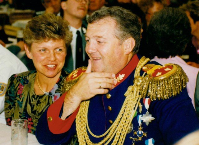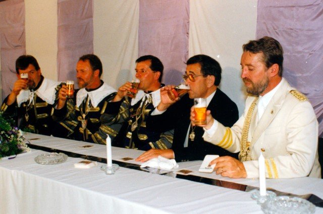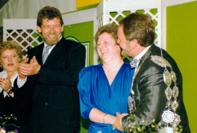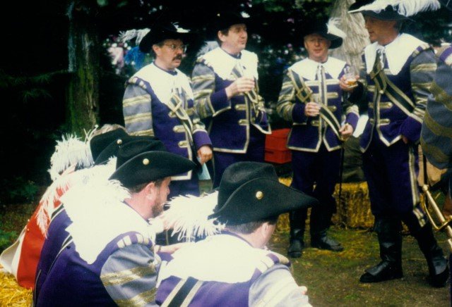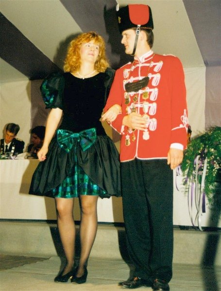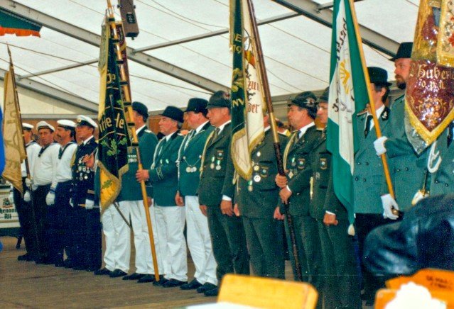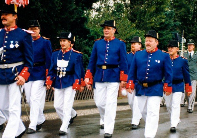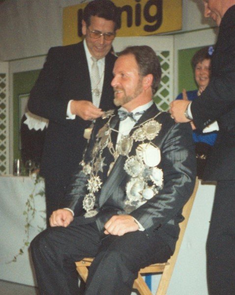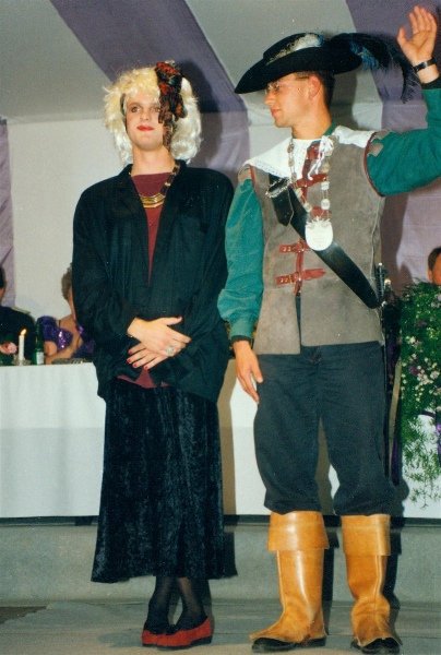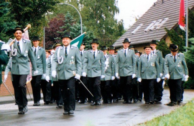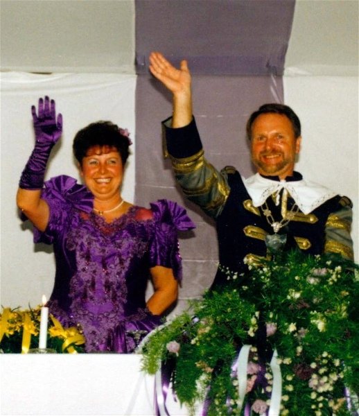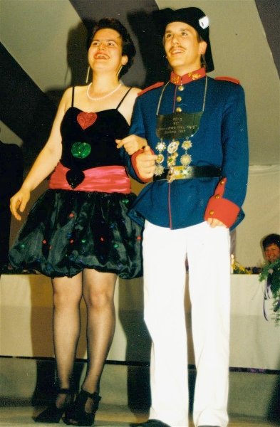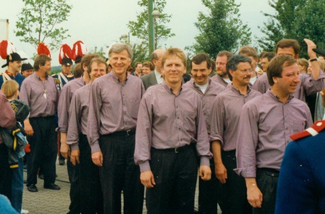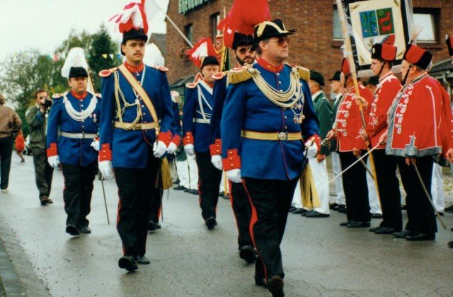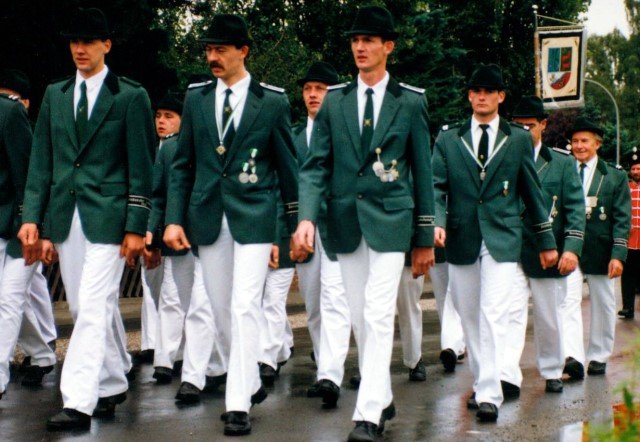 Königskompanie Wallensteiner Landsknechtevon links: Hans-Gerd Louis, Heinz Lonny, Hubert van Hees, Hauptmann Willi Mertens, Hans Baumeister, Minister Peter Mertens, Heinz Baumeister, König Franz-Gerd Arts, Roland Heise, Matthias Vieten, Minister Hans-Helmut Hüsges, Hans Faßbender, Theo Wellmann, Mundschenk Josef Arts