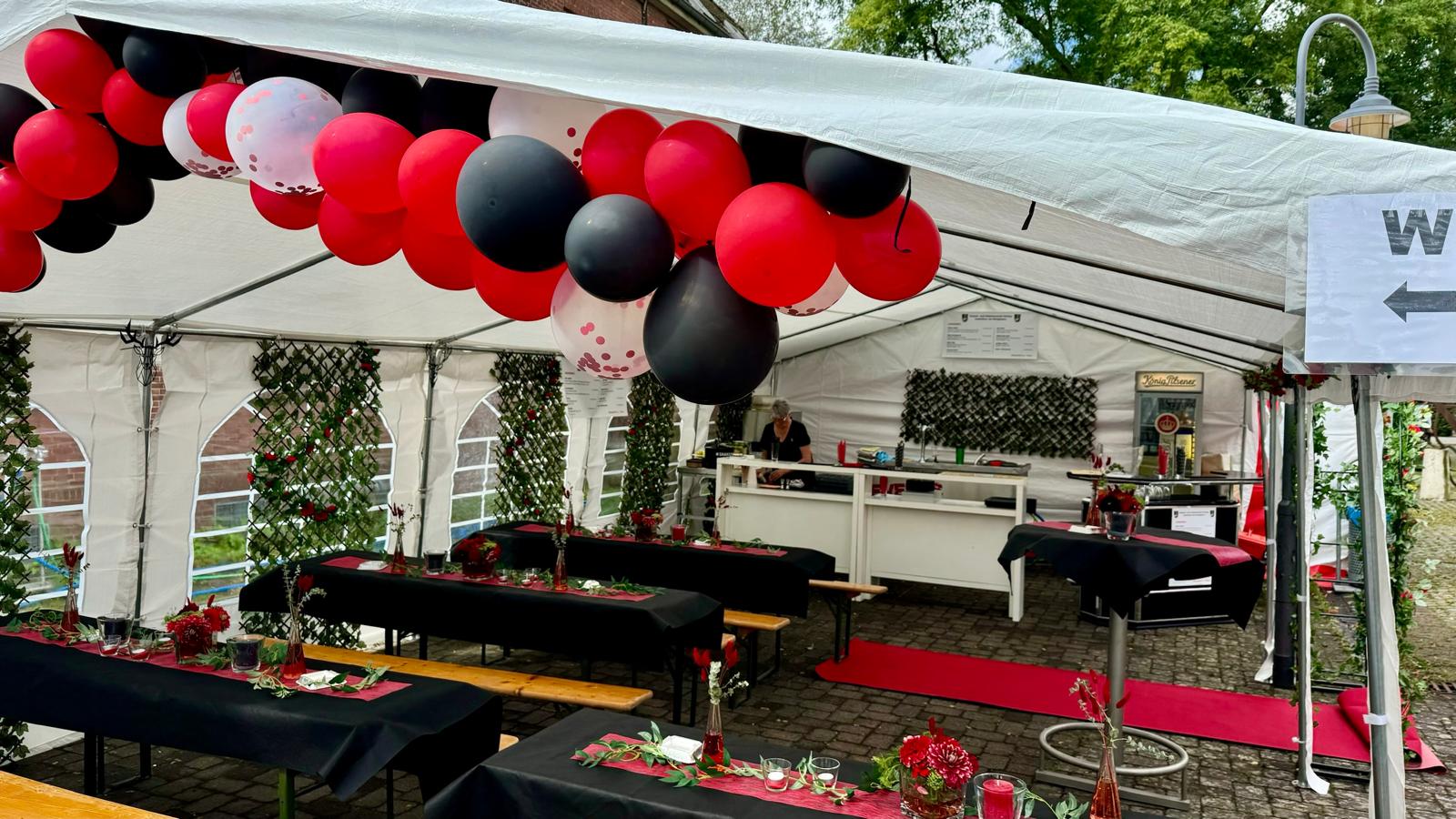 Wappen, Bühnenbild, Schützenbaum, Fahnen, Standarte