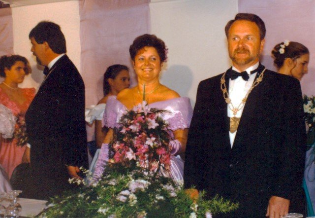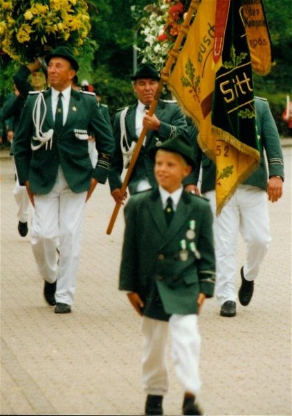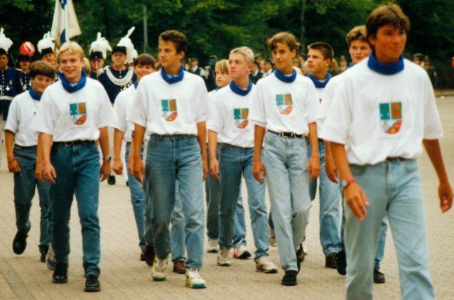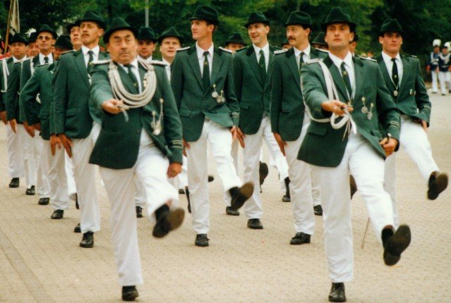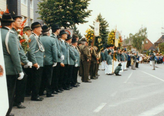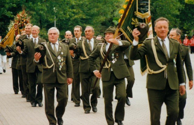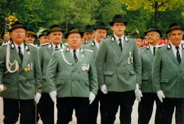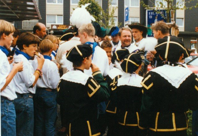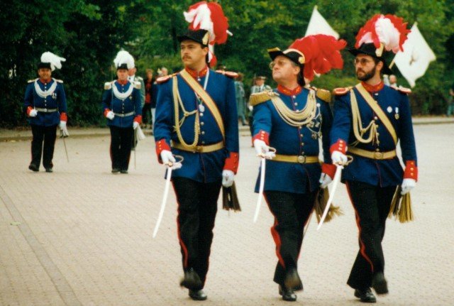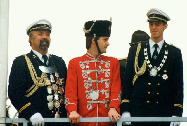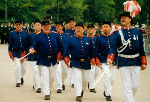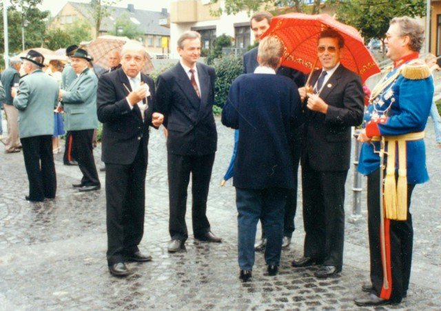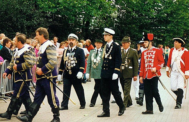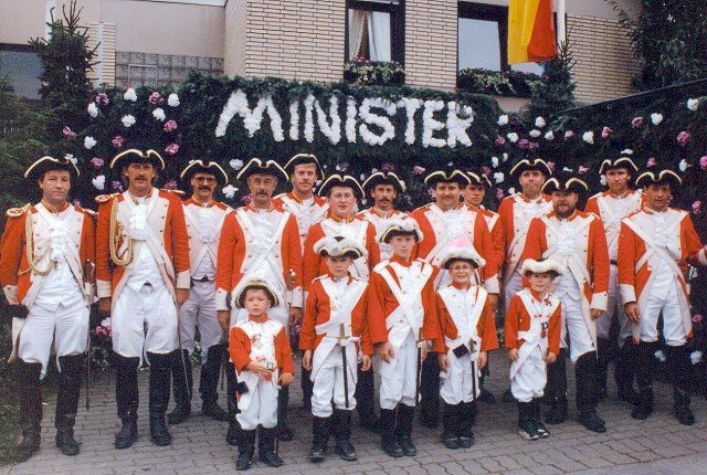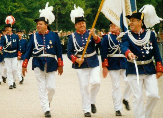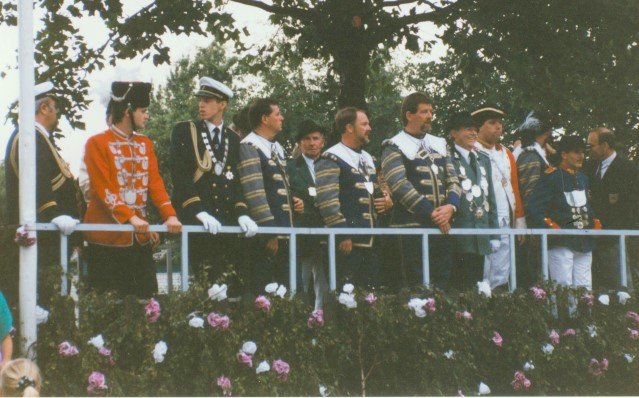 von links: Fahnenmajor Alfred Füssel, Adjutant Peter Paas, General Karl-Heinz Rütten, Adjutant Christof Cames, Major Franz Nelsen, Adjutant Karl-Wilhelm Steinfort, Hauptmann Hans-Josef Raukes, Spieß Georg Ziebarth, Mundschenk Josef Arts