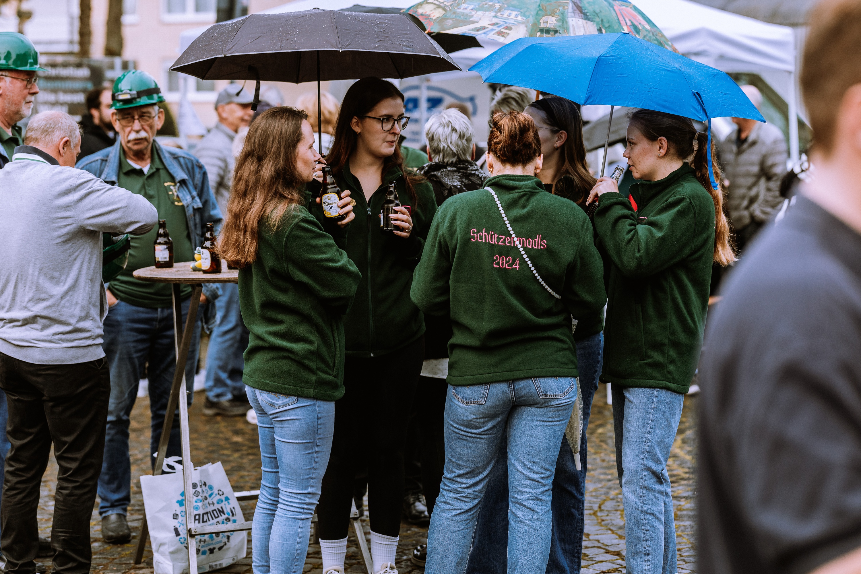 Wappen, Bühnenbild, Schützenbaum, Fahnen, Standarte