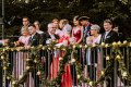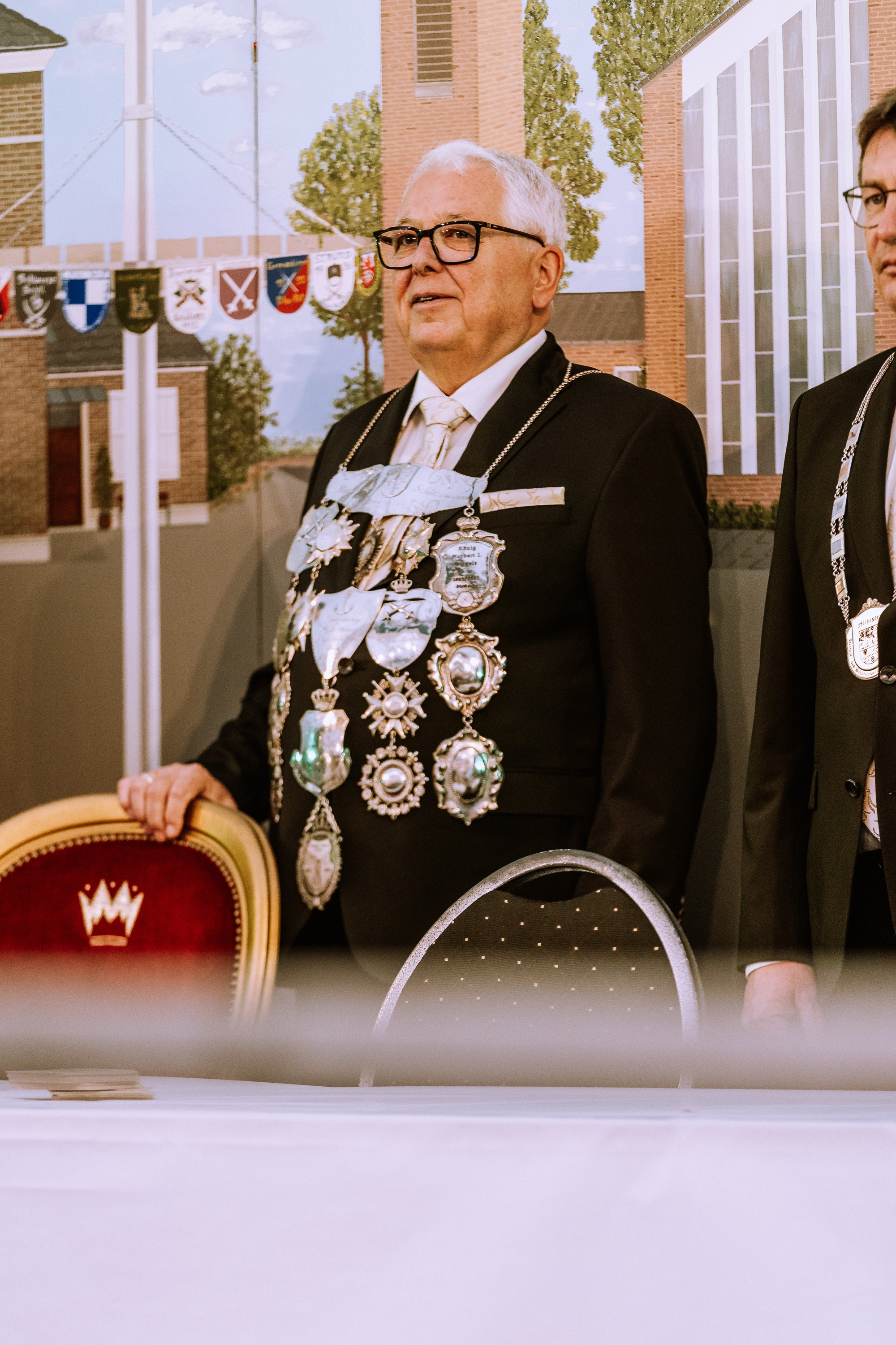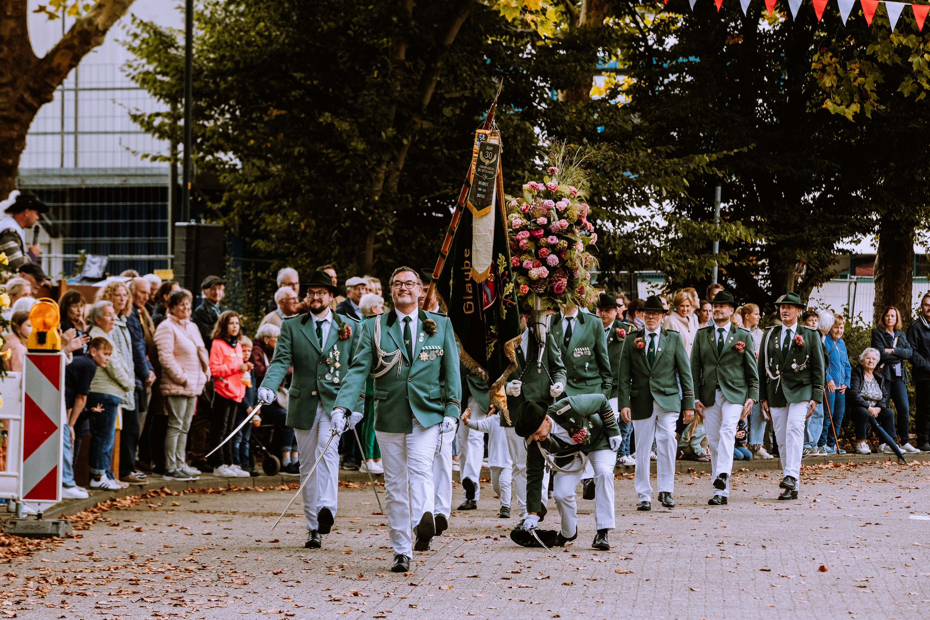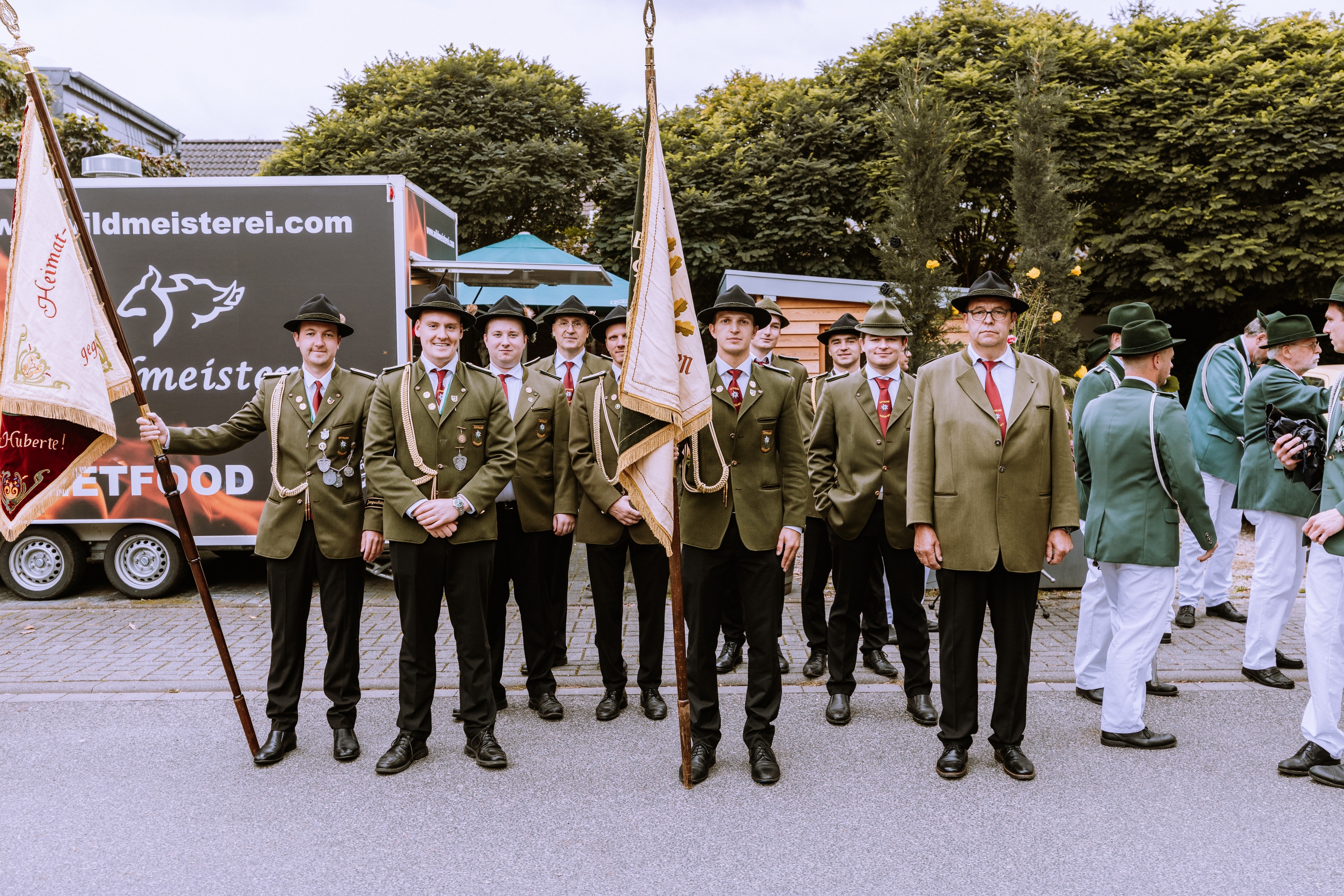 Wappen, Bühnenbild, Schützenbaum, Fahnen, Standarte