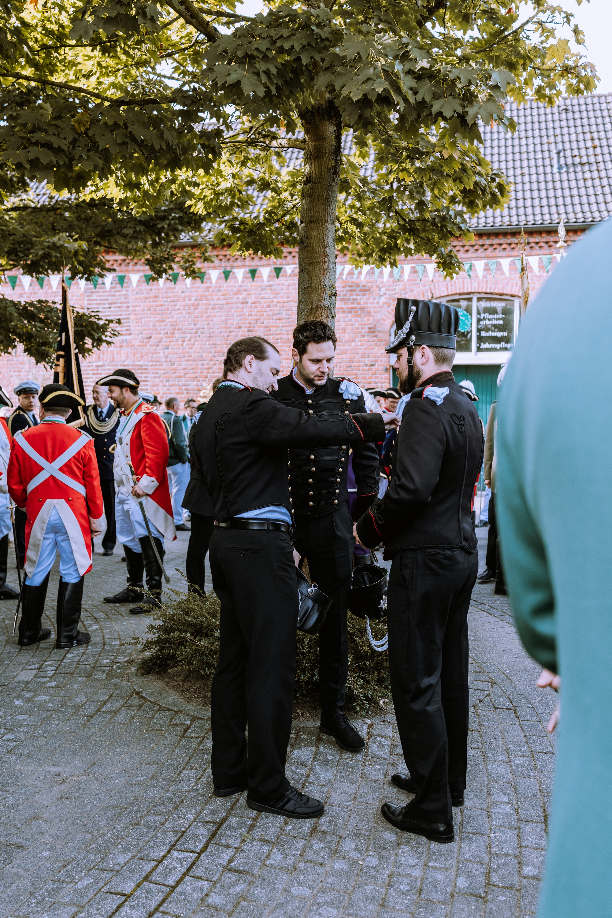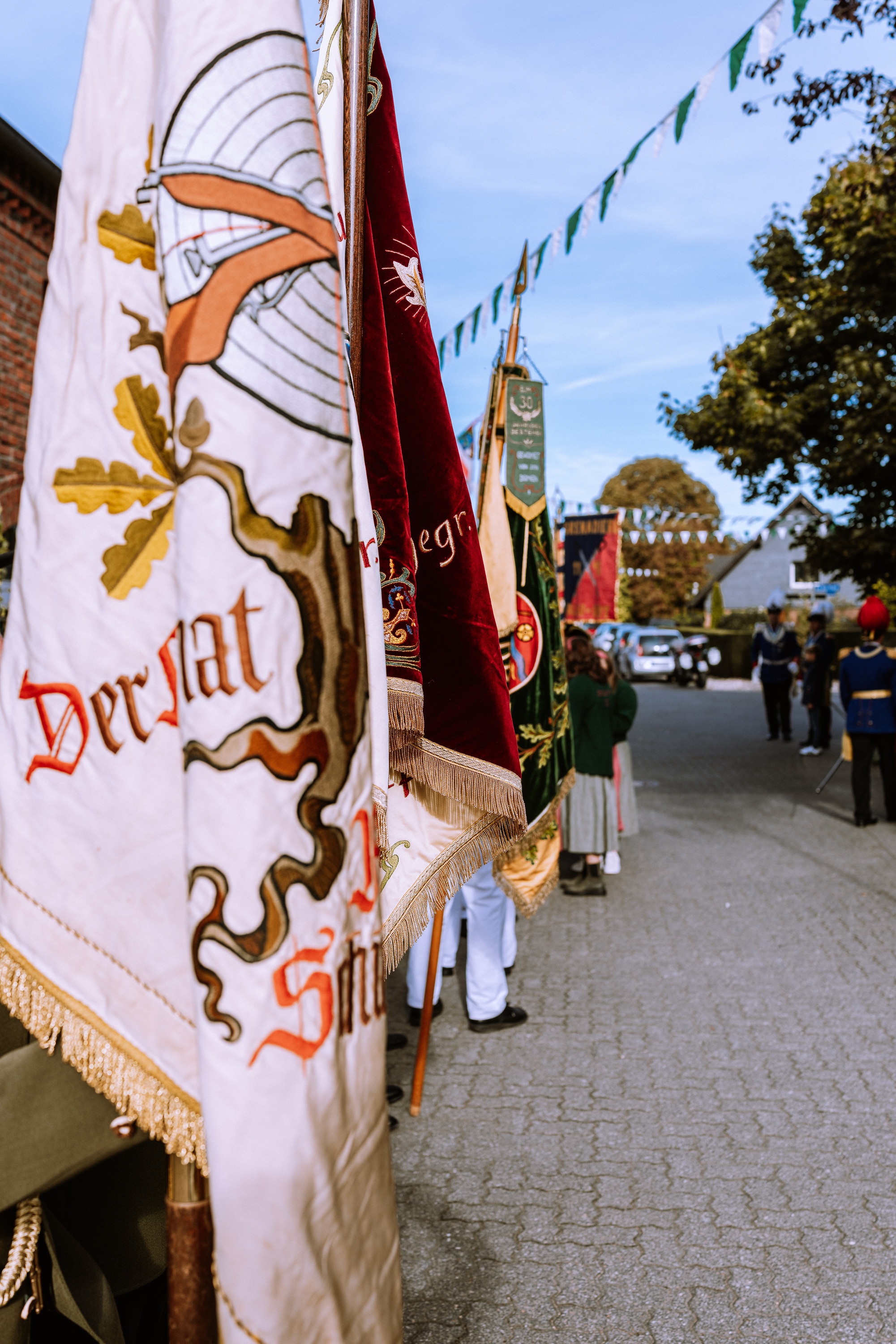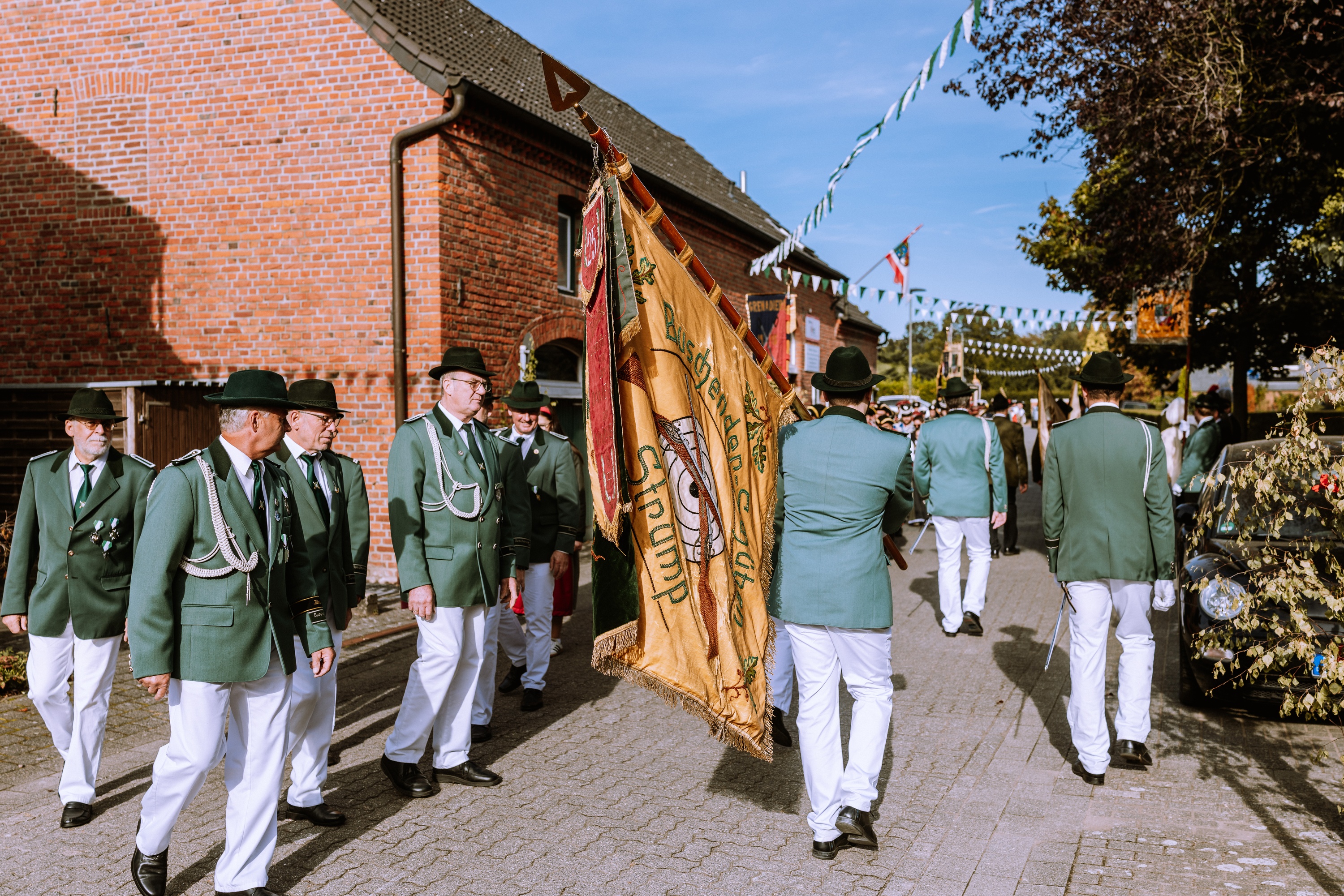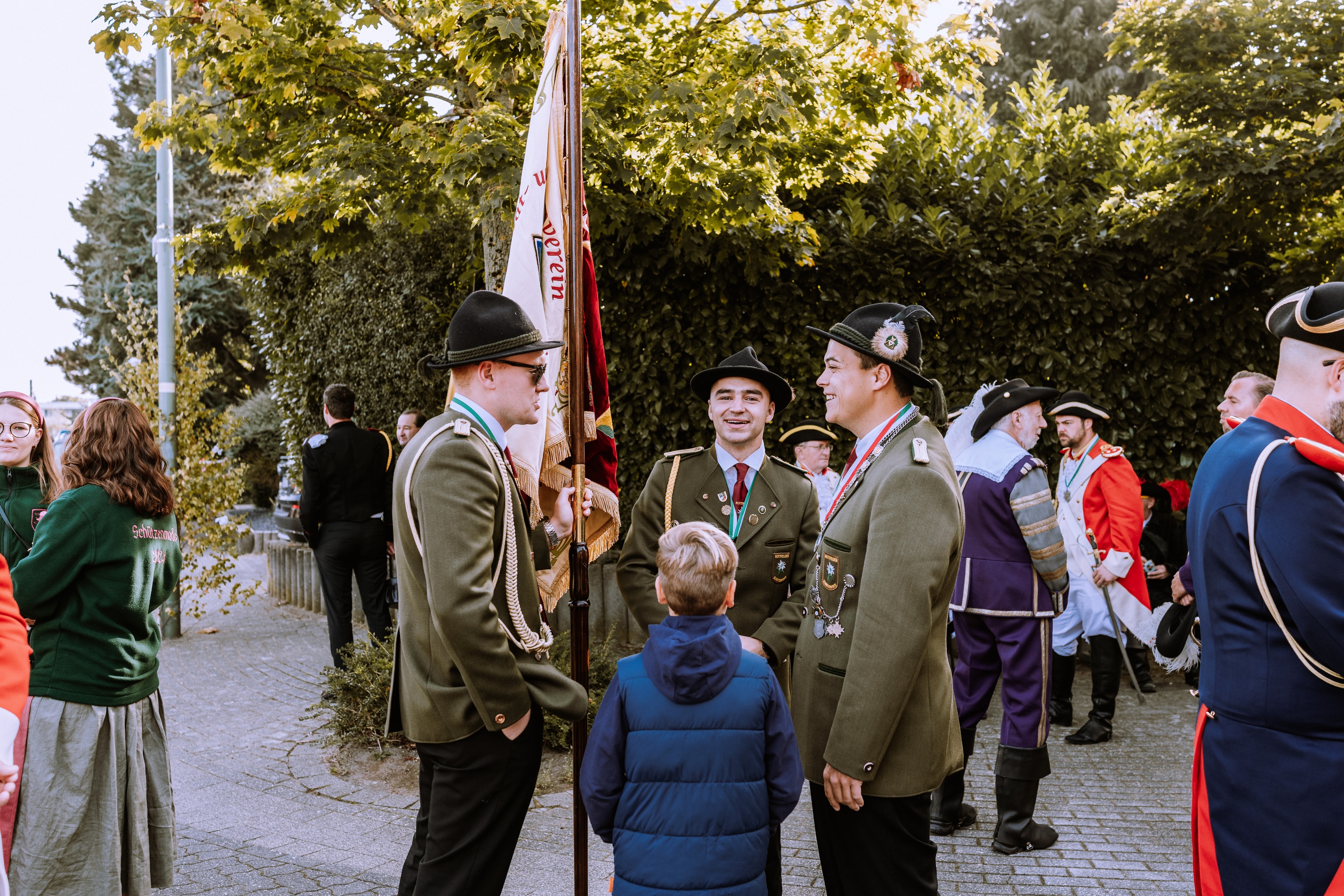 Wappen, Bühnenbild, Schützenbaum, Fahnen, Standarte