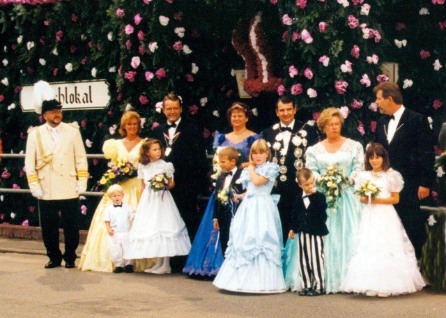 vorne: Ministerpaar Josef und Marlene Arts mit Linda Knedel und Maximilian Crieedahinter von rechts die Hofdamen: Stefanie Wankum, Denise Niemeyer, Claudia Deußen und Melanie Schlubat