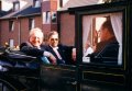 nach dem Ausstieg aus den Kutschenvon links: Ute Hüsges, Marlene Arts, Minister Josef Arts, König Matthias Vieten, Königin Christine Vieten; davor: Sarah Mertens