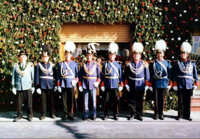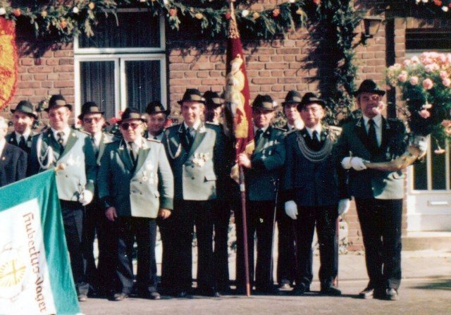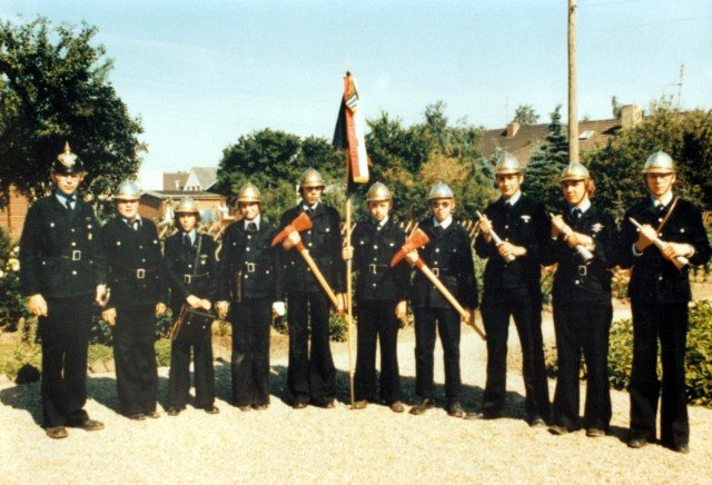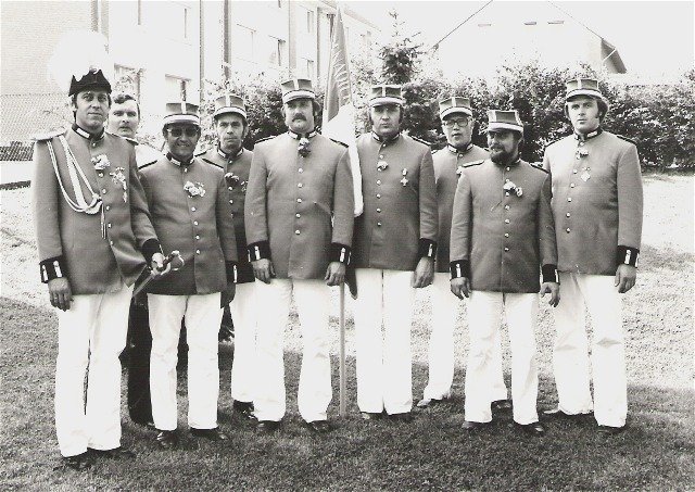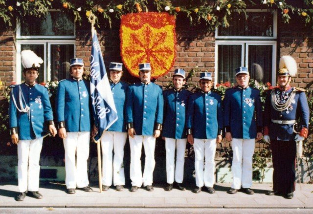 Wallensteiner Landsknechtevon links oben: Wolfgang Glaser, Franz-Gerd Arts, Johannes Baumeister, Josef Arts, Theo Wellmann Hans-Helmut Hüsges, Herbert Beesen, Peter Mertens, Manfred Beltermann, von links unten: Heinz Lonny, Hubert van Hees, Wilhelm Mertens