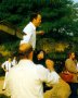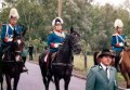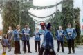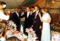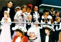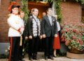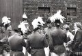 Oberst Johannes Theisen bei der Meldung an den neuen König Hugo II.von links: Mundschenk Karl Davids, Schießmeister und (noch) Minister Hans Hörschgens, Alfred Schreiber, König Hugo Deußen, Präsident Ludwig Bommers, Minister Heinrich Geisler