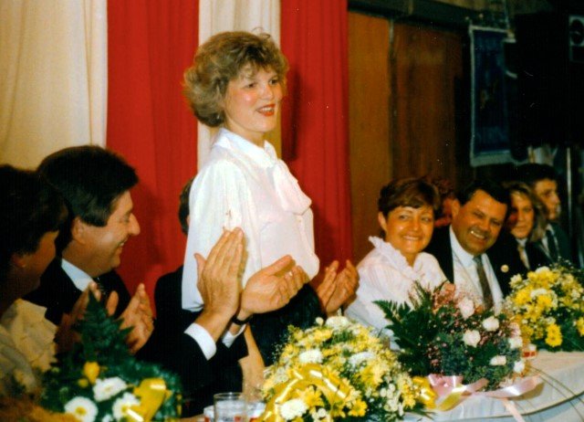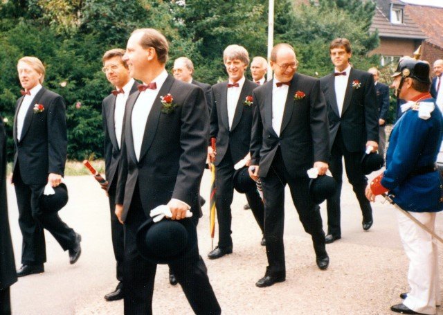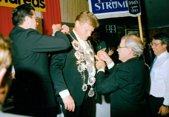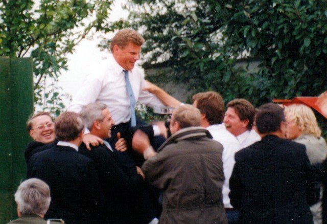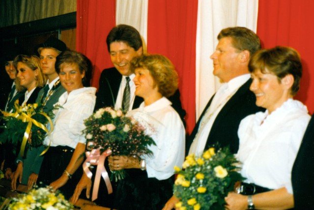 unmittelbar nach dem entscheidendem Vogelschuss am 11. Sept. 1988ganz links: Präsident Alfons Schmitt freut sich