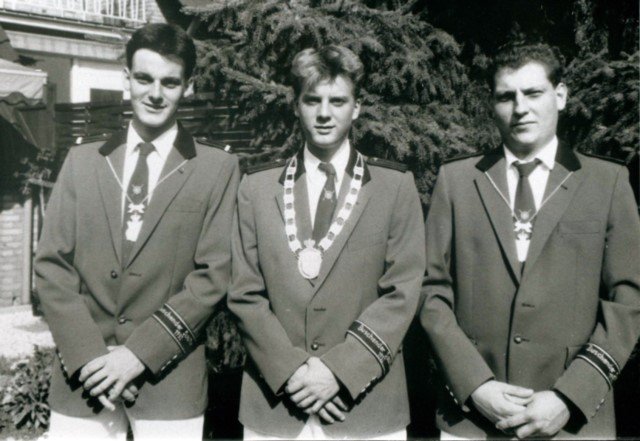 Jungschützenkönig Olliver Giesler (Mitte) mit seinen beiden Ministern Rainer Kögler (links) und Dirk Giesler