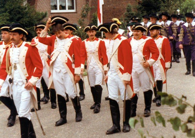 angeführt von ihrem Chef Peter Wellemsen; dahinter links: Kompaniekönig Hans Rustemeier