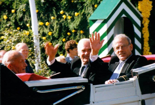 begleitet von seinen Ministern Robert Paas (links) und Werner Spennes; davor: Mundschenk Karl Davids