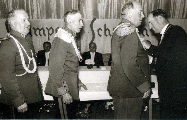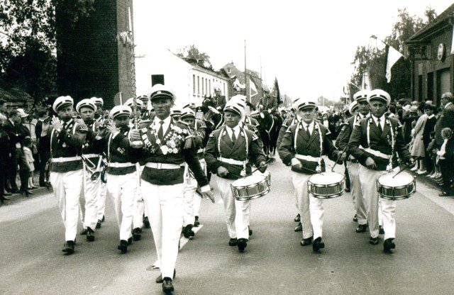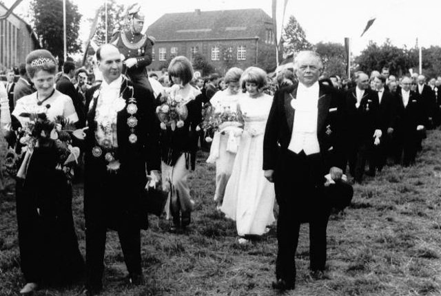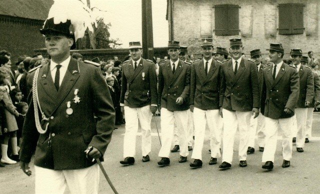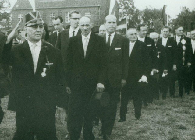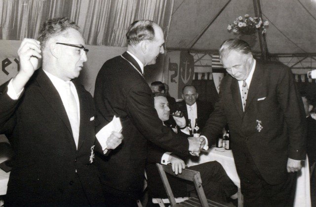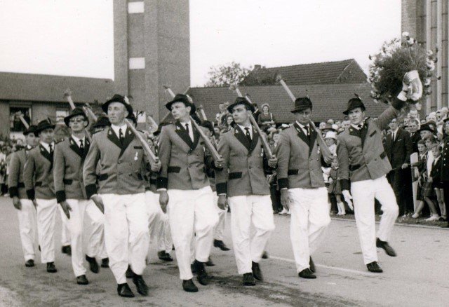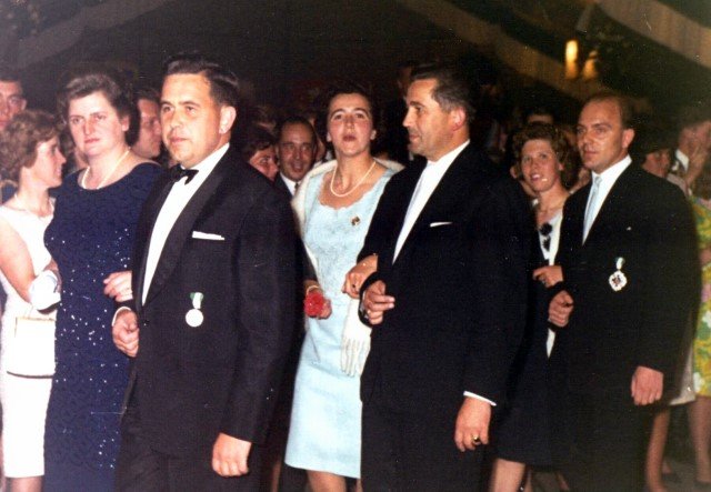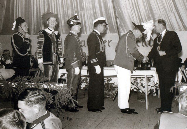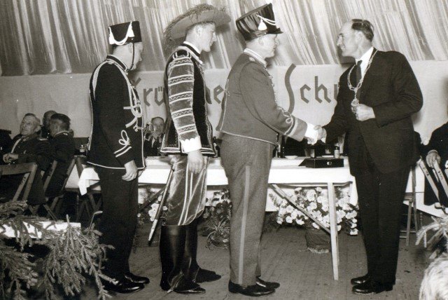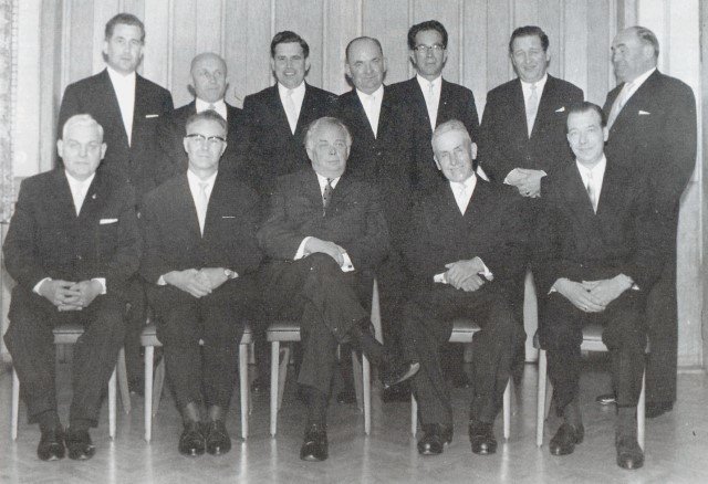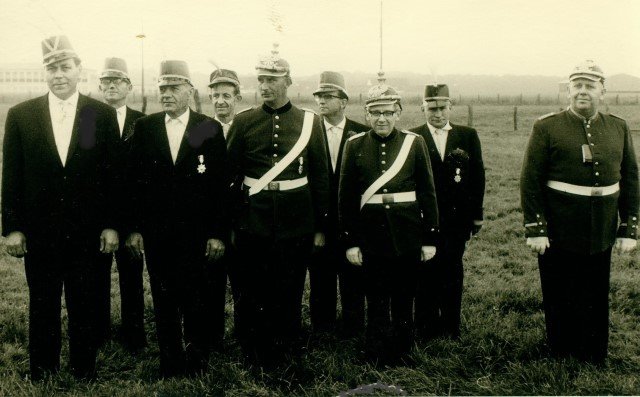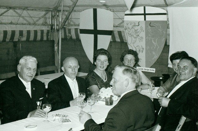 Vorstand im Jubiläumsjahr 1965von links stehend: Georg Viermann, Johannes Raukes, Ludwig Bommers, Hugo Deußen, Paul Wellemsen, Heinz Pöllen, Josef Spennes