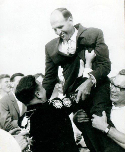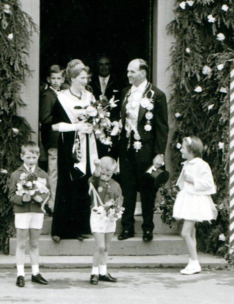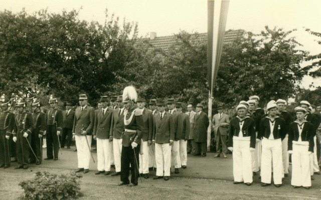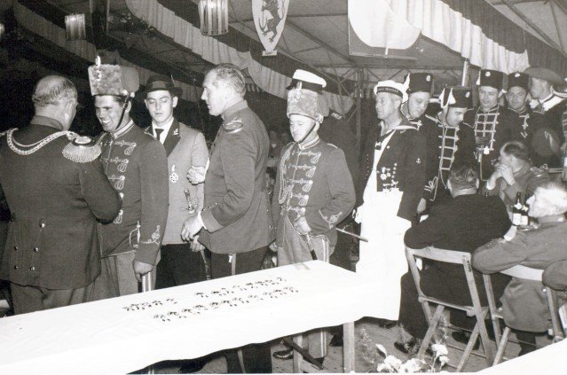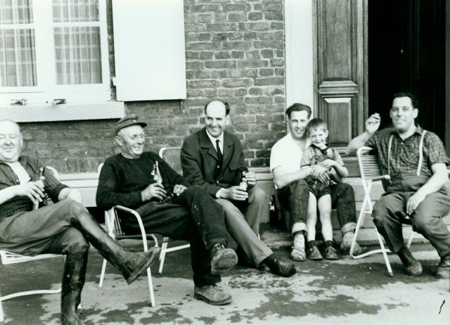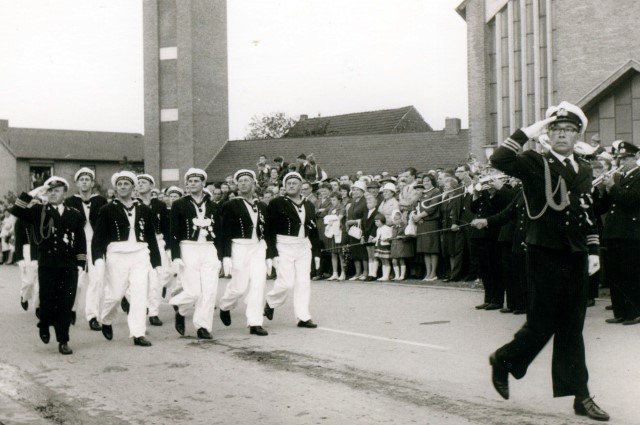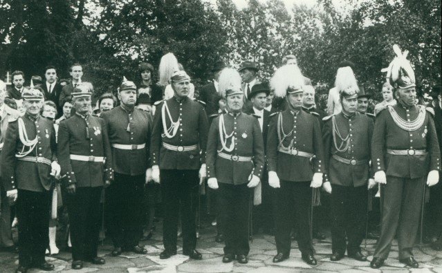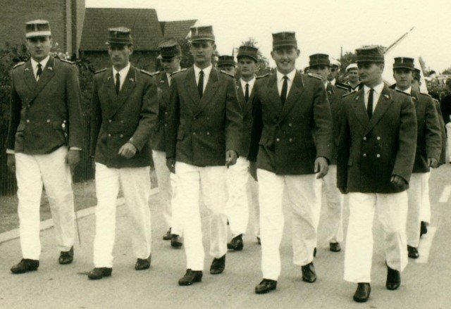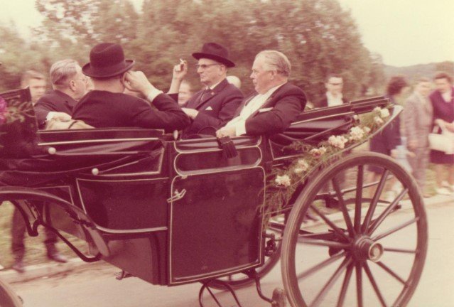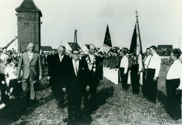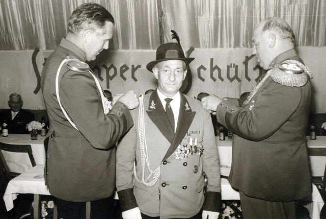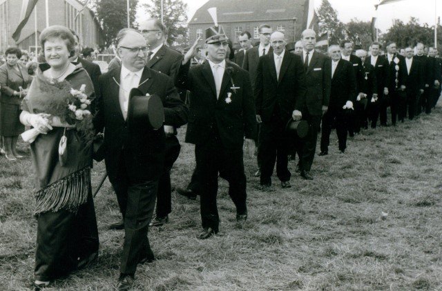 Vorstand im Jubiläumsjahr 1965von links stehend: Georg Viermann, Johannes Raukes, Ludwig Bommers, Hugo Deußen, Paul Wellemsen, Heinz Pöllen, Josef Spennes