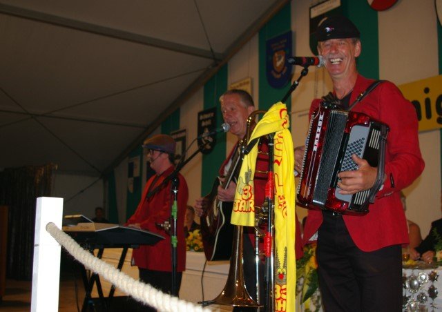 die "Ratinger" spielen auf; mit dabei: seine Söhne und Minister Marcel und Bastian (2. und 3. von rechts)