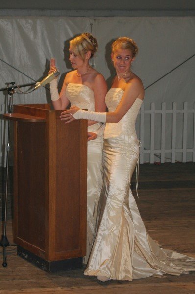 beim KönigsabschiedsabendHofdamen Lisa Marie Birgels und Christine Webers (r)