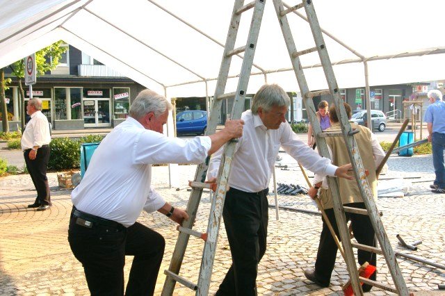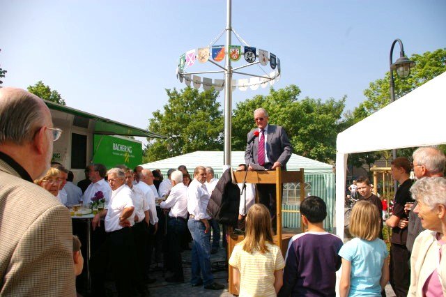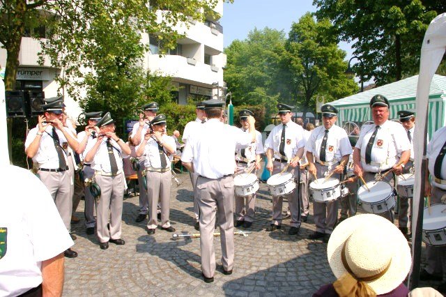 Wappen, Bühnenbild, Schützenbaum, Fahnen, Standarte