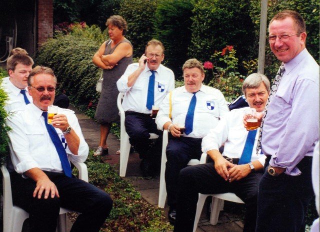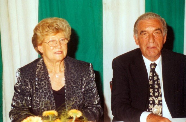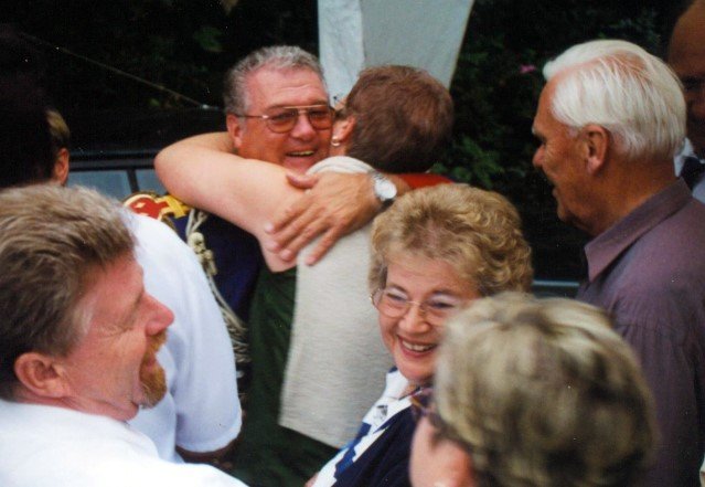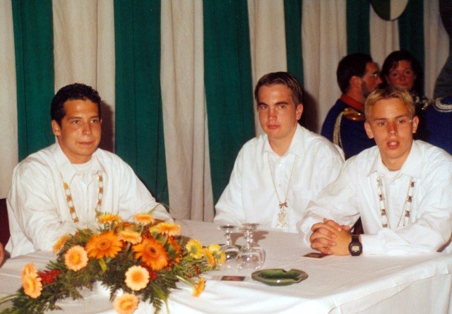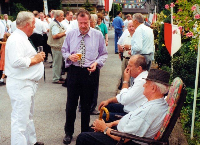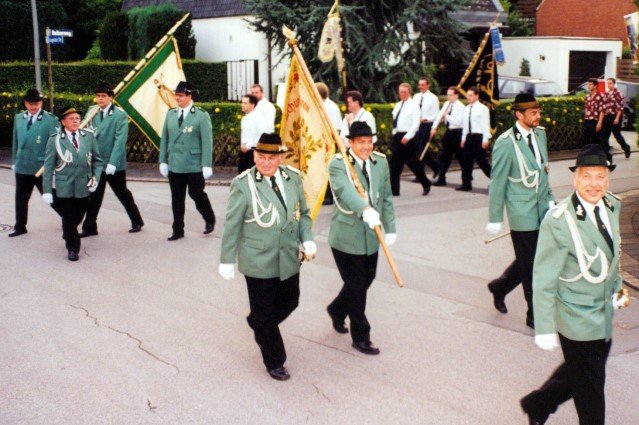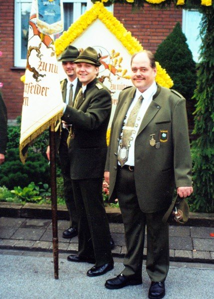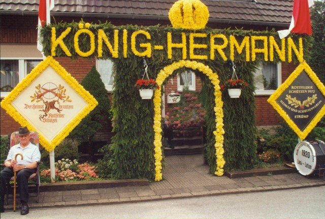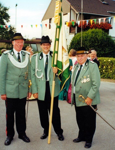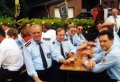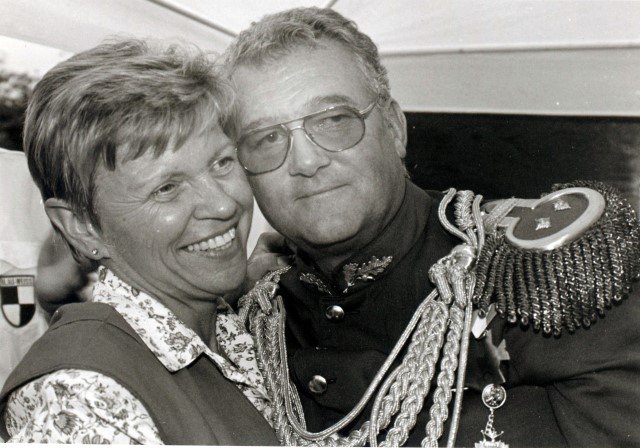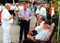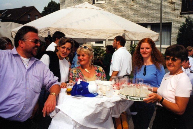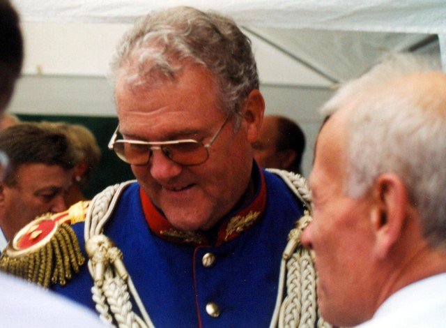 Ehrengäste auf der Bühne im Festzeltim Vordergrund von rechts: MdL Lutz Lienenkämper, Pfarrerin Ute Saß, Pfarrer Dr. Gerhard Saß, dahinter verdeckt Bürgermeister Dieter Spindler, Frau Doris Spindler, Ex-König Hermann Polachowski mit Ehefrau Katharina