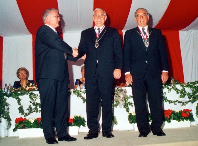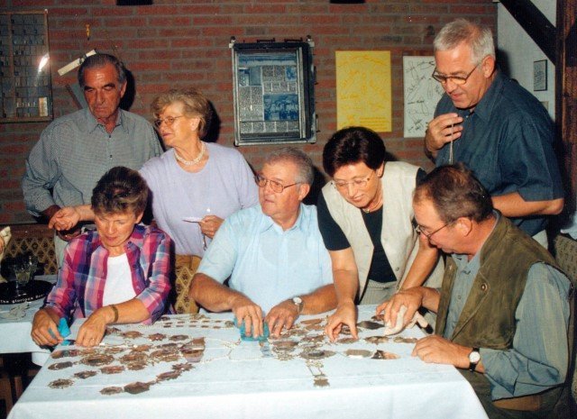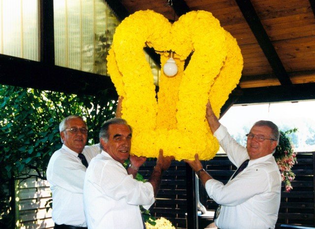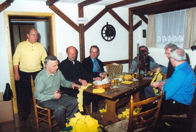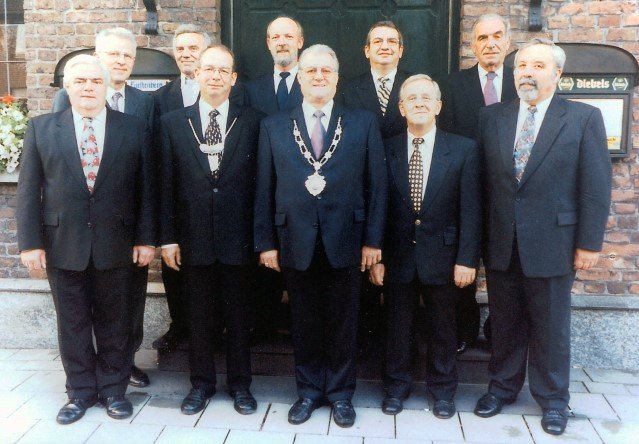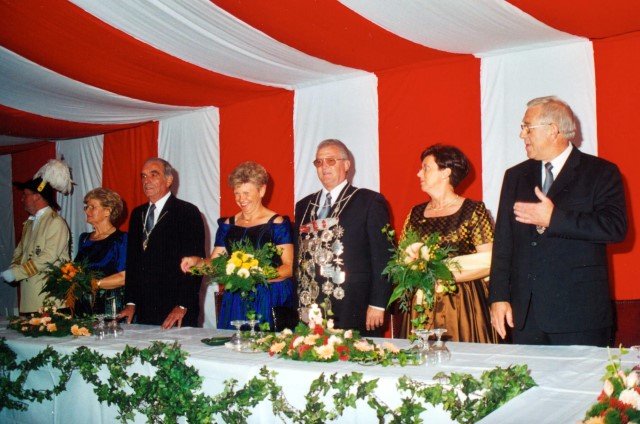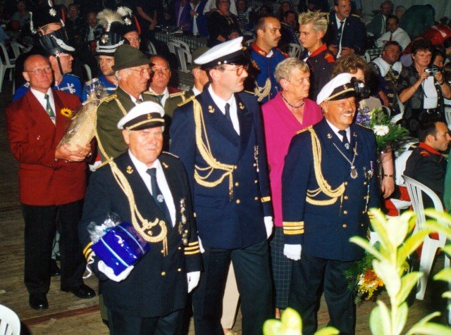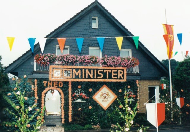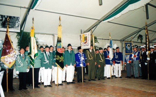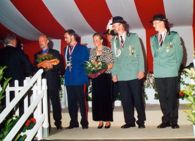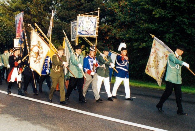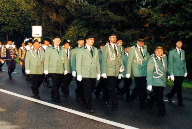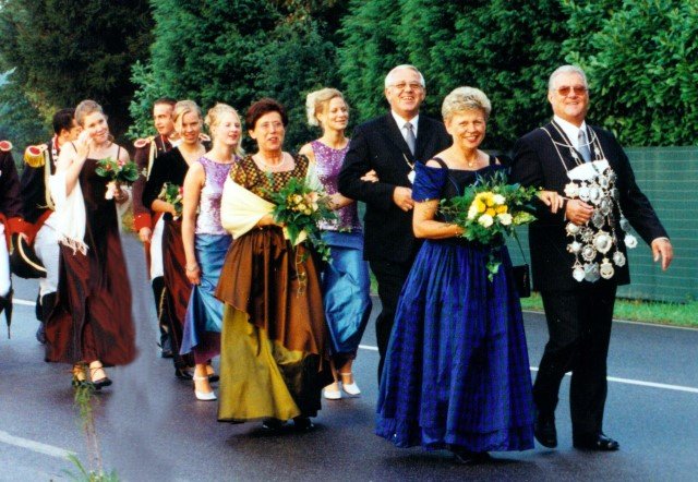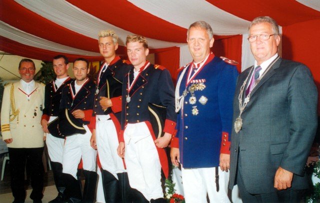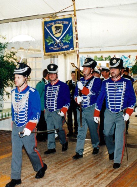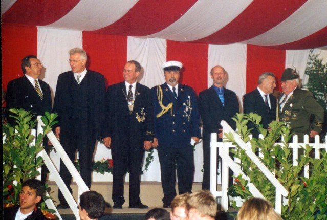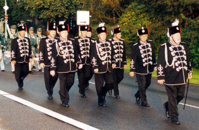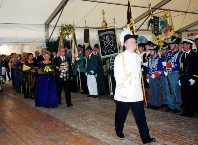 Vorstand des Heimat- und Schützenverein Strümp 1865 e.V.von links: Musikwart Hermann Polachowski, Geschäftsführer Heinz Baumeister, Kassierer Bernhard Fucken, Präsident Hugo Deußen, Zeugwart Alfred Füssel, Schützenkönig Karl-Heinz Rütten (gleichzeitig General des Regimentes), 2. Vorsitzender Matthias Vieten, Pressewart Hans-Otto Ziebarth, 3. Vorsitzender Theo Langels, Archivar Heinz Radmacher