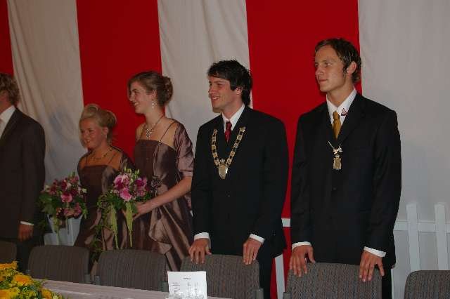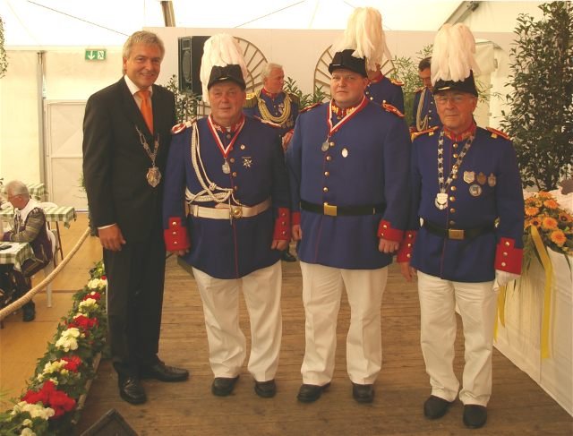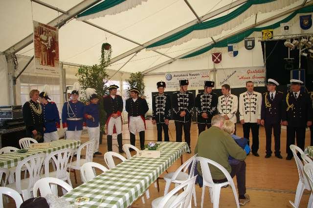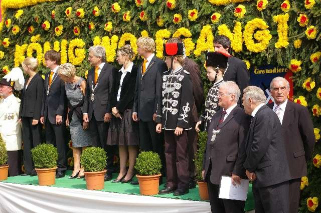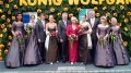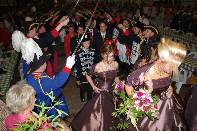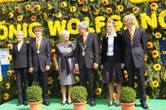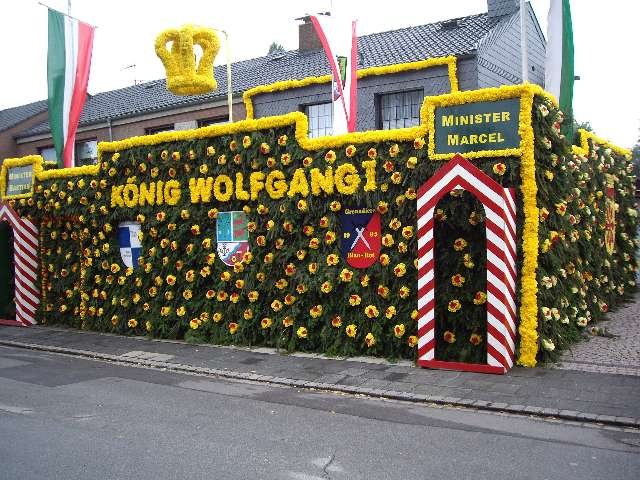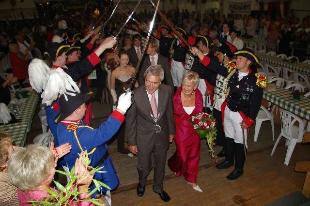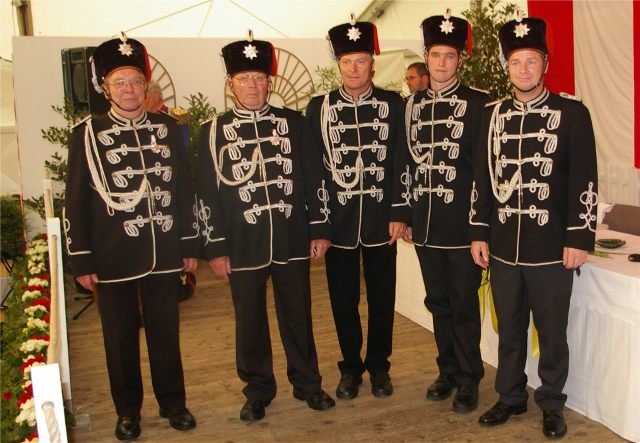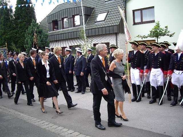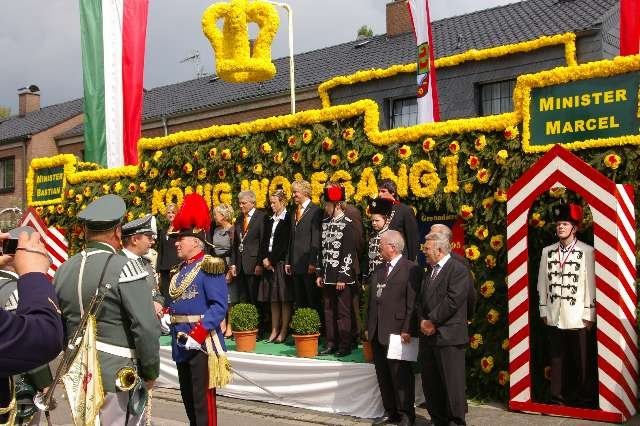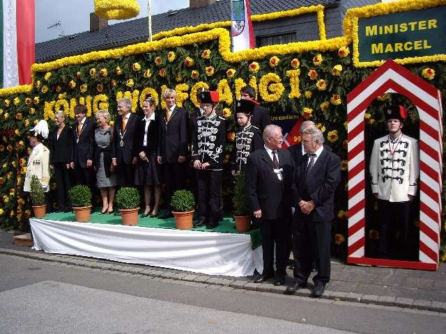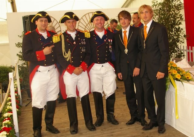 König Wolfgang I. mit seinem Hofstaatvon links: Hofdamen Vivien Paas und Christina Webers, Ministerpaar Bastian Möller und Rebekka Francke, Königspaar Wolfgang und Susanne Möller, Ministerpaar Daniela Triller und Marcel Möller, Hofdamen Marisa Niemeyer und Lisa Marie Birgels