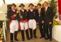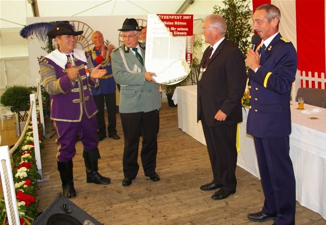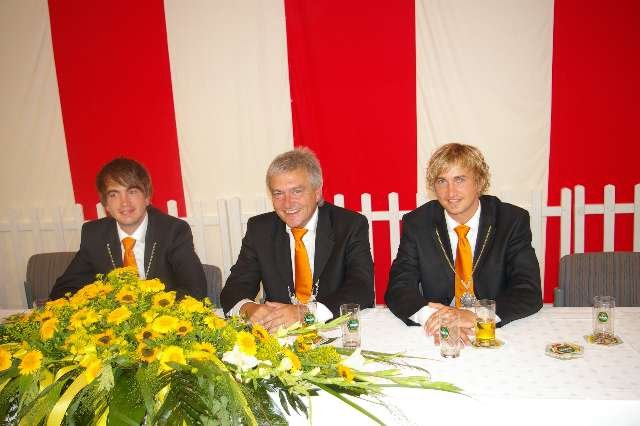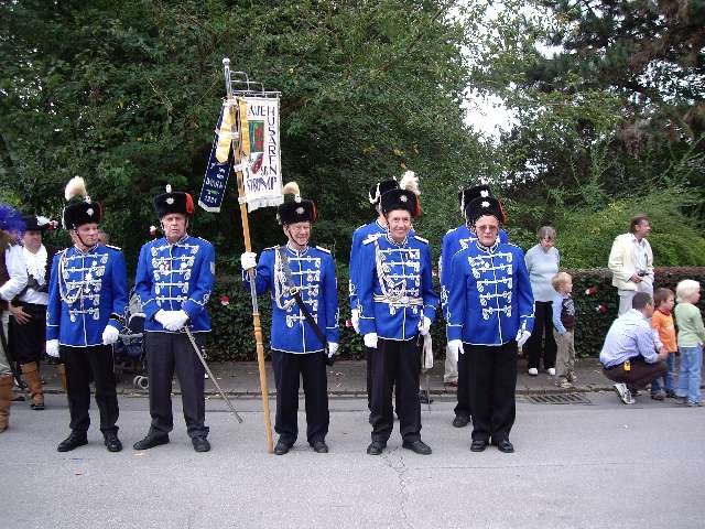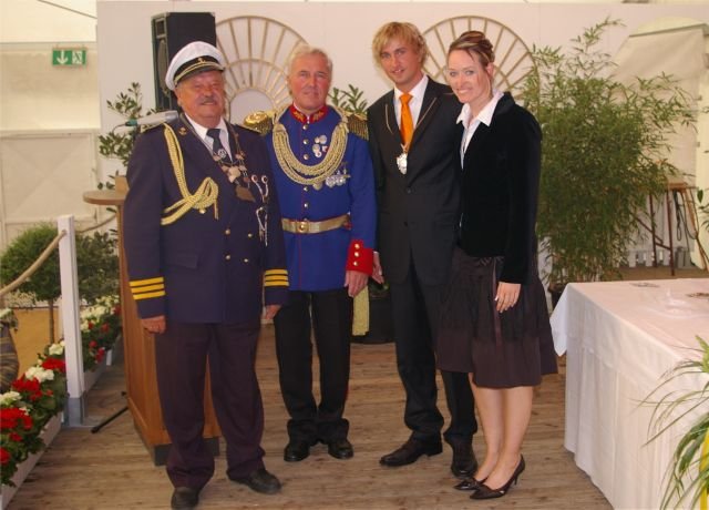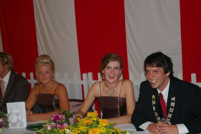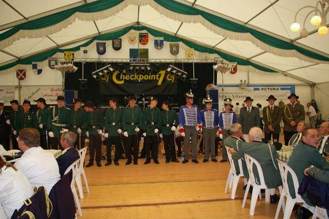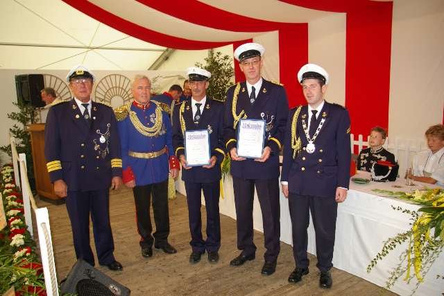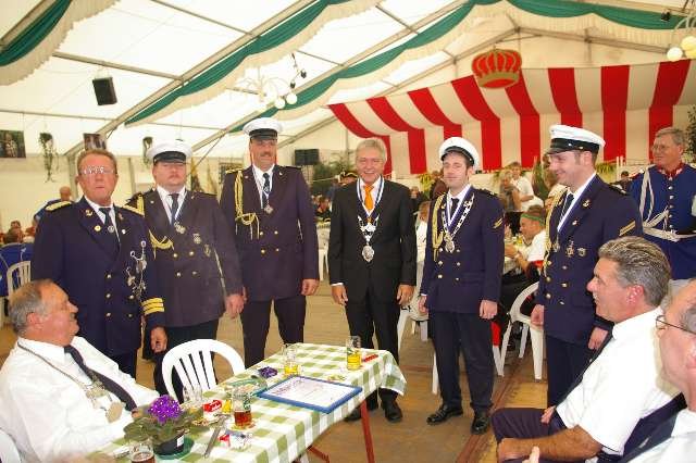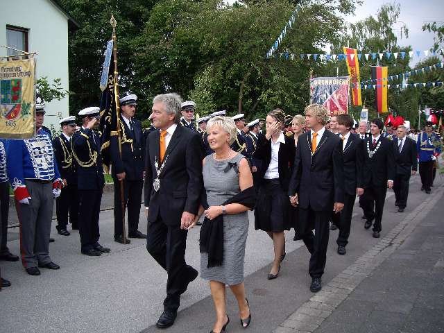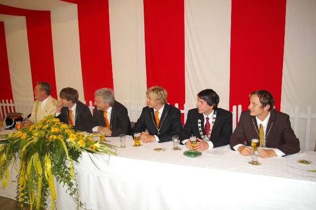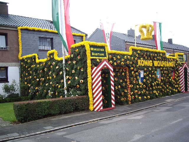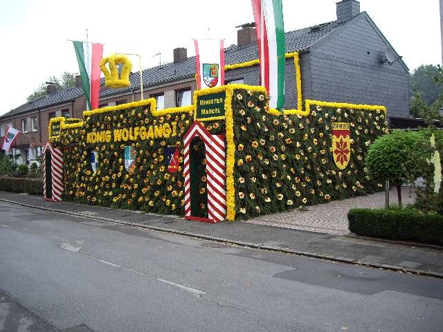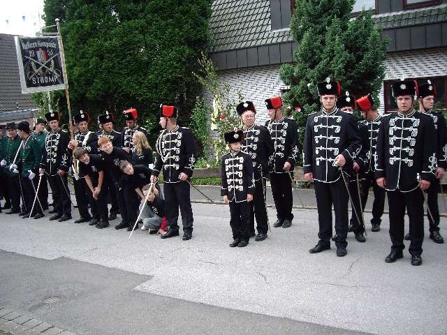 König Wolfgang I. mit seinem Hofstaatvon links: Hofdamen Vivien Paas und Christina Webers, Ministerpaar Bastian Möller und Rebekka Francke, Königspaar Wolfgang und Susanne Möller, Ministerpaar Daniela Triller und Marcel Möller, Hofdamen Marisa Niemeyer und Lisa Marie Birgels